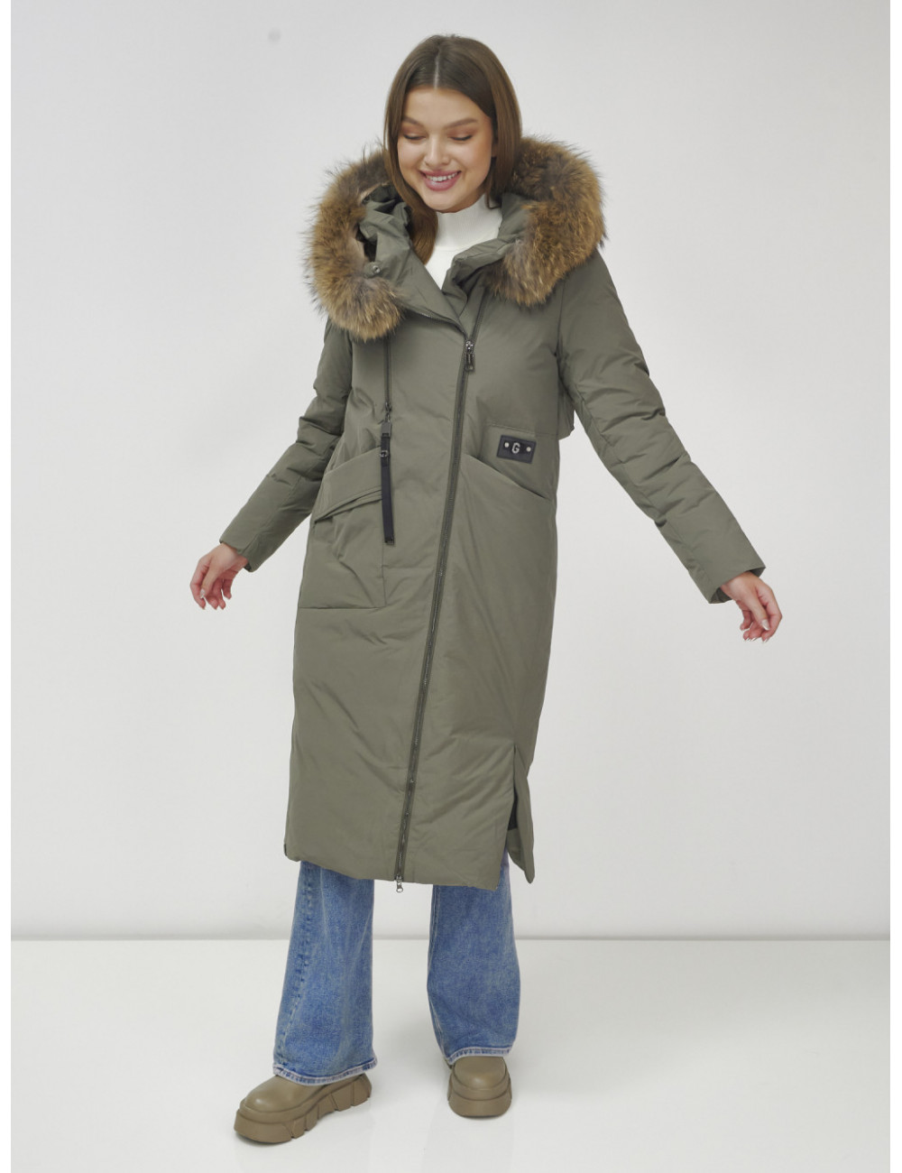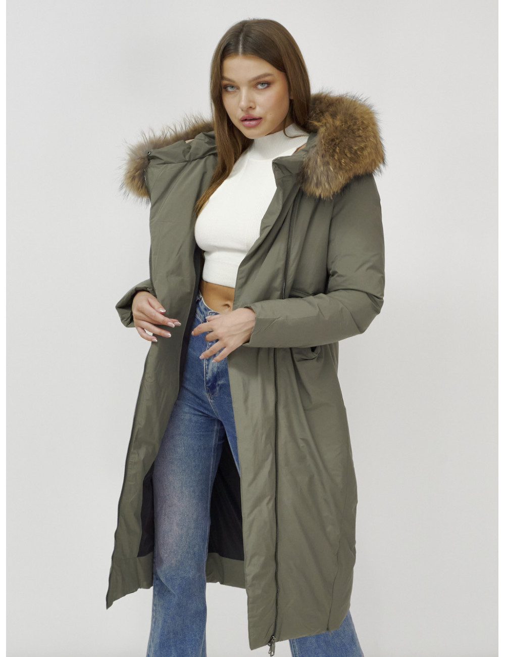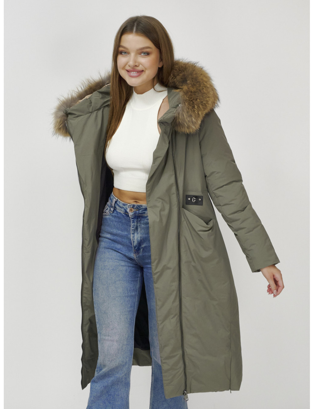 Позвольте себе излучать уверенность и позитив, уютно укутавшись в роскошь, которая согревает не только тело, но и душу. Вы заслуживаете только лучшего! Доставка по Москве и Московской области Пуховик-пальто женское премиум класса с мехом енота, хаки