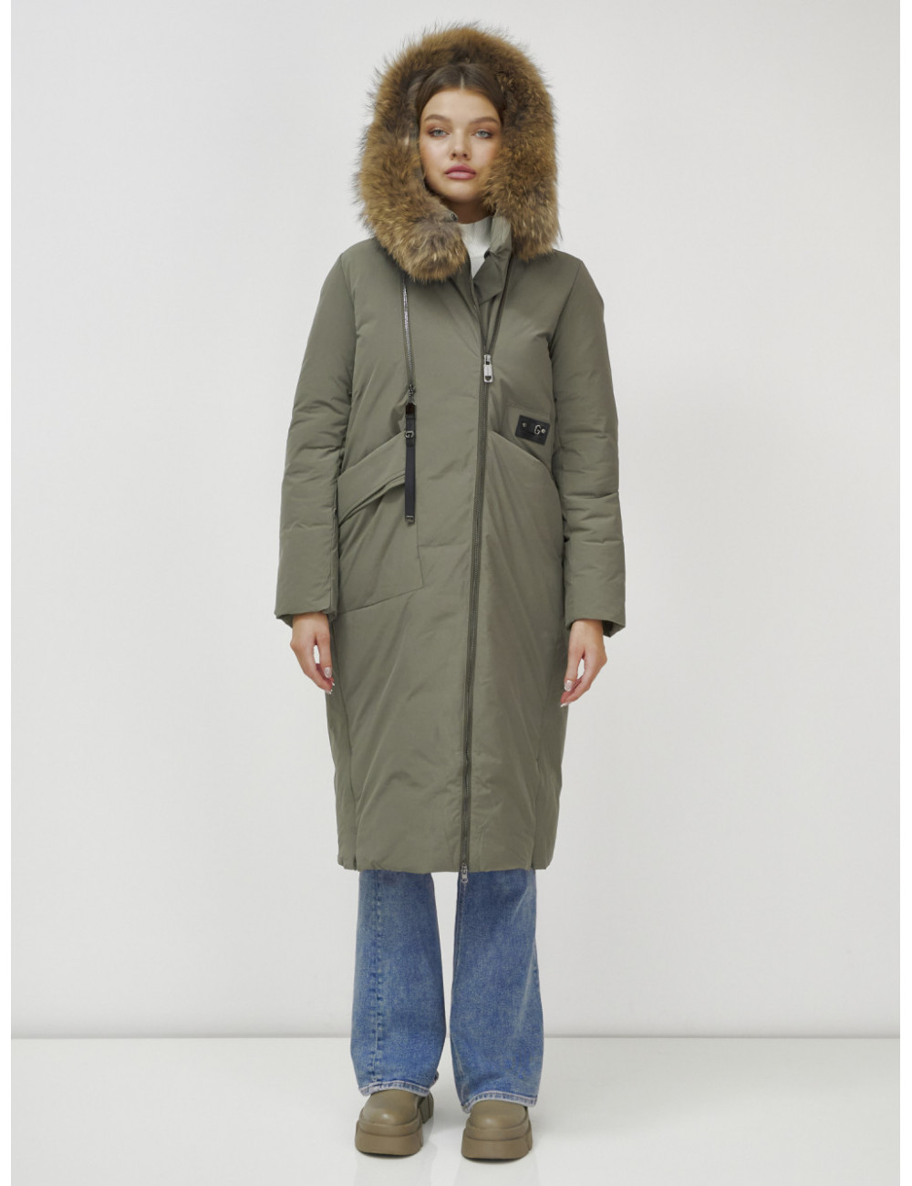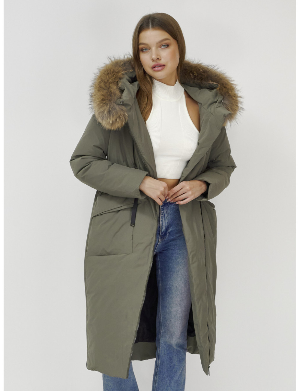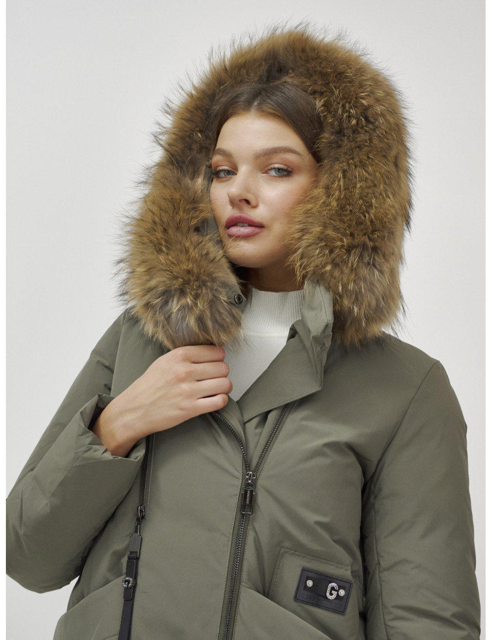 Позвольте себе излучать уверенность и позитив, уютно укутавшись в роскошь, которая согревает не только тело, но и душу. Вы заслуживаете только лучшего! Доставка по Москве и Московской области Пуховик-пальто женское премиум класса с мехом енота, хаки