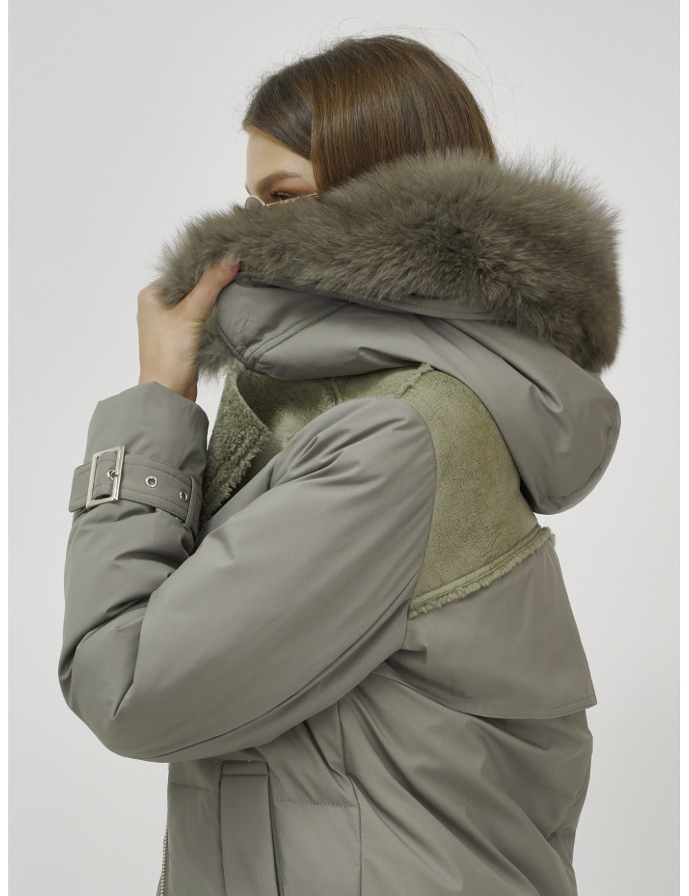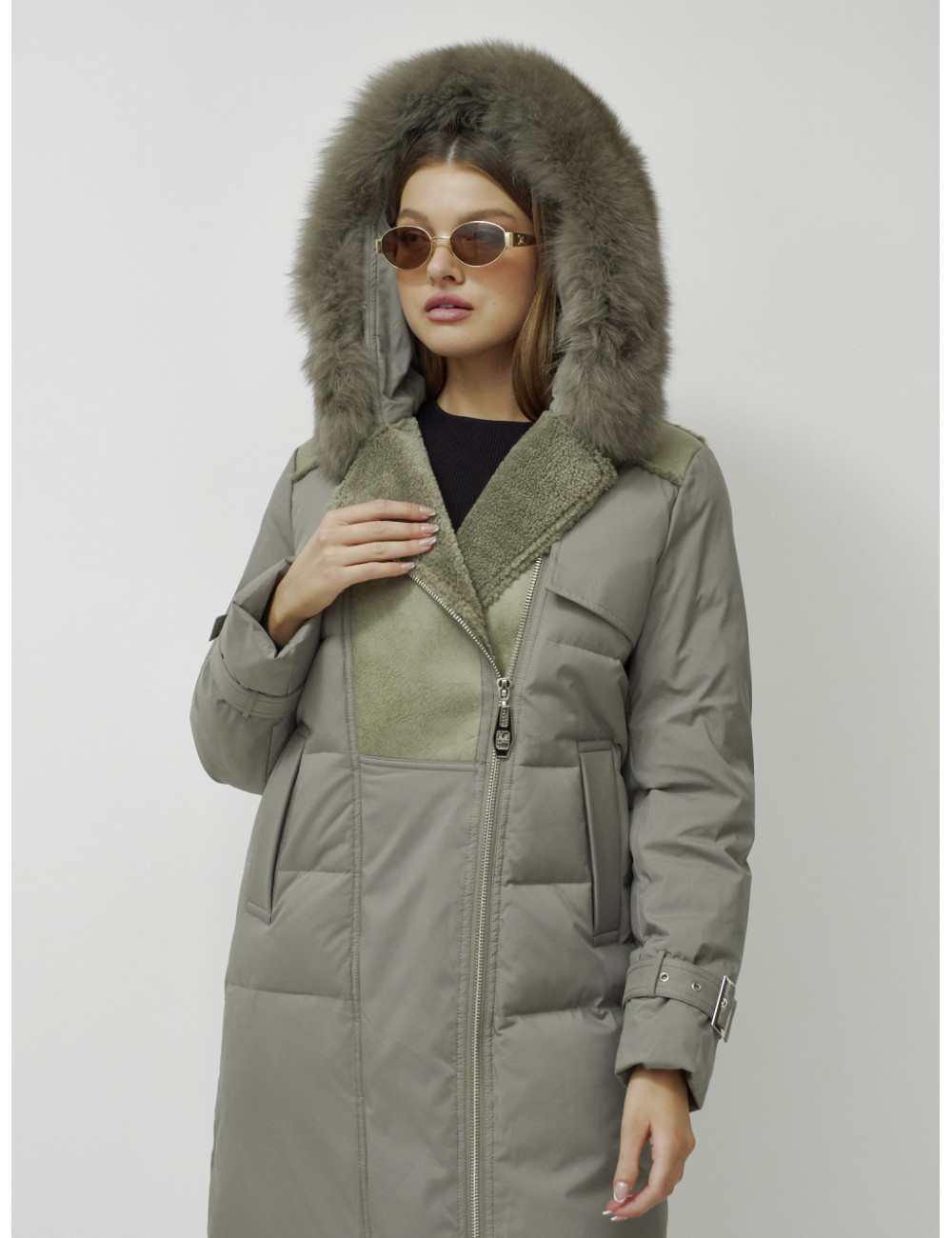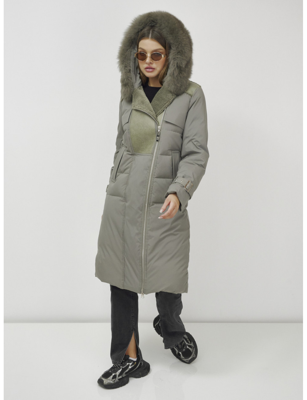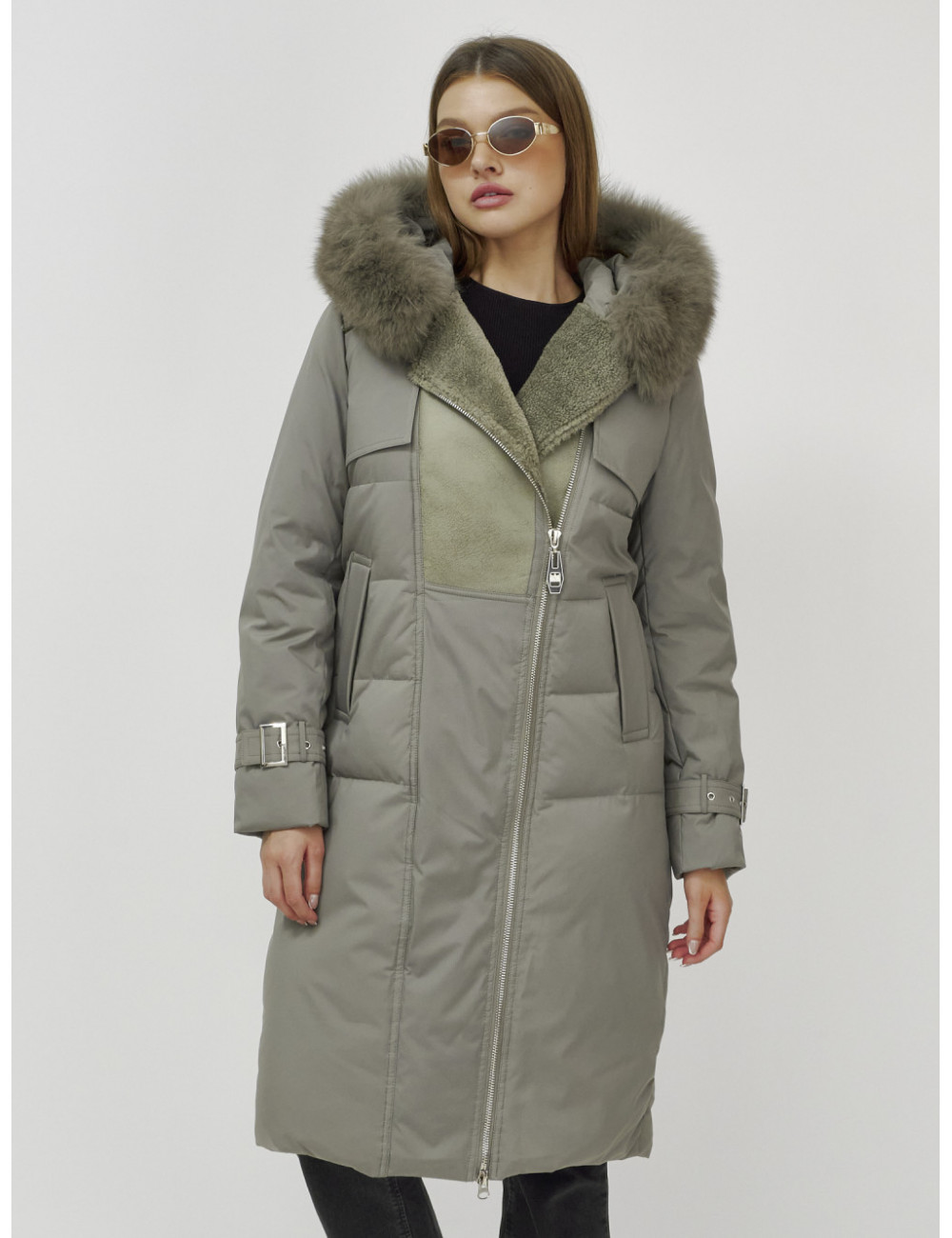 Позвольте себе роскошь, комфорт и защиту от зимних холодов с нашим великолепным пуховиком-пальто! Доставка по Москве и Московской области Пуховик-пальто женское премиум класса с мехом и овчиной, хаки