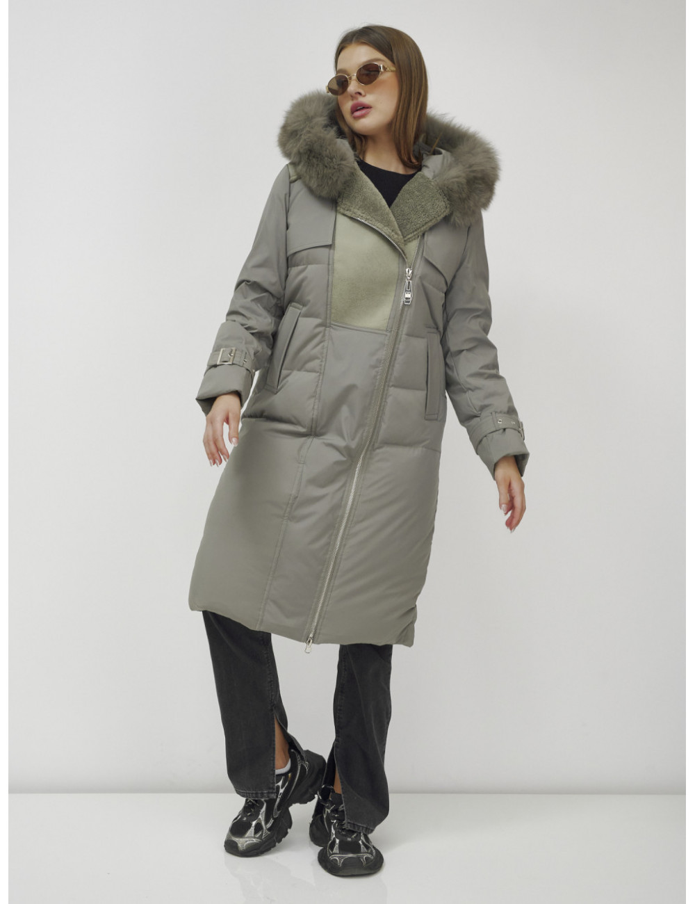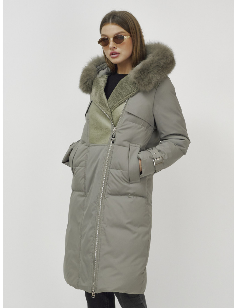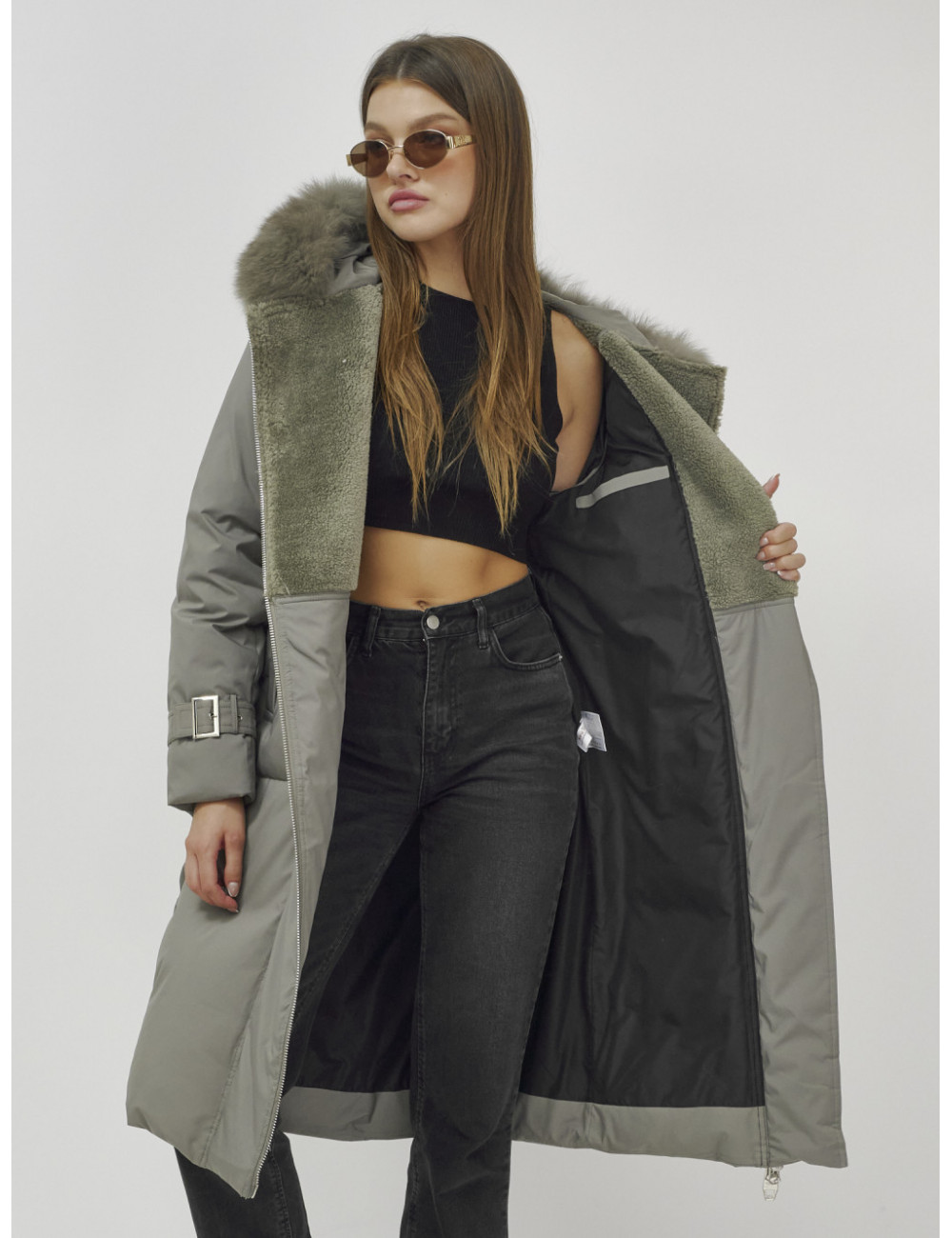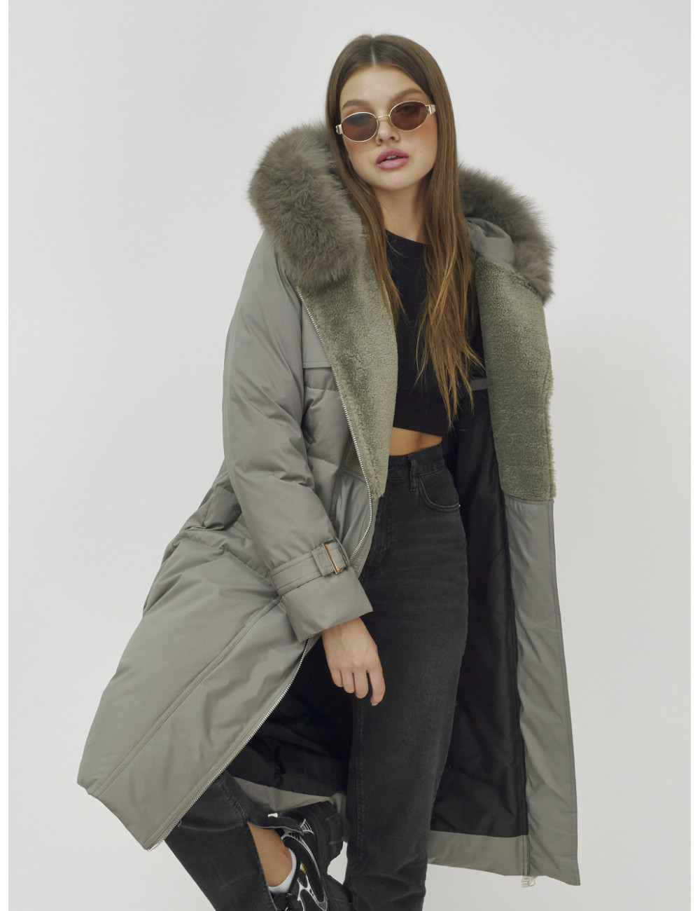 Позвольте себе роскошь, комфорт и защиту от зимних холодов с нашим великолепным пуховиком-пальто! Доставка по Москве и Московской области Пуховик-пальто женское премиум класса с мехом и овчиной, хаки