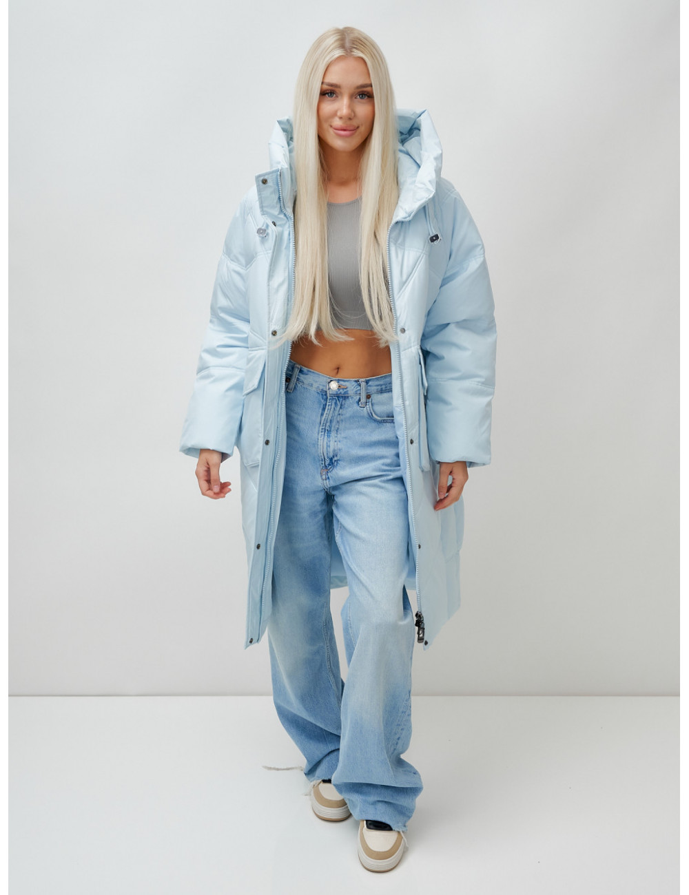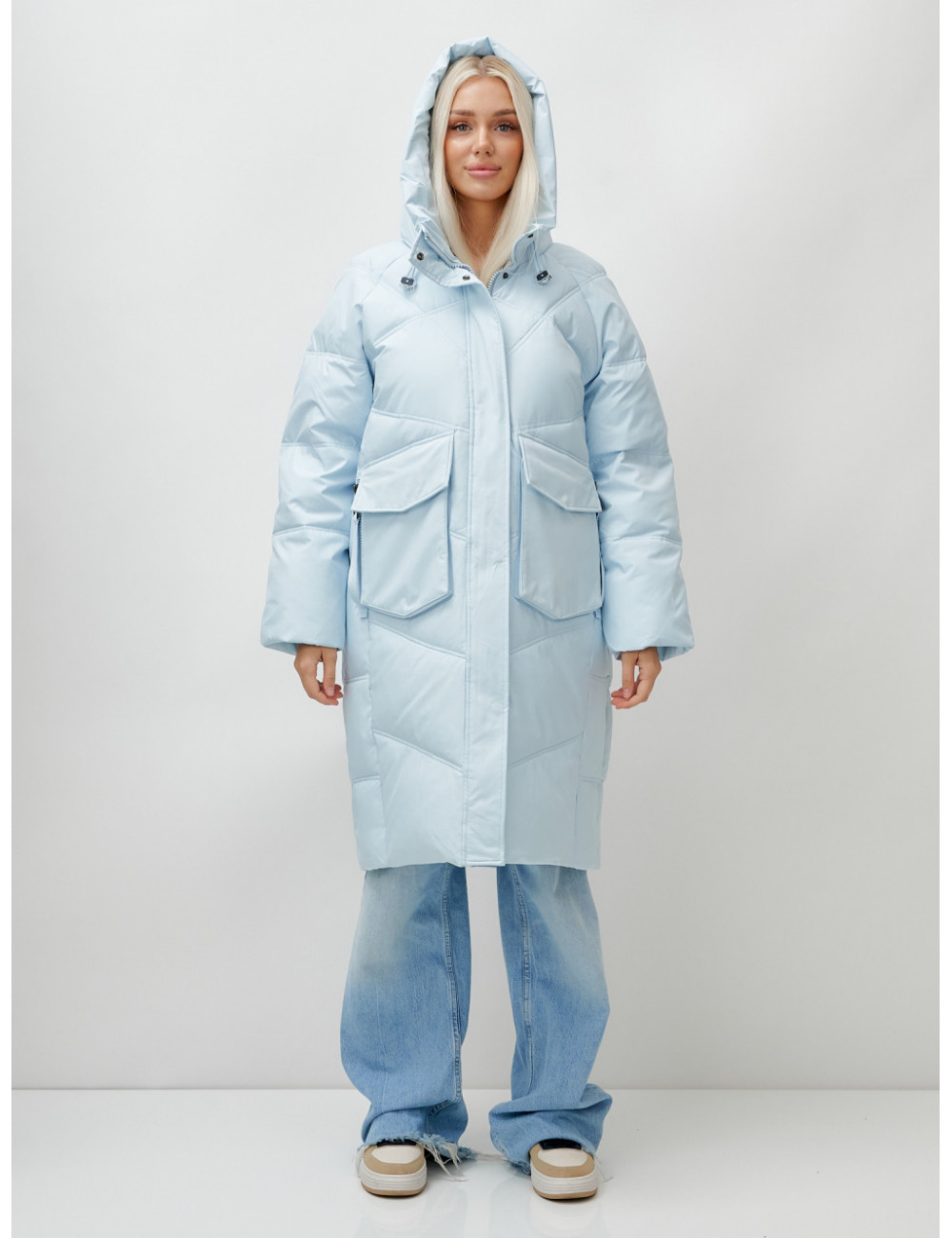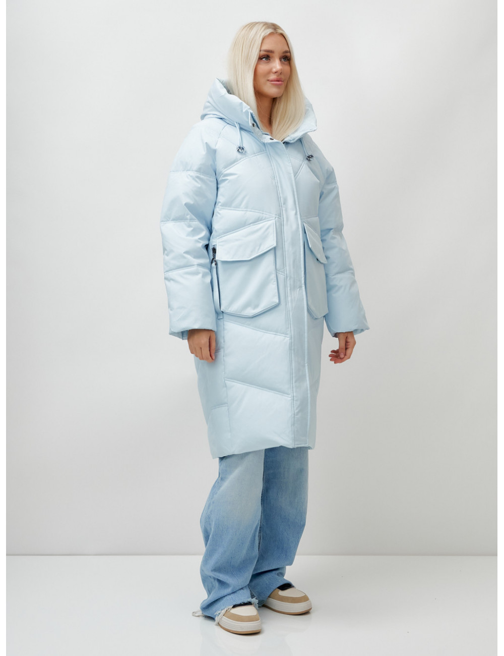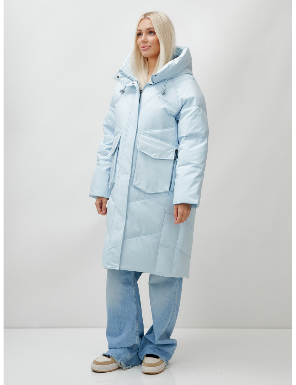 Пуховик-пальто гармонично сочетается с джинсами, брюками, юбками и платьями. Вы можете создать как повседневный, так и более элегантный образ, добавив аксессуары и подходящую обувь. Доставка по Москве и Московской области Пуховик-пальто женское зимнее с капюшоном голубого цвета