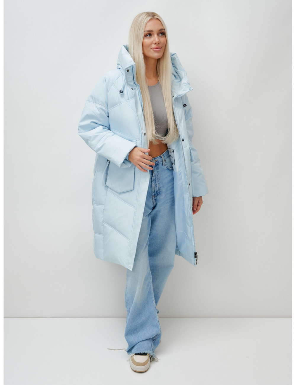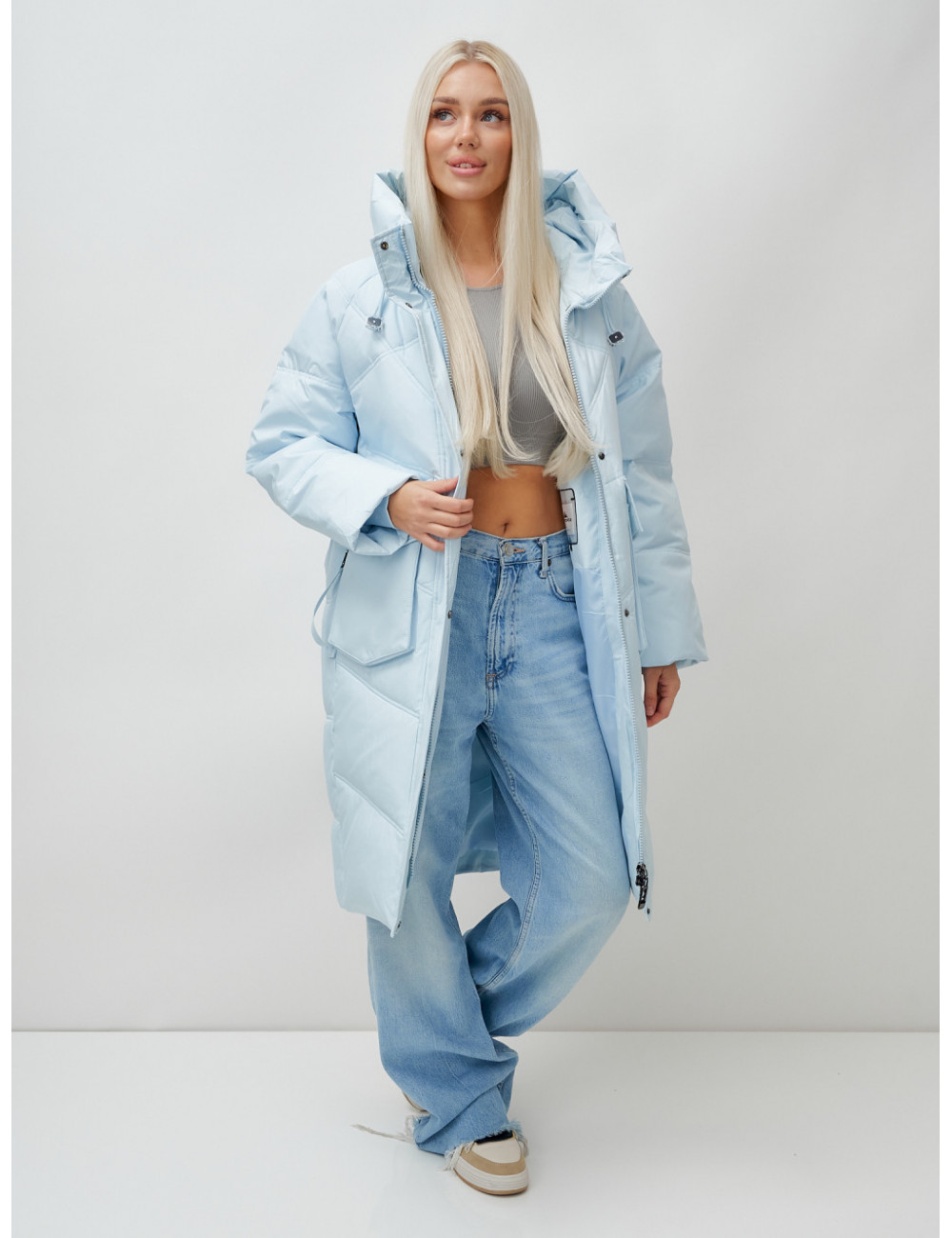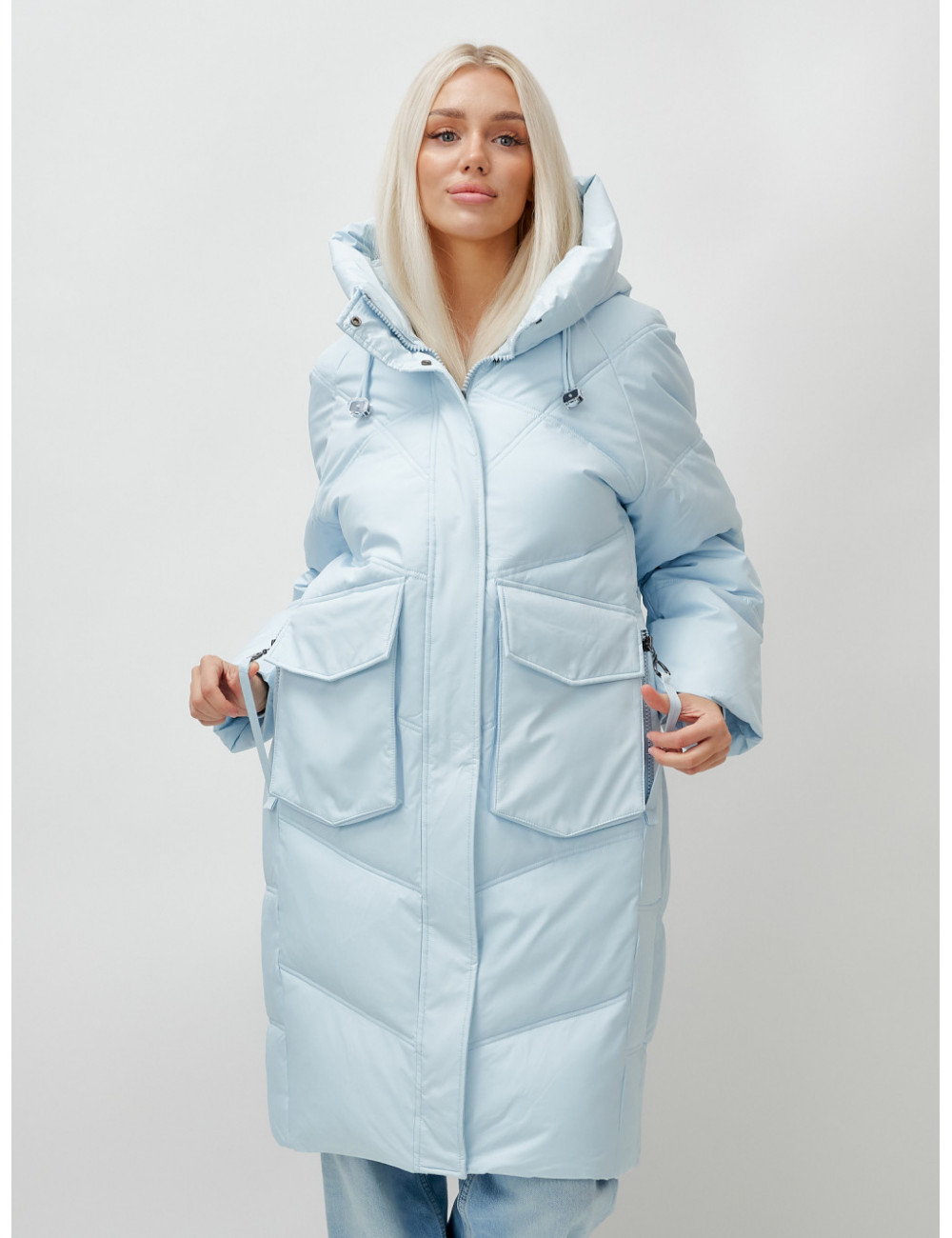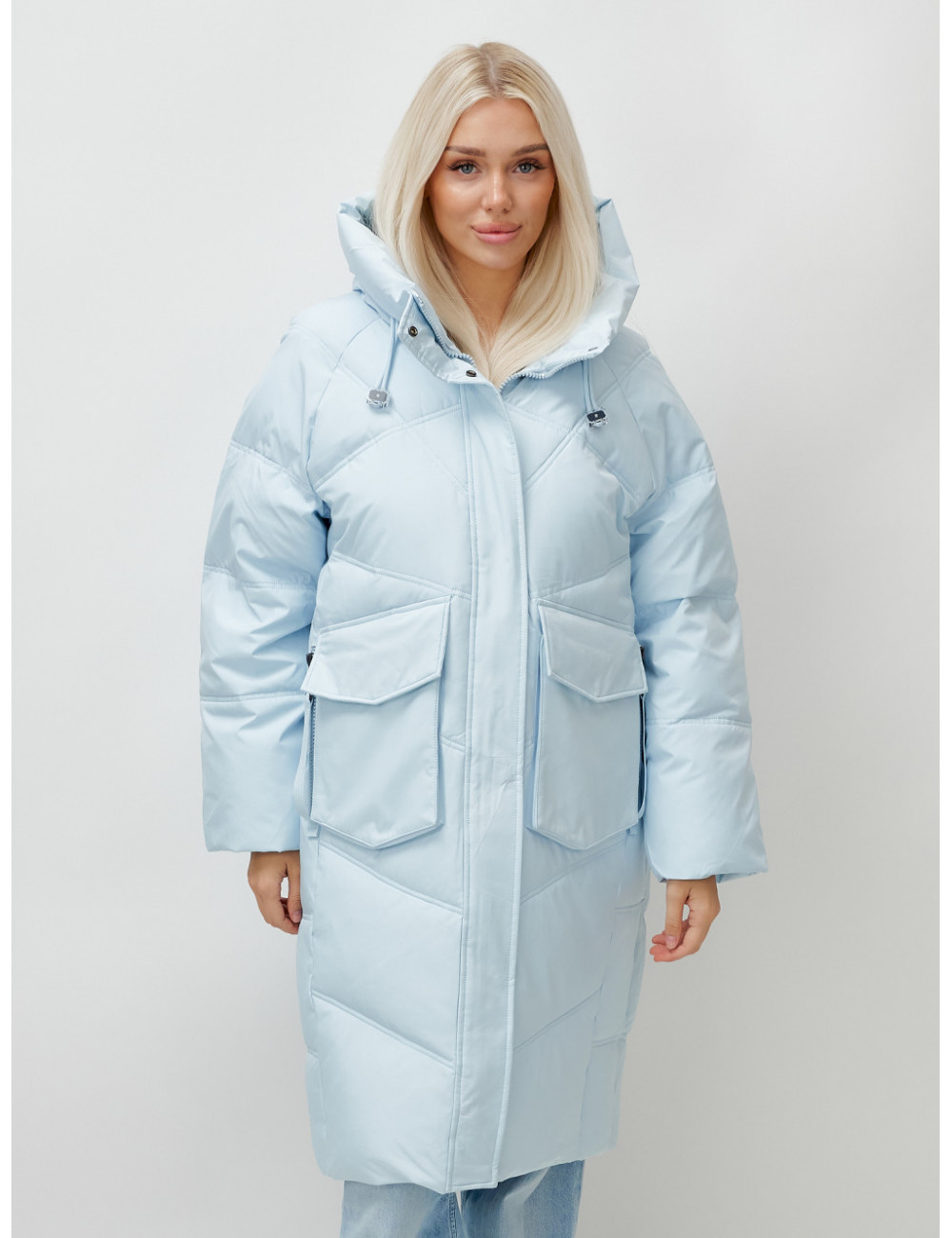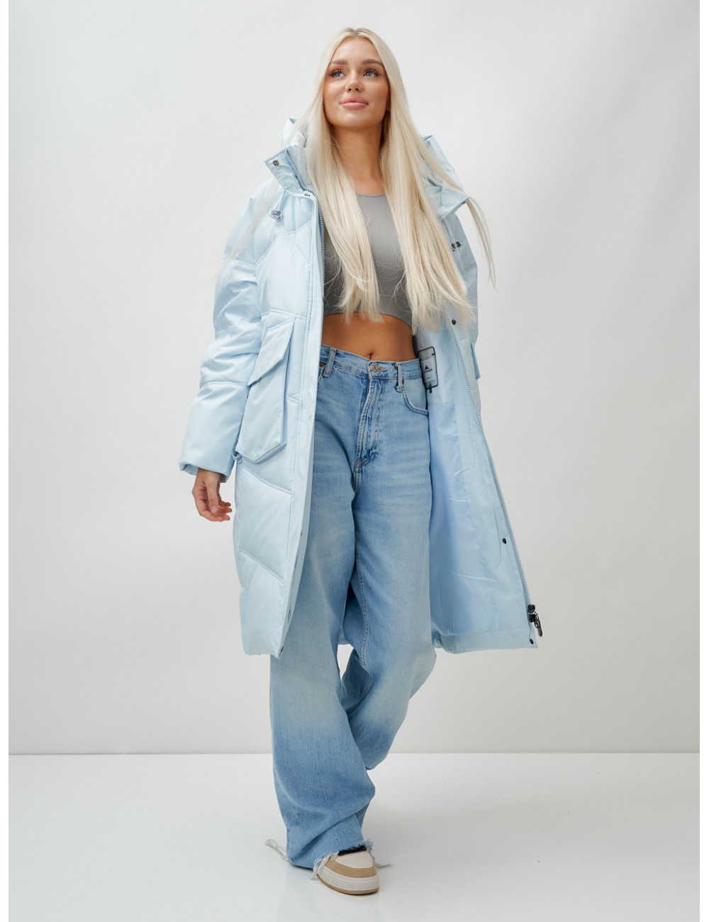 Пуховик-пальто гармонично сочетается с джинсами, брюками, юбками и платьями. Вы можете создать как повседневный, так и более элегантный образ, добавив аксессуары и подходящую обувь. Доставка по Москве и Московской области Пуховик-пальто женское зимнее с капюшоном голубого цвета