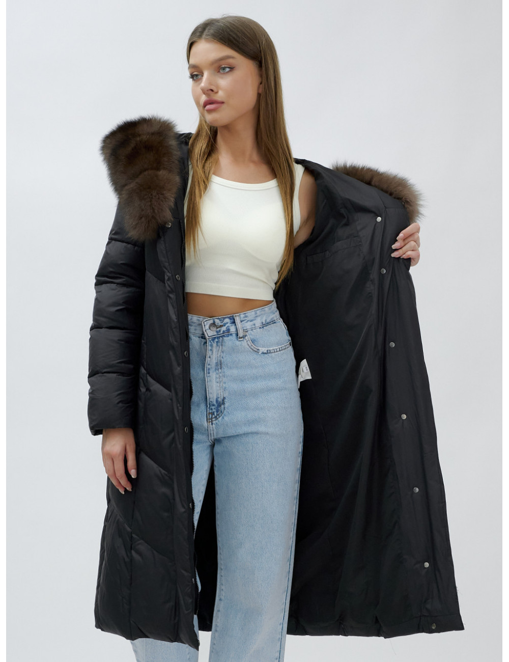 Не бойтесь экспериментировать с образами. Пуховик-пальто отлично сочетается с различными аксессуарами, такими как шарфы, шапки и перчатки. Создавайте свой неповторимый стиль и наслаждайтесь каждым моментом зимы! Доставка по Москве и Московской области Пуховик-пальто женское зимнее с мехом песца чёрного цвета, люкс класс