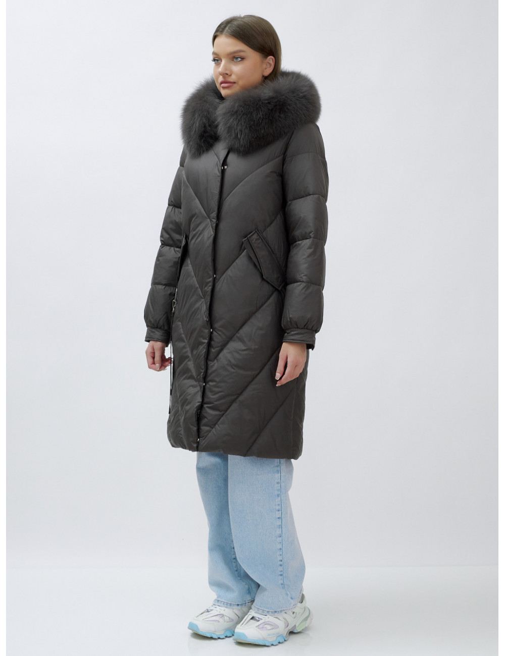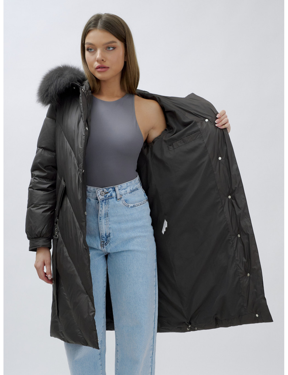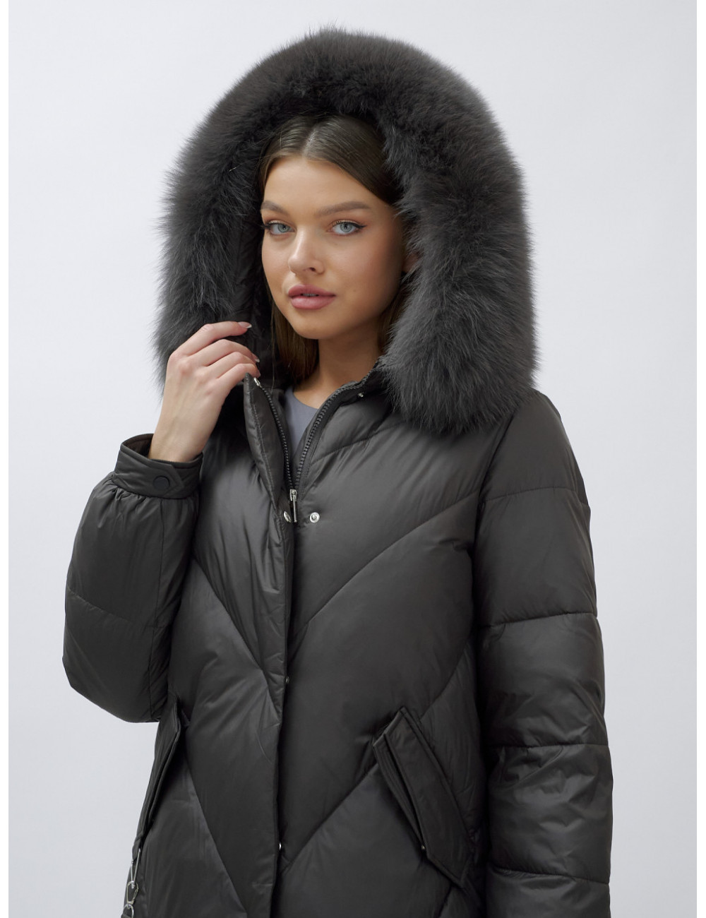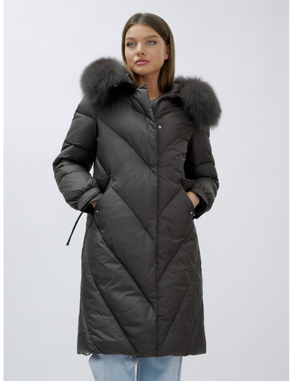 Подчеркните свою индивидуальность и создайте образ, который будет вдохновлять вас на новые достижения! Доставка по Москве и Московской области Пуховик-пальто женское зимнее с мехом песца люкс класса, тёмно-серый
