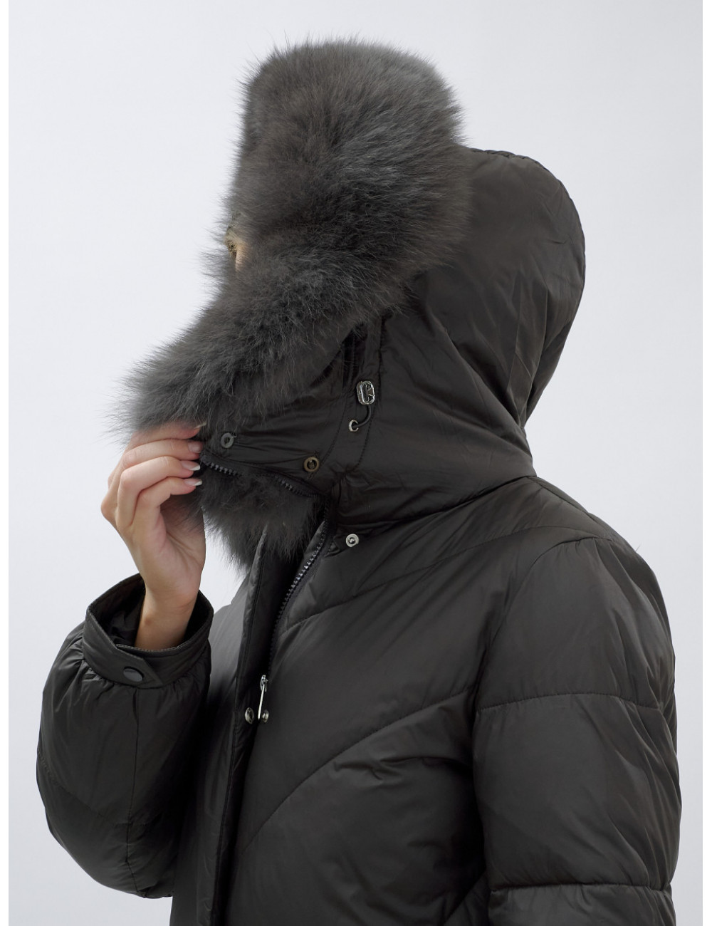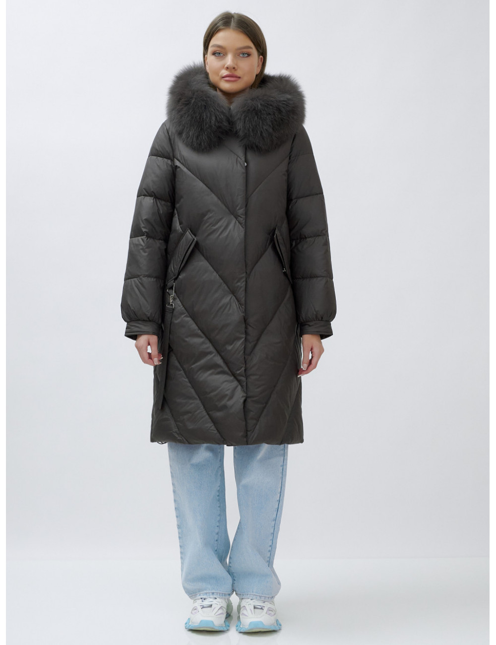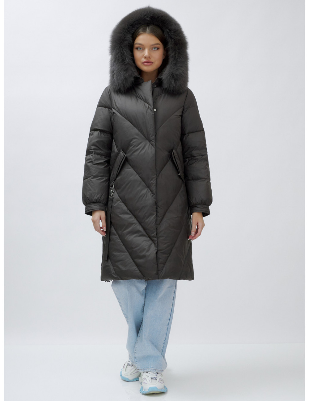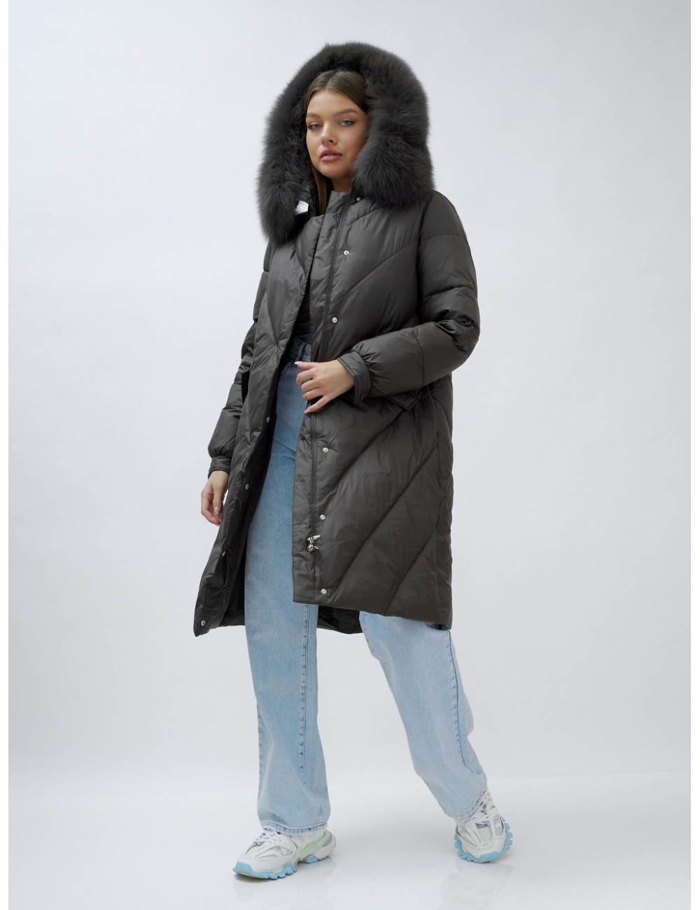 Подчеркните свою индивидуальность и создайте образ, который будет вдохновлять вас на новые достижения! Доставка по Москве и Московской области Пуховик-пальто женское зимнее с мехом песца люкс класса, тёмно-серый