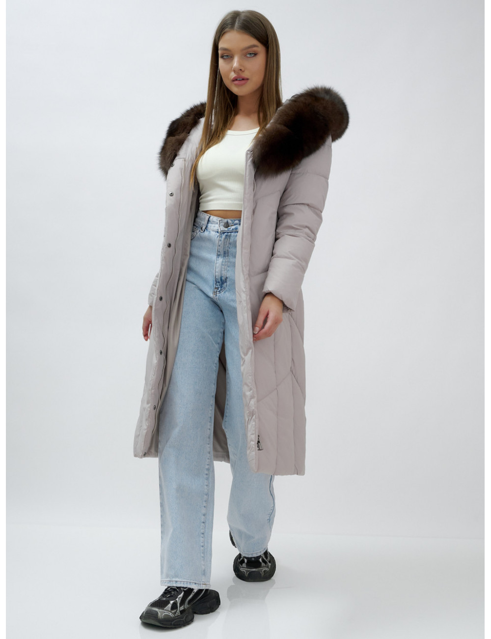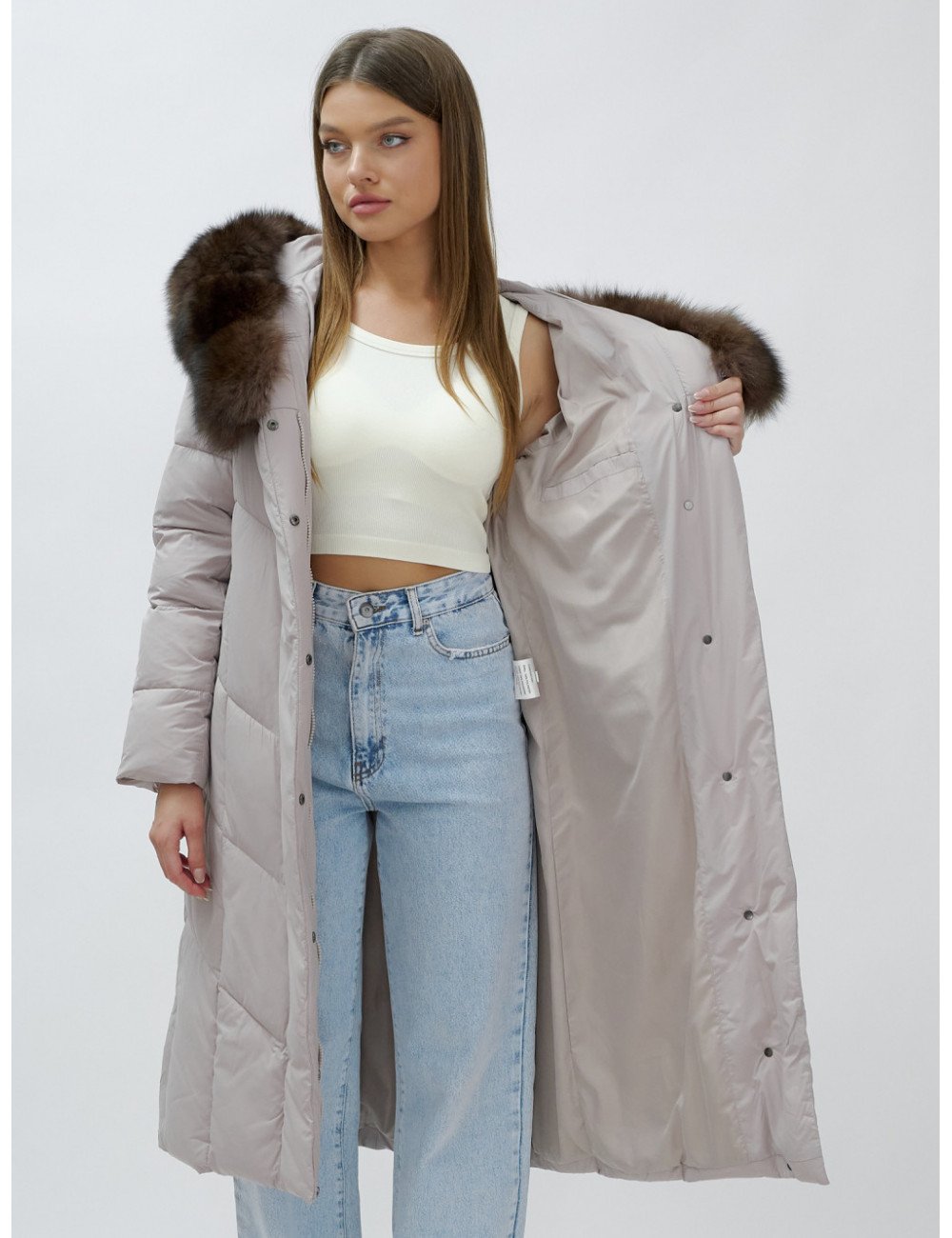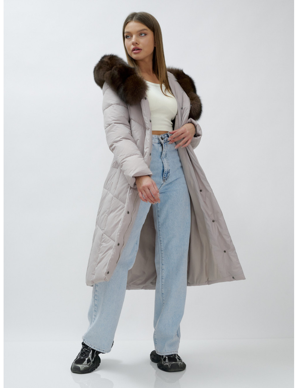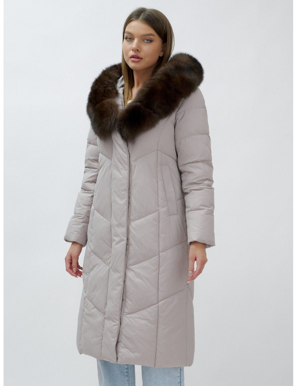 Позвольте себе быть в центре внимания и наслаждайтесь каждым моментом зимы в стильном и тёплом пуховике-пальто премиум-класса! Доставка по Москве и Московской области Пуховик-пальто женское зимнее с мехом песца люкс класса, бежевый.
