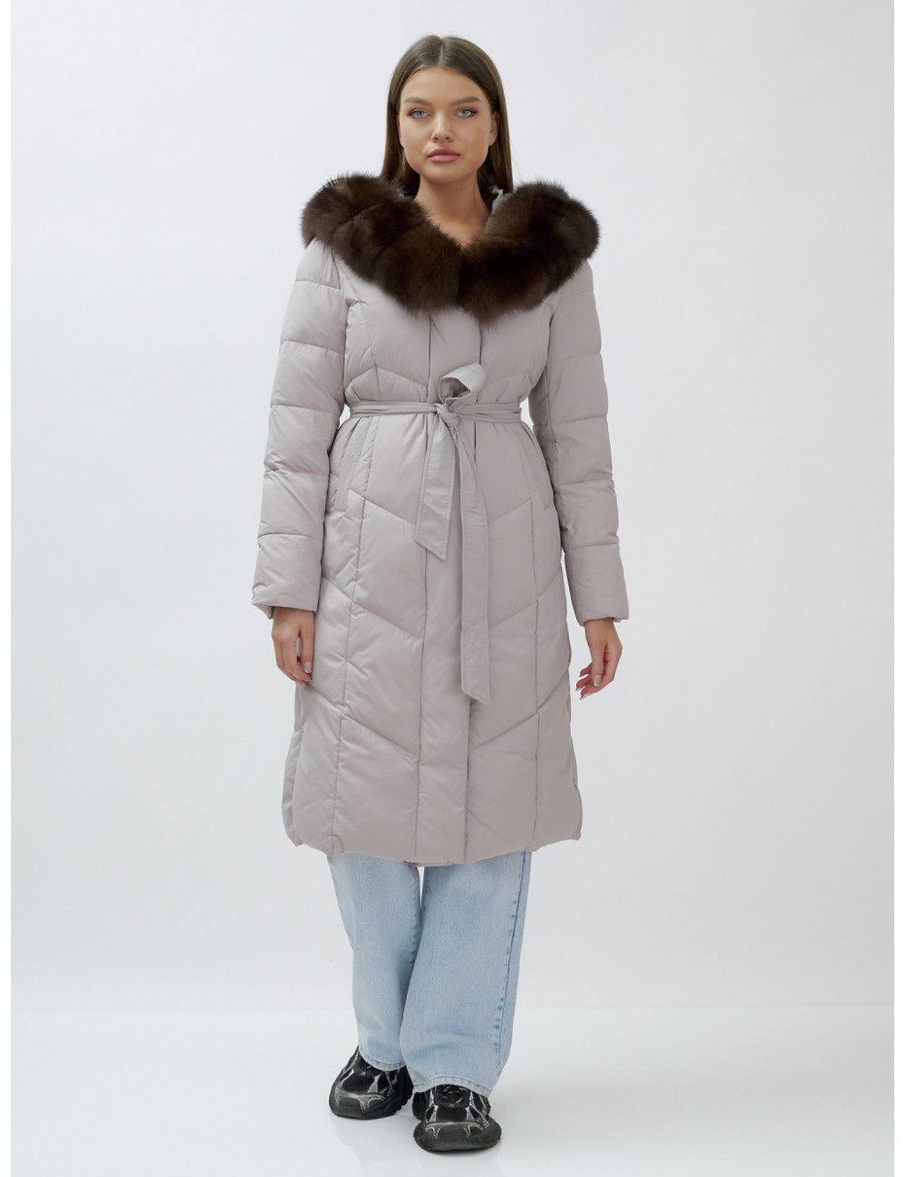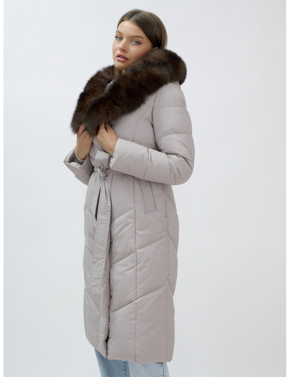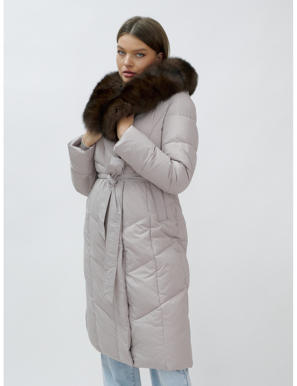 Позвольте себе быть в центре внимания и наслаждайтесь каждым моментом зимы в стильном и тёплом пуховике-пальто премиум-класса! Доставка по Москве и Московской области Пуховик-пальто женское зимнее с мехом песца люкс класса, бежевый.
