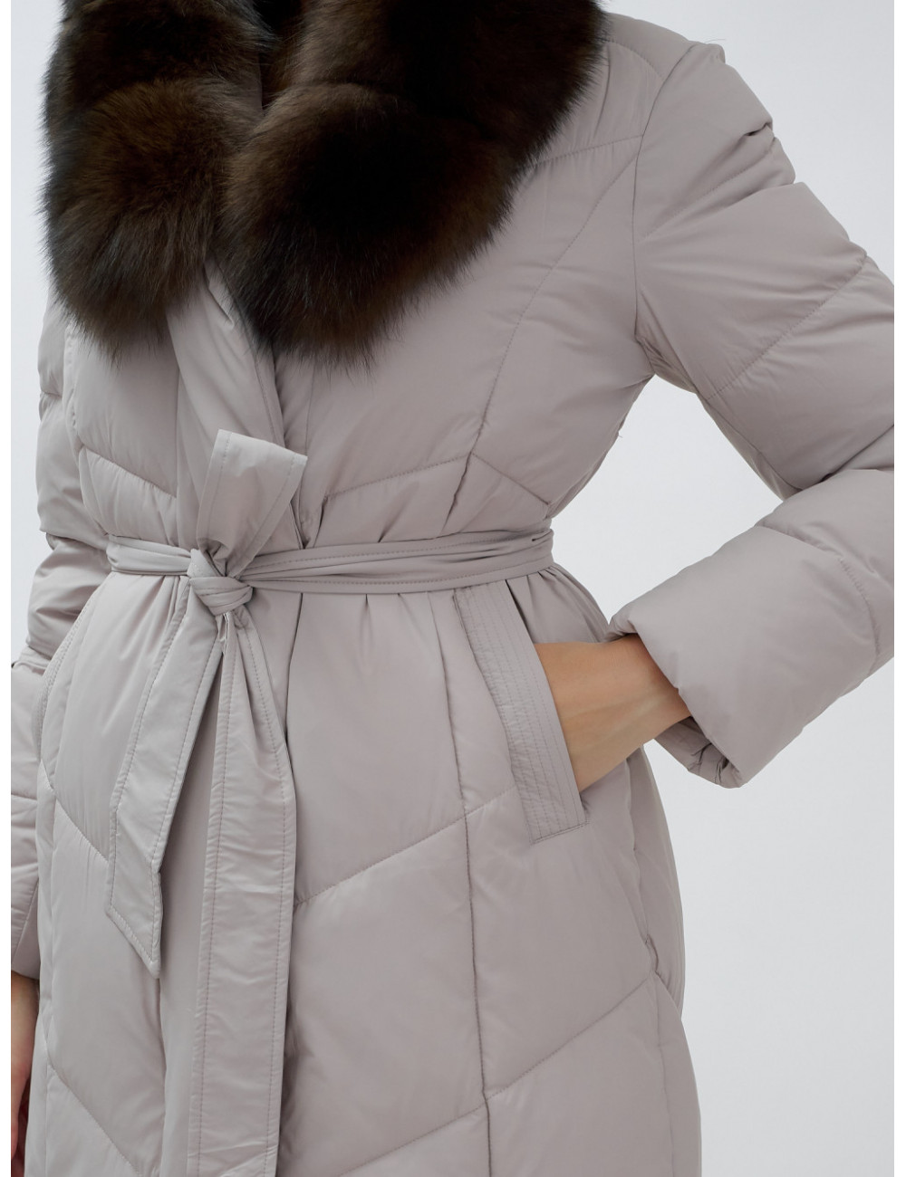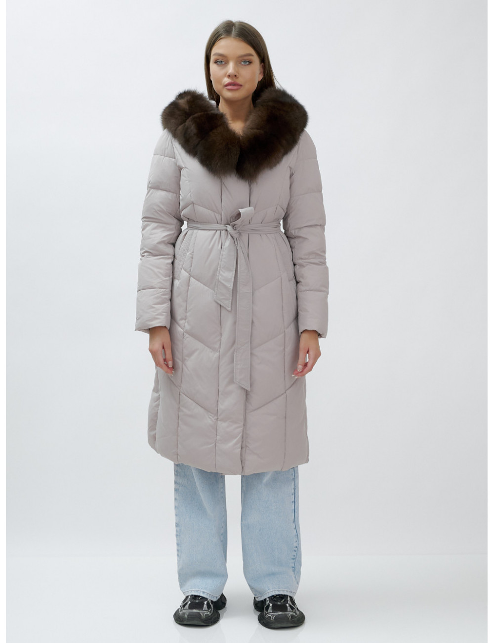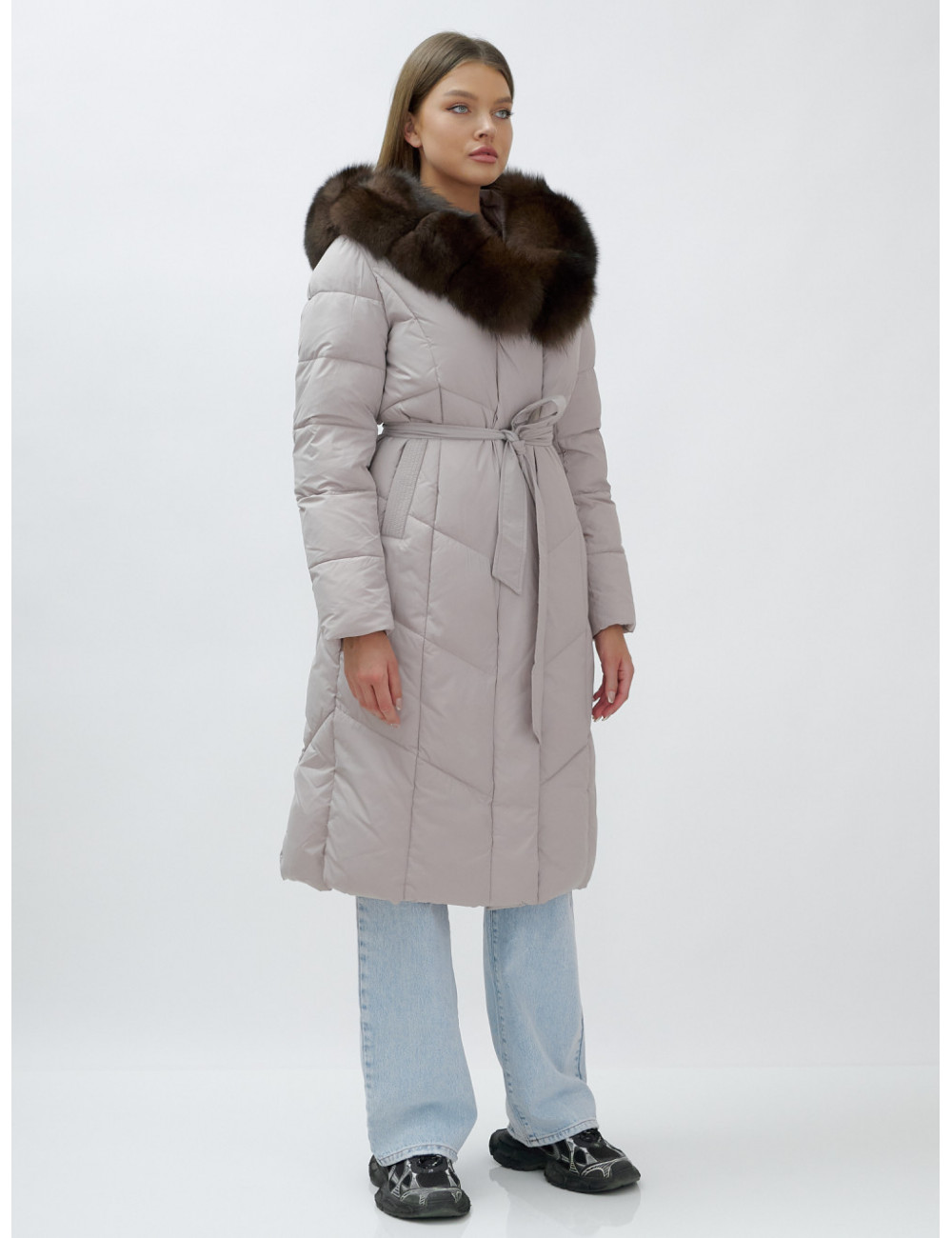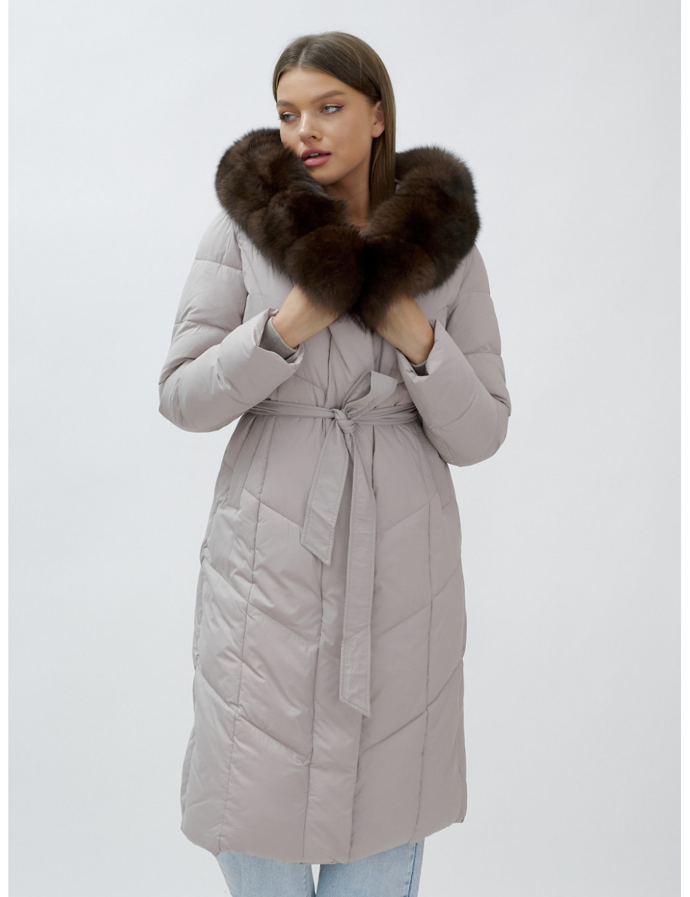 Позвольте себе быть в центре внимания и наслаждайтесь каждым моментом зимы в стильном и тёплом пуховике-пальто премиум-класса! Доставка по Москве и Московской области Пуховик-пальто женское зимнее с мехом песца люкс класса, бежевый.