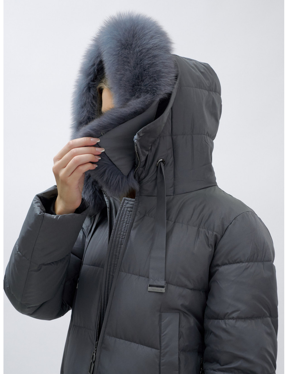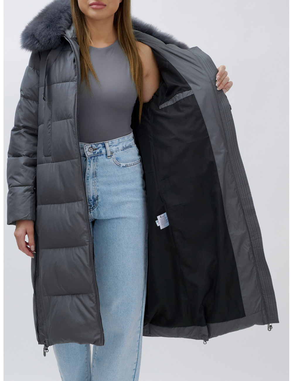 Пуховик-пальто отлично сочетается с джинсами, брюками и юбками. Вы можете создать как спортивный, так и элегантный образ, добавив к пуховику аксессуары и обувь на ваш выбор. Доставка по Москве и Московской области Пуховик-пальто женское большого размера с мехом песец, серый.