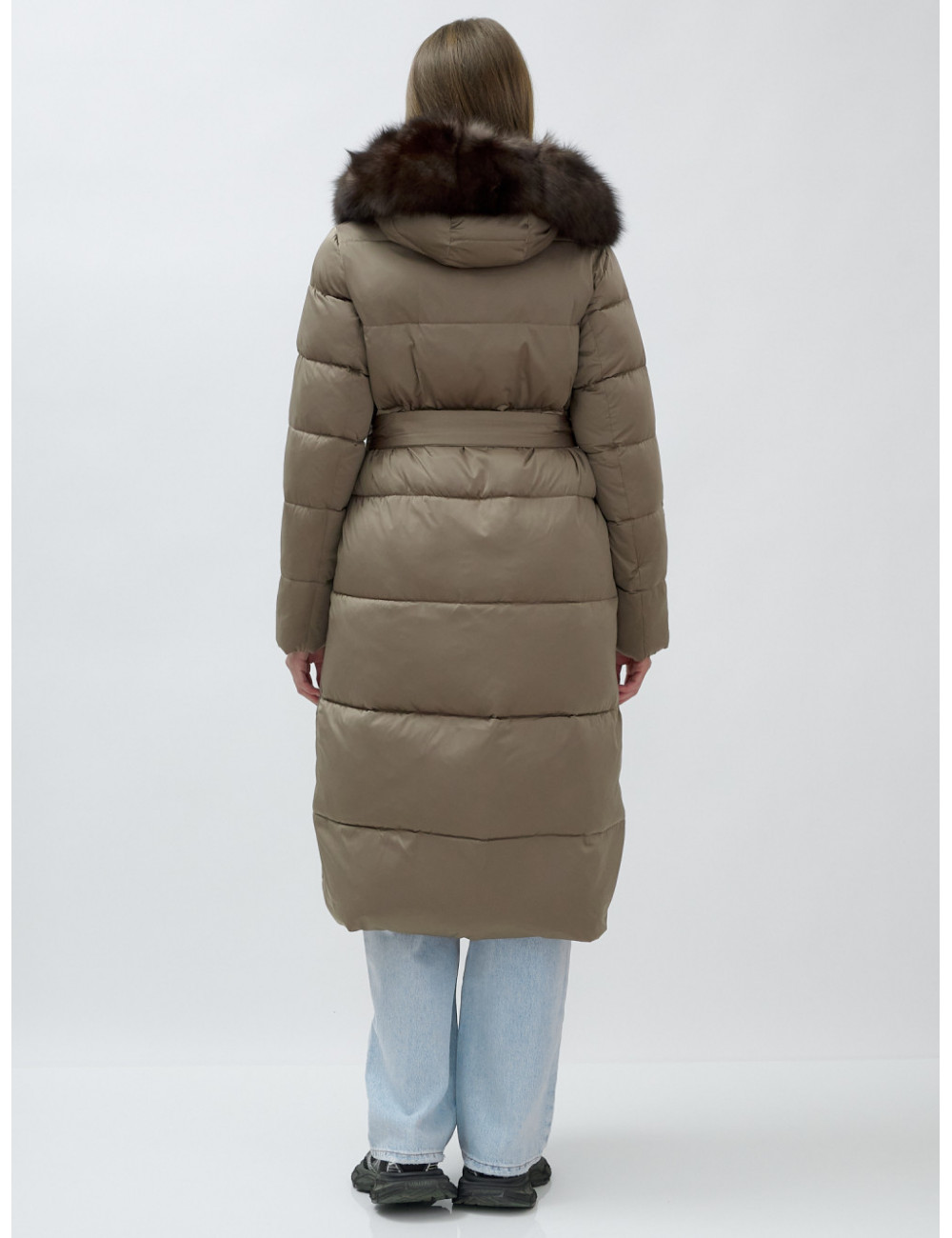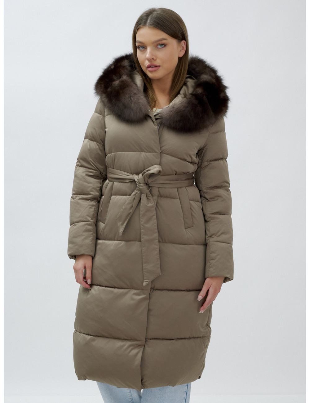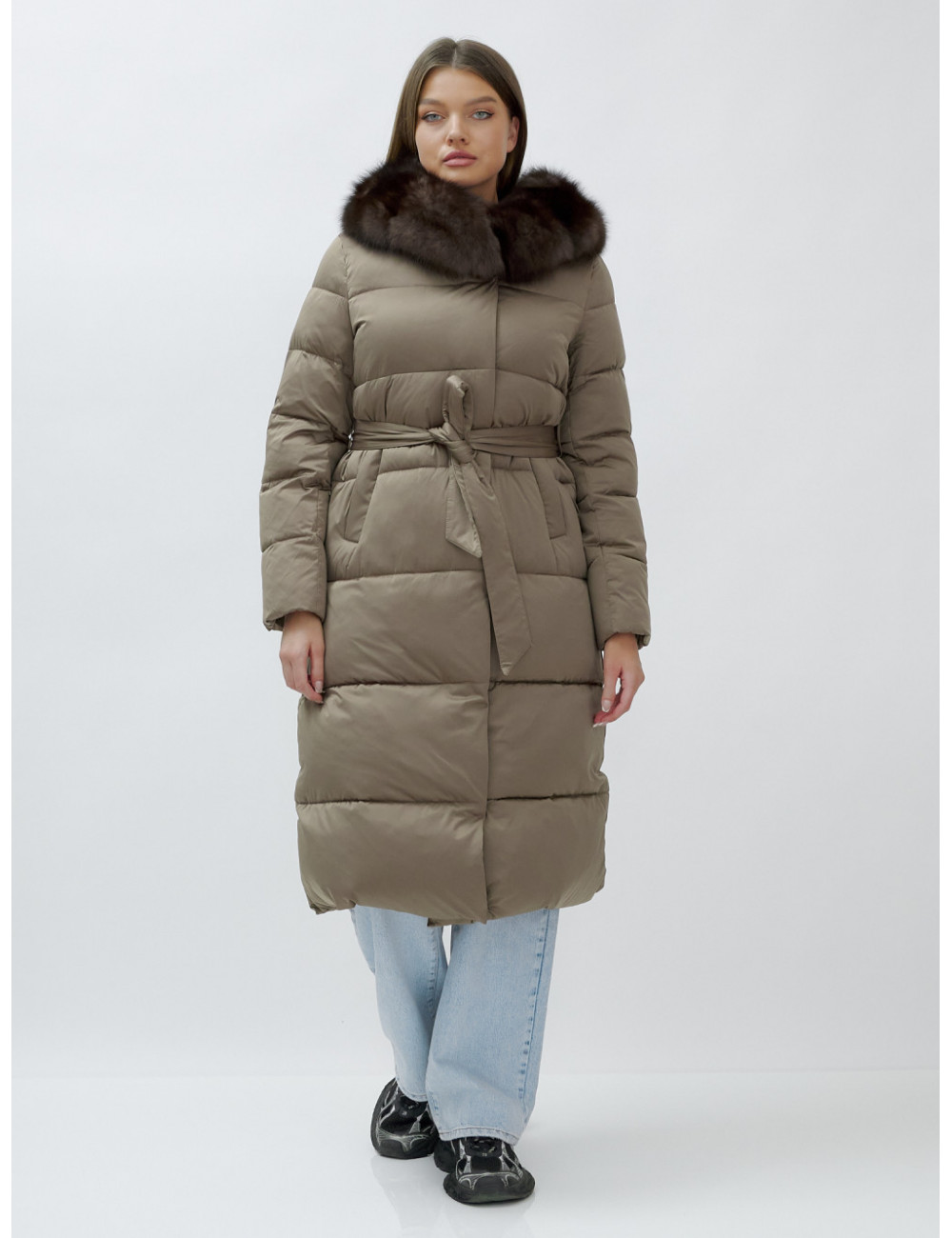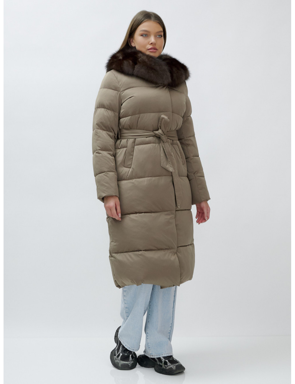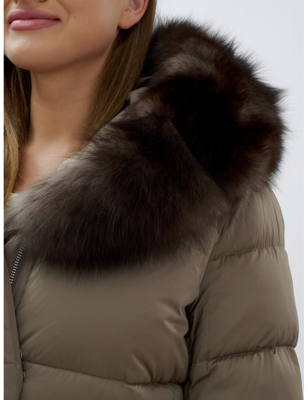 Технические характеристики Пуховик-пальто женское зимний с мехом песца коричневого цвета.