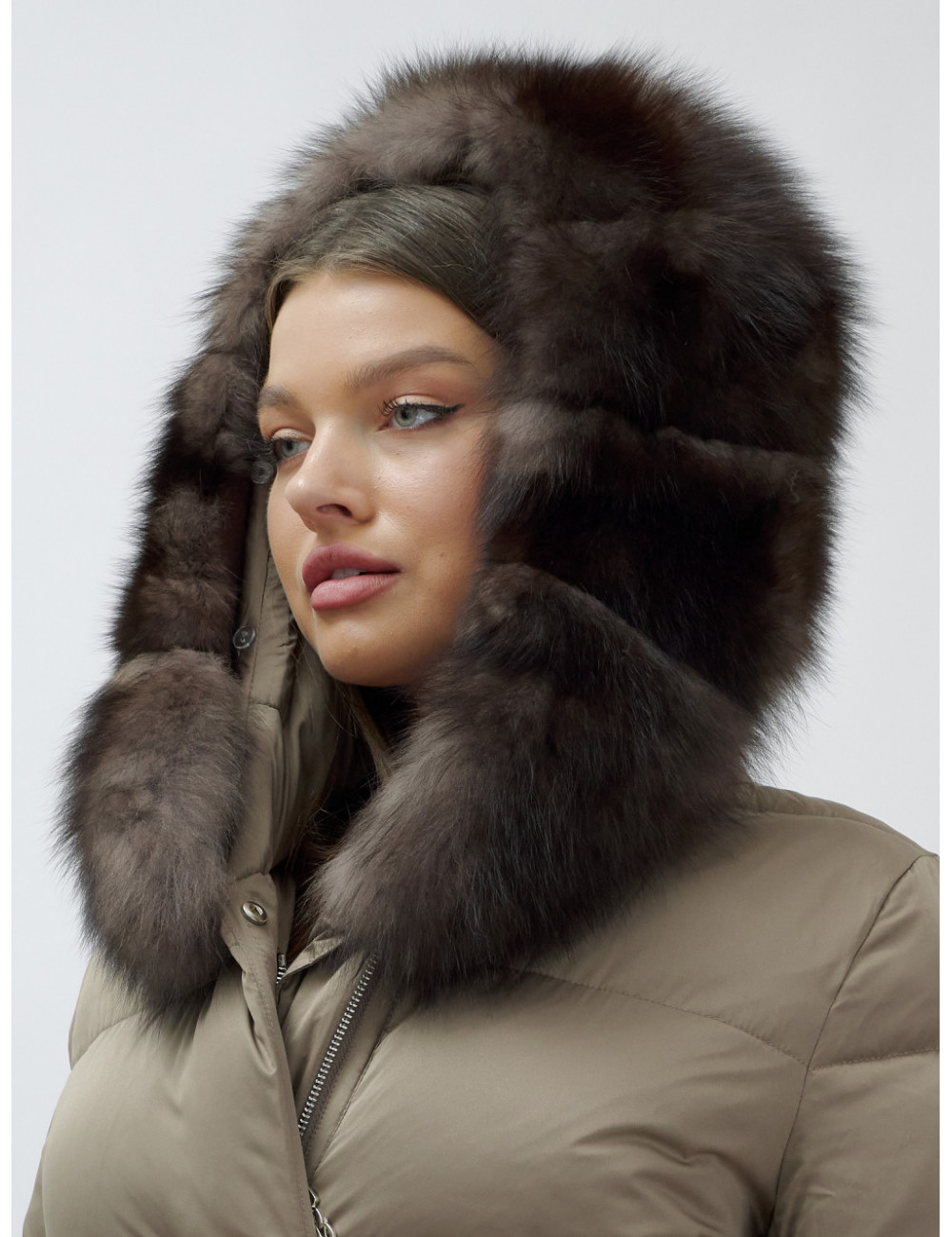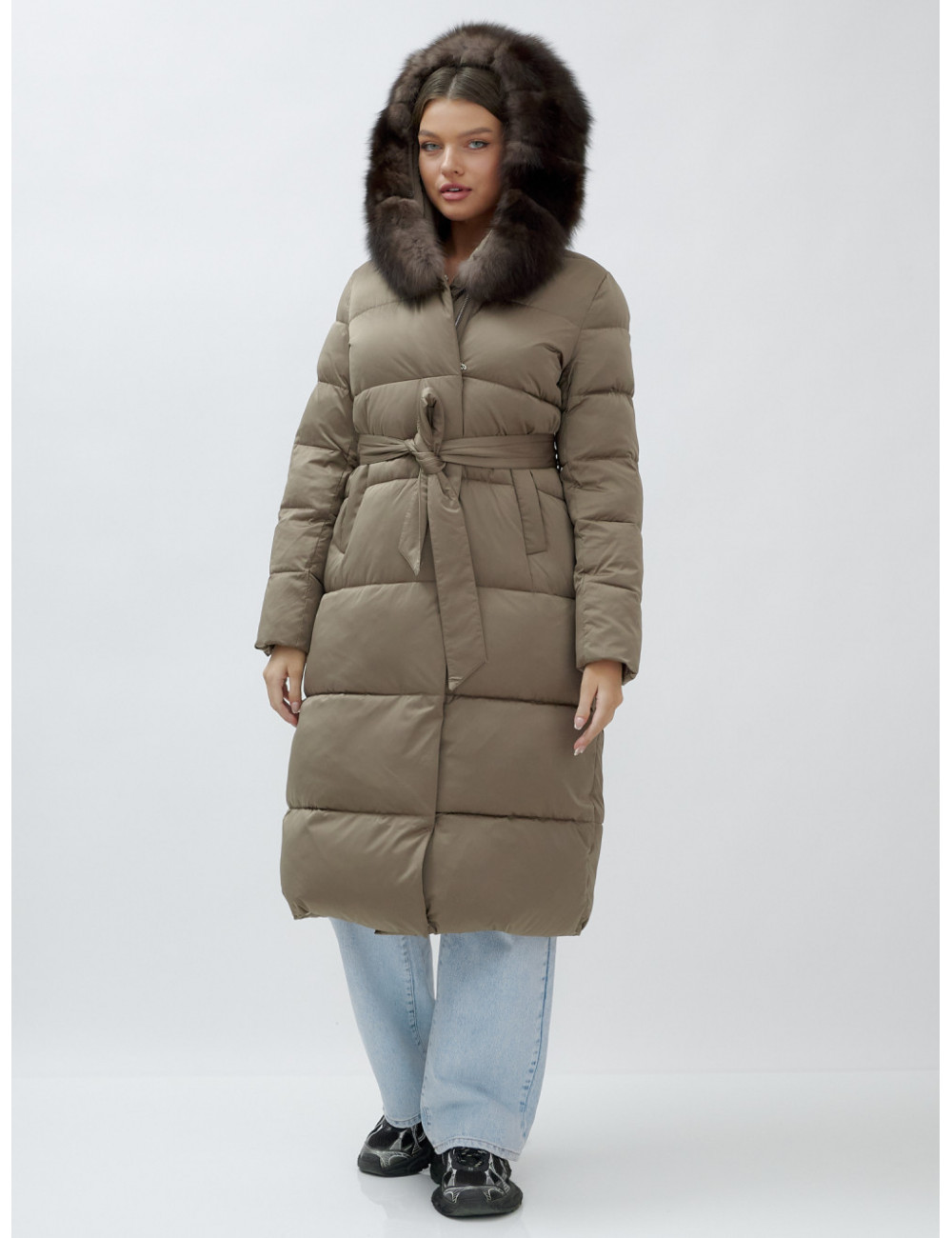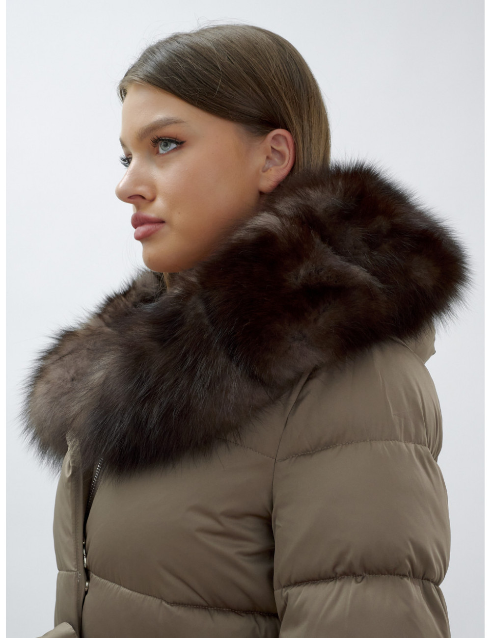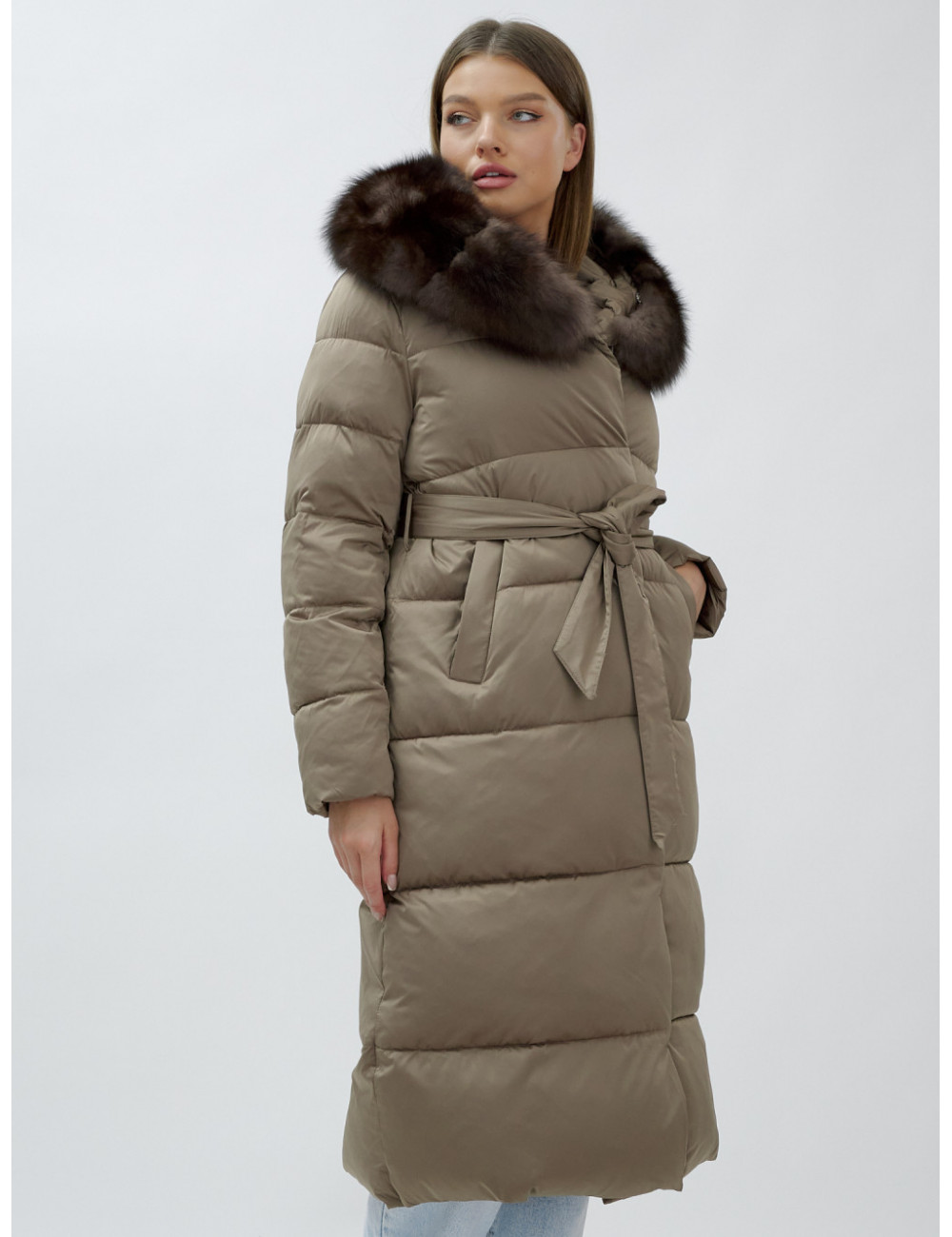 Технические характеристики Пуховик-пальто женское зимний с мехом песца коричневого цвета.