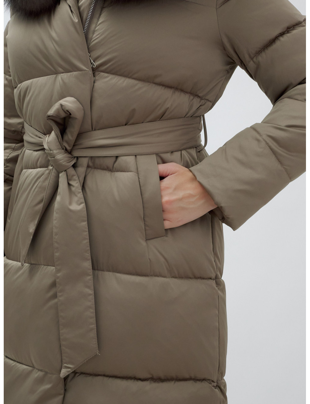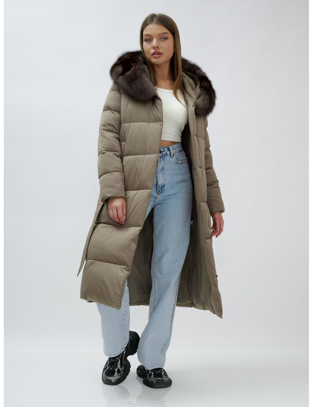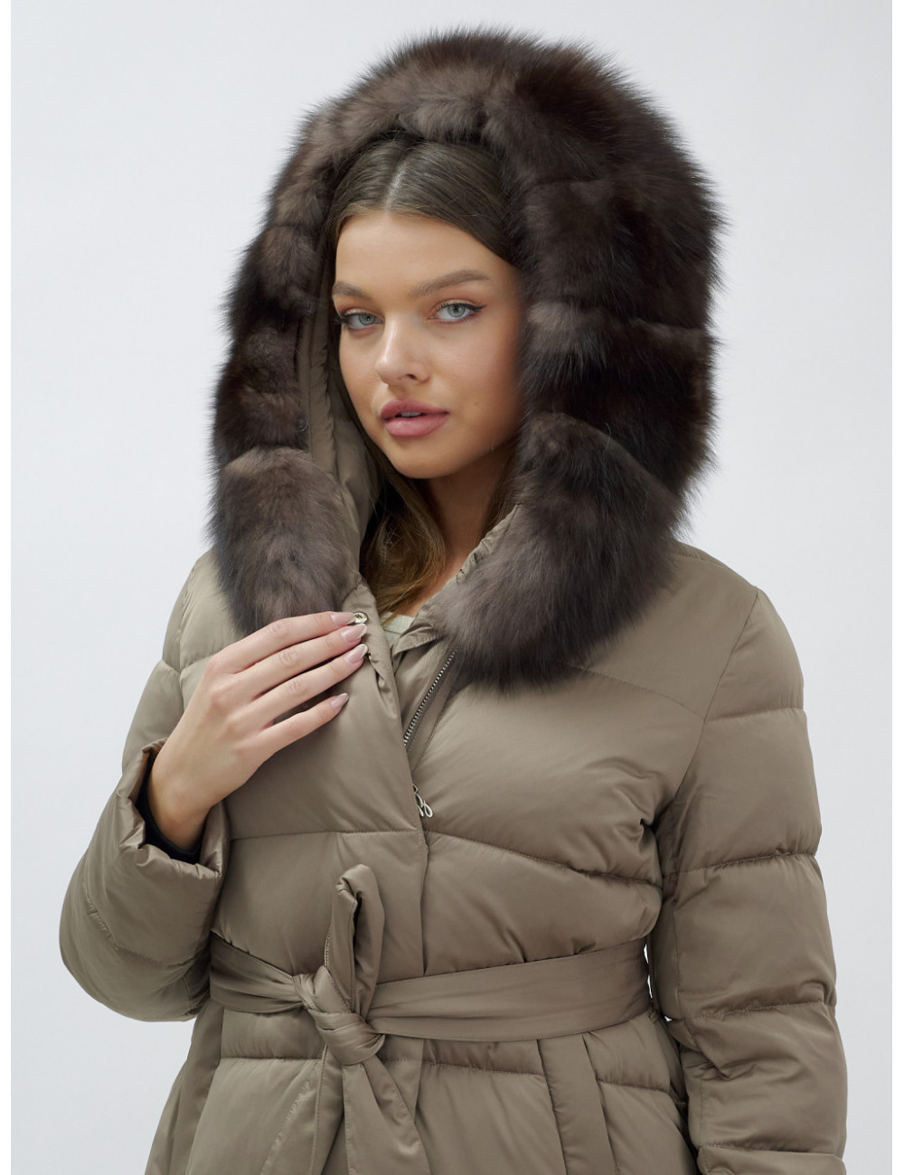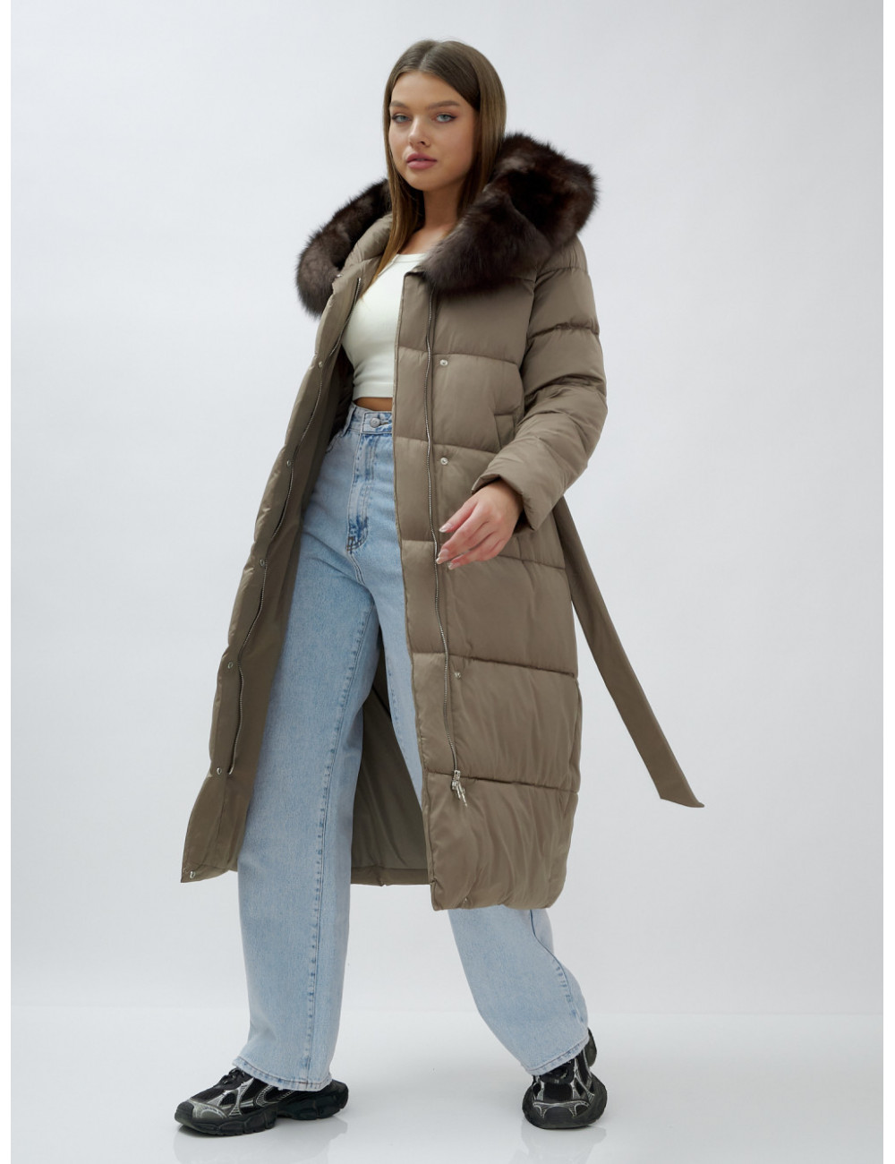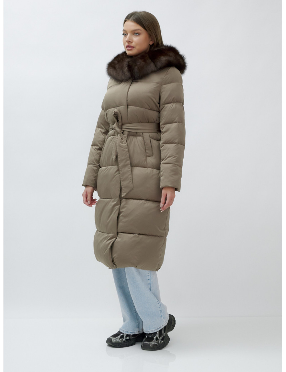 Технические характеристики Пуховик-пальто женское зимний с мехом песца коричневого цвета.