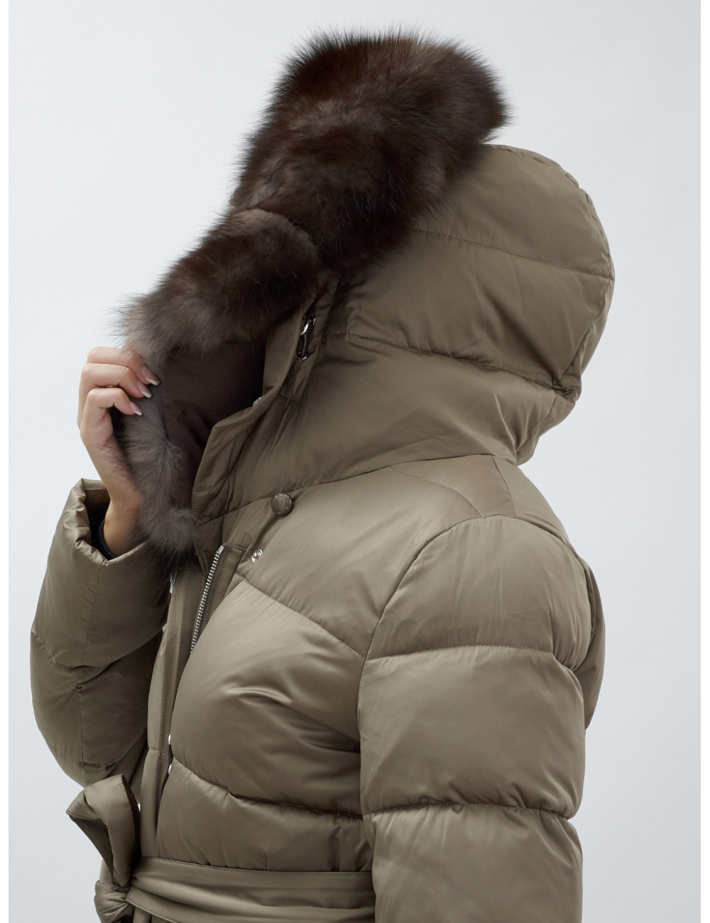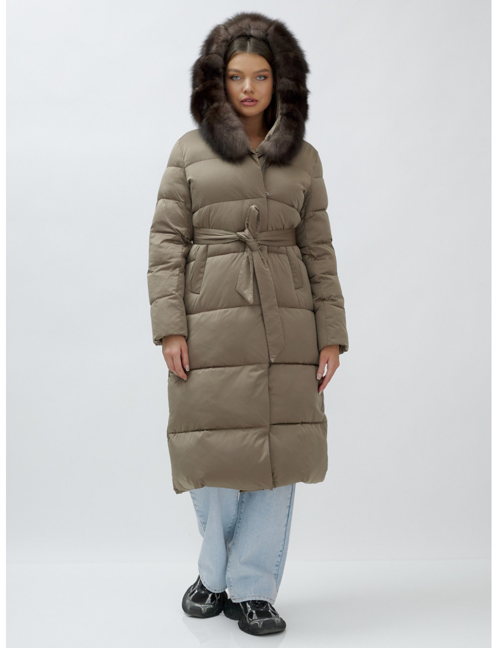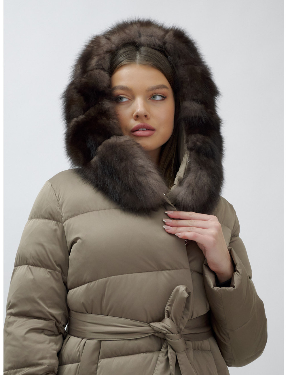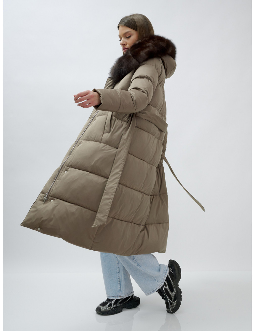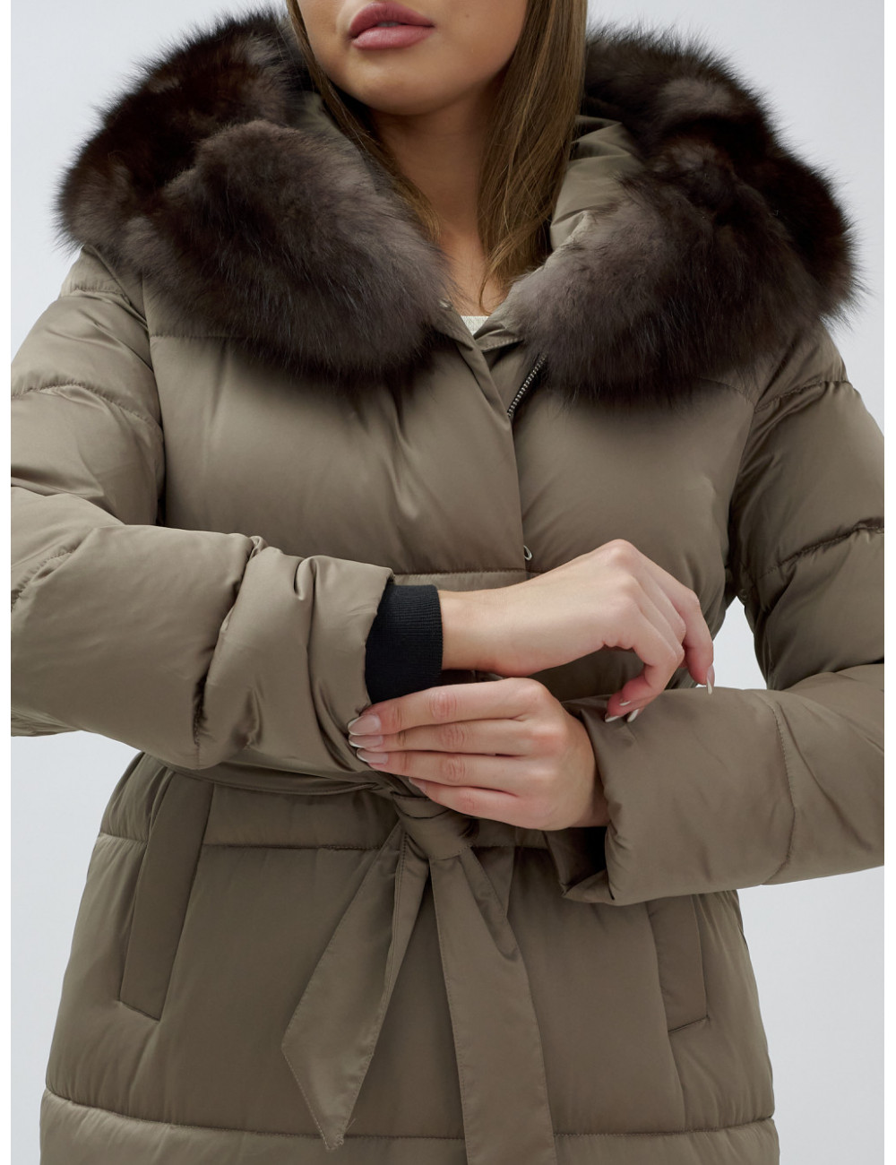 Технические характеристики Пуховик-пальто женское зимний с мехом песца коричневого цвета.