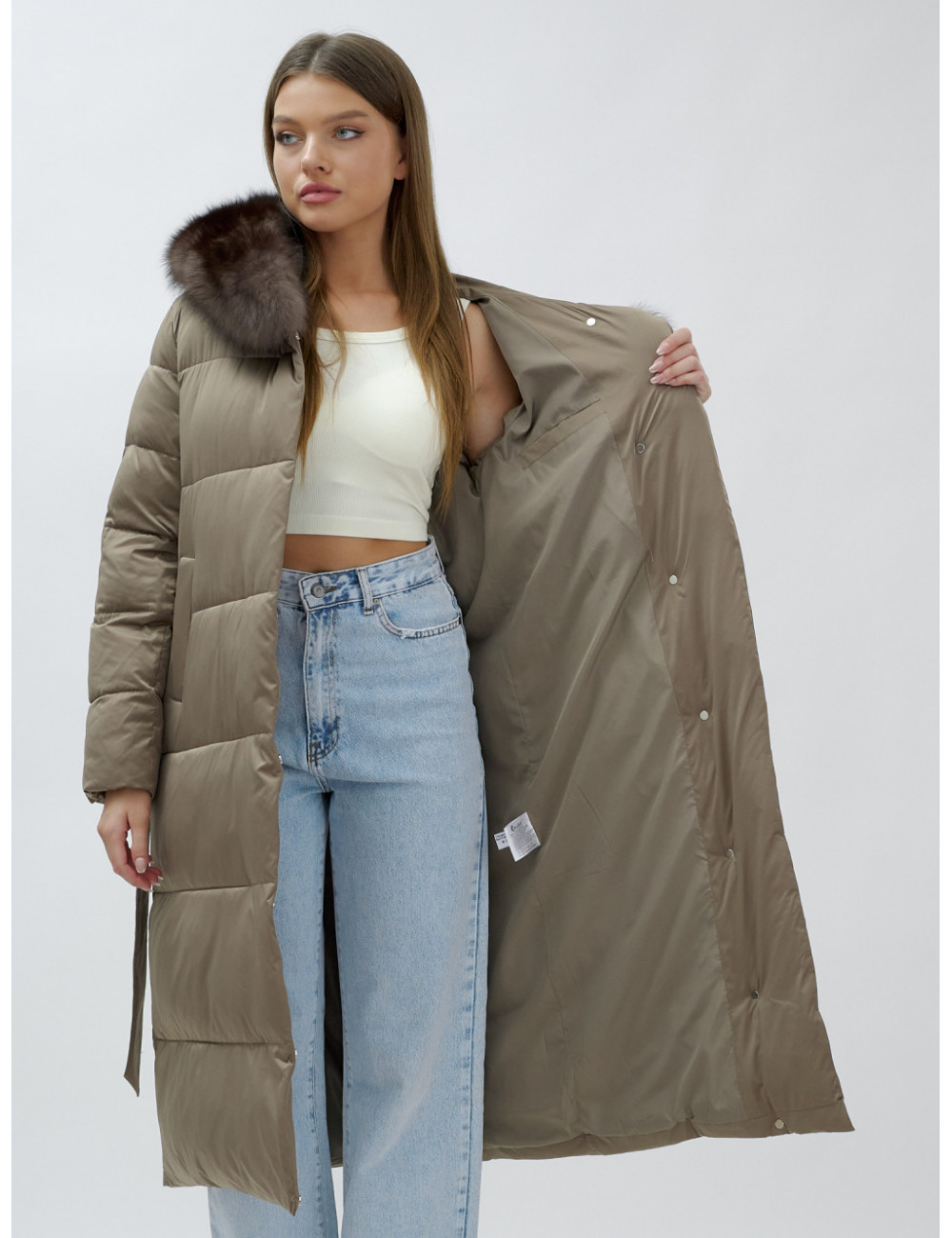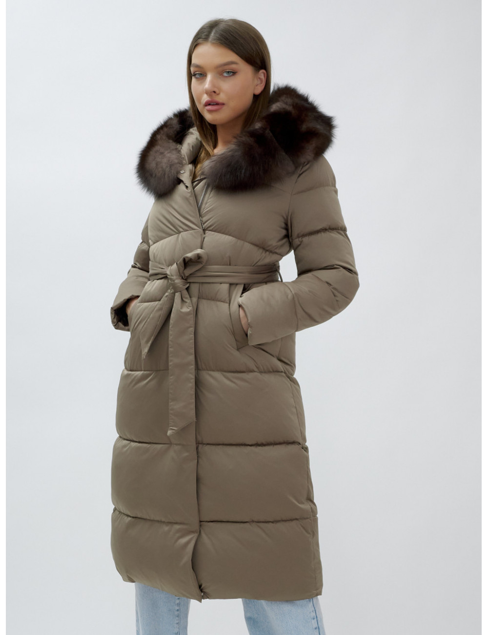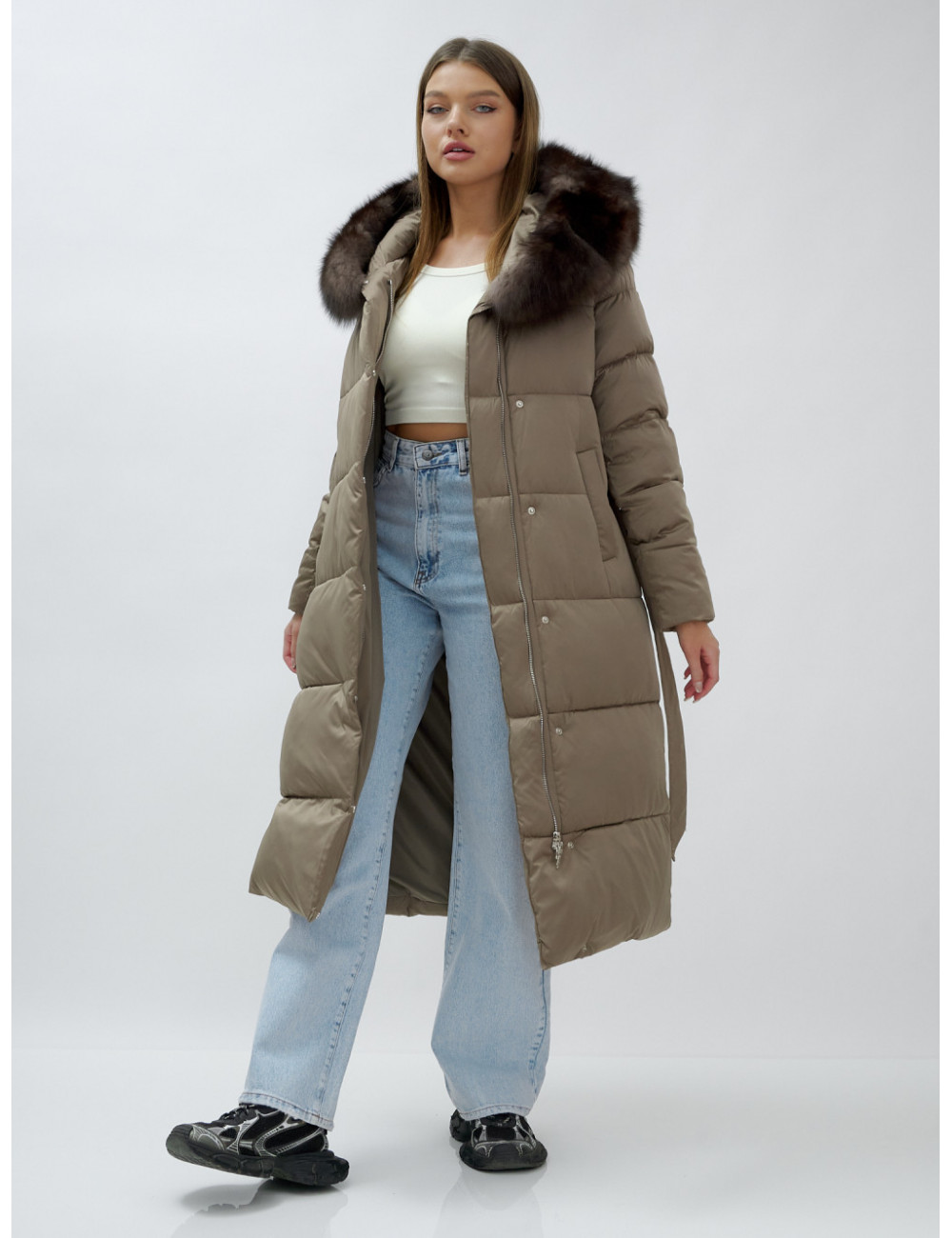 Купить за 31194 ₽ в Тюмени Пуховик-пальто женское зимний с мехом песца коричневого цвета.