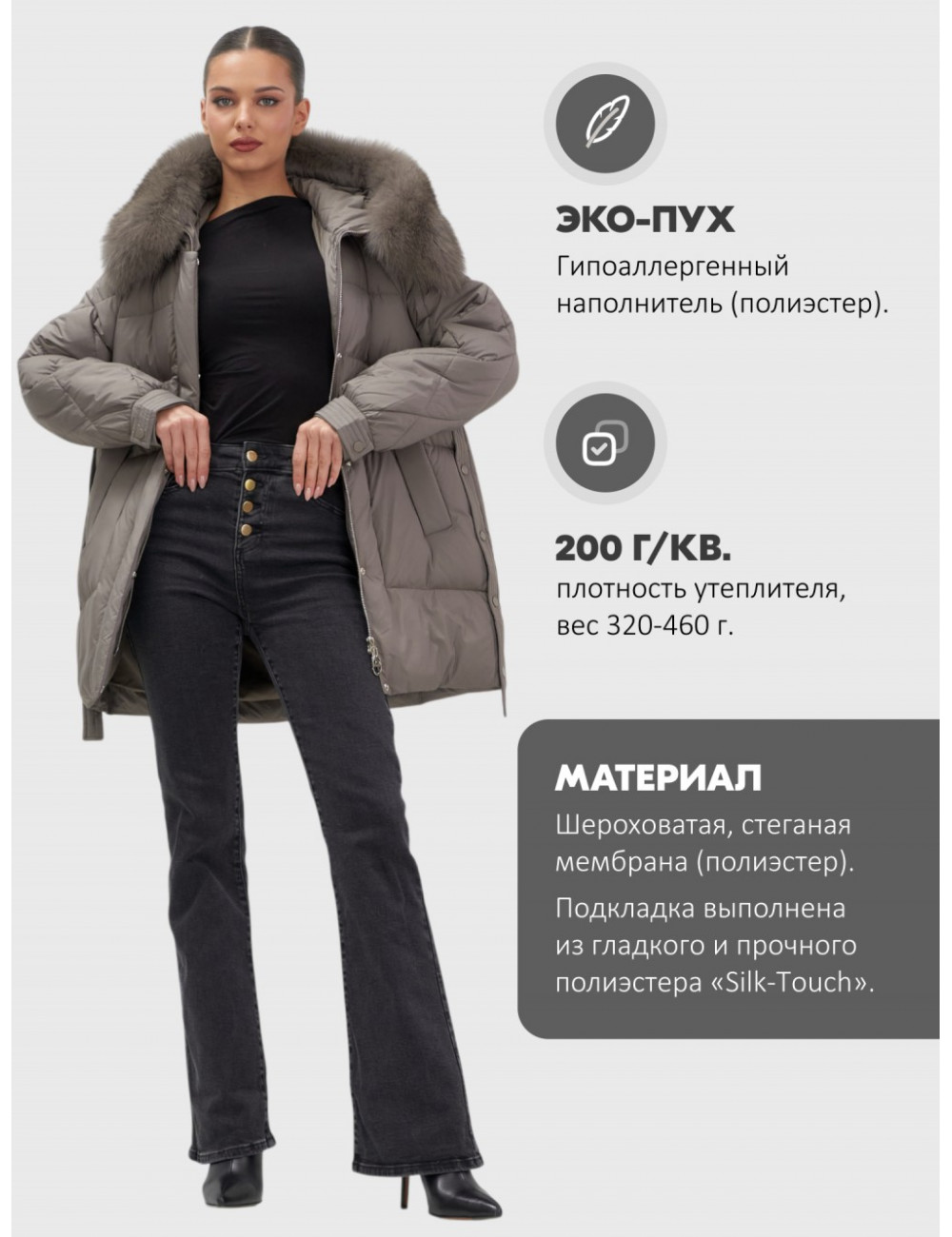 | Особенности модели | быстросохнущая, ветрозащита, водоотталкивающий материал, гипоаллергенный материал, дышащий материал, съемная опушка |