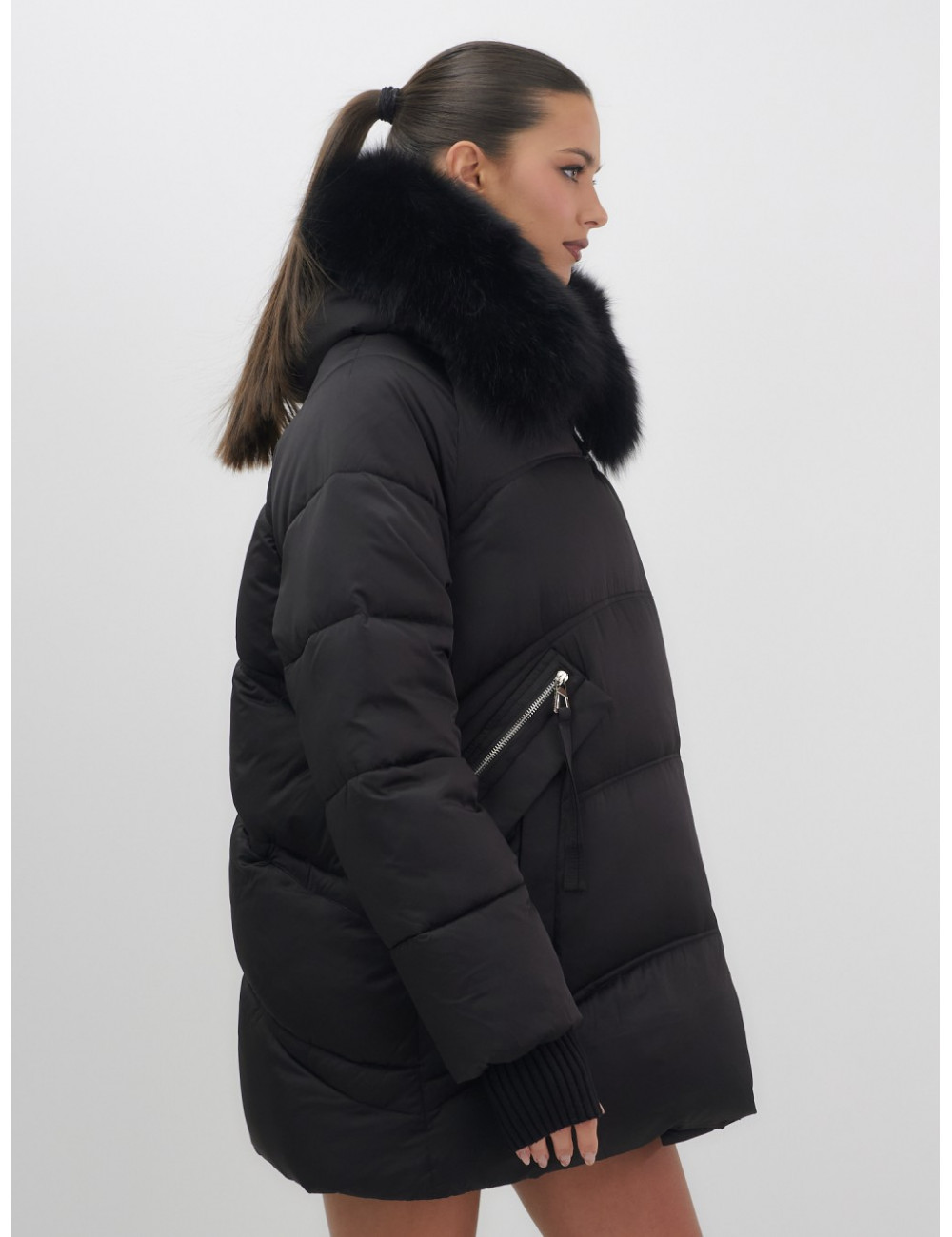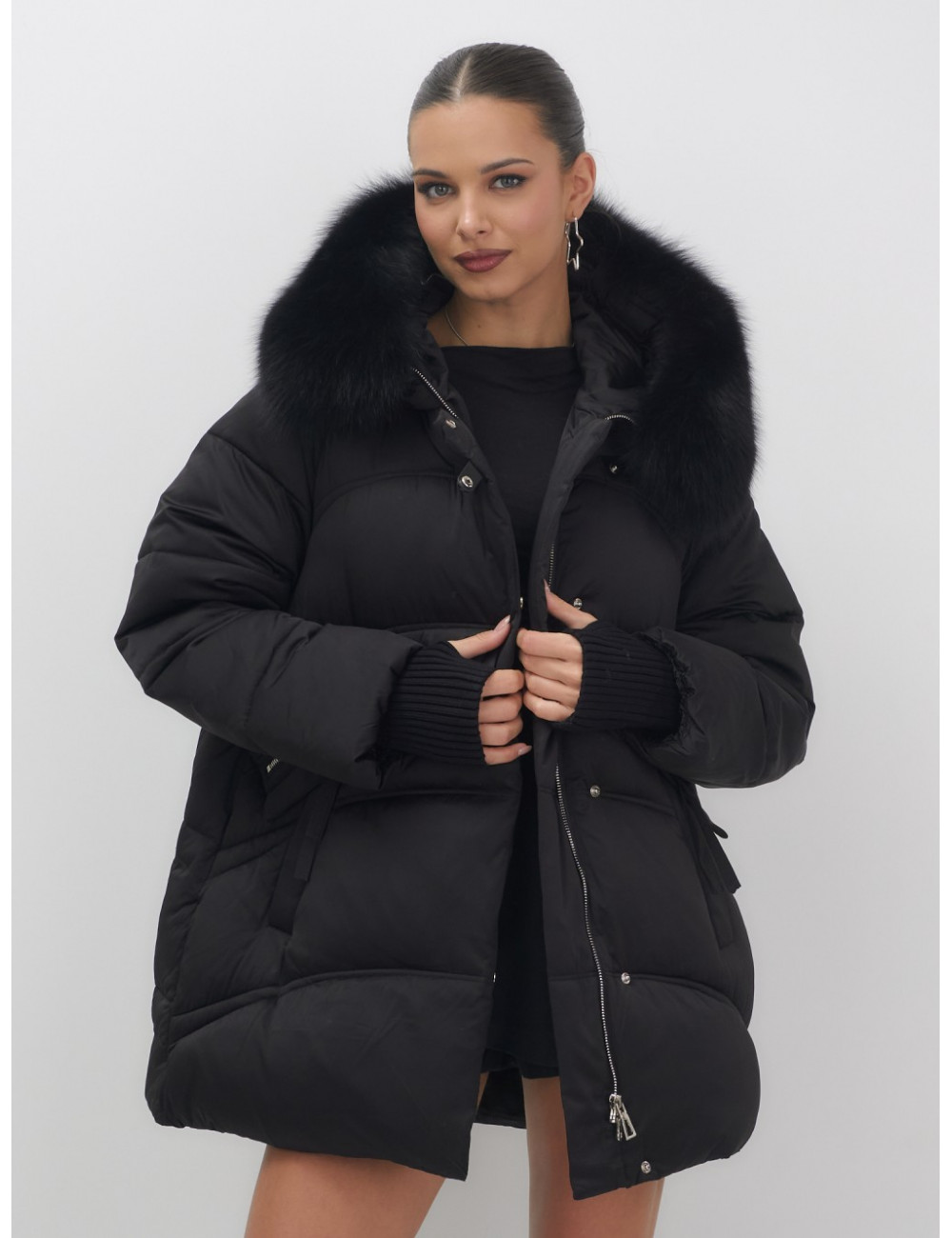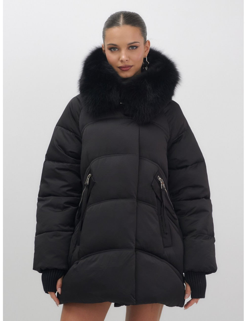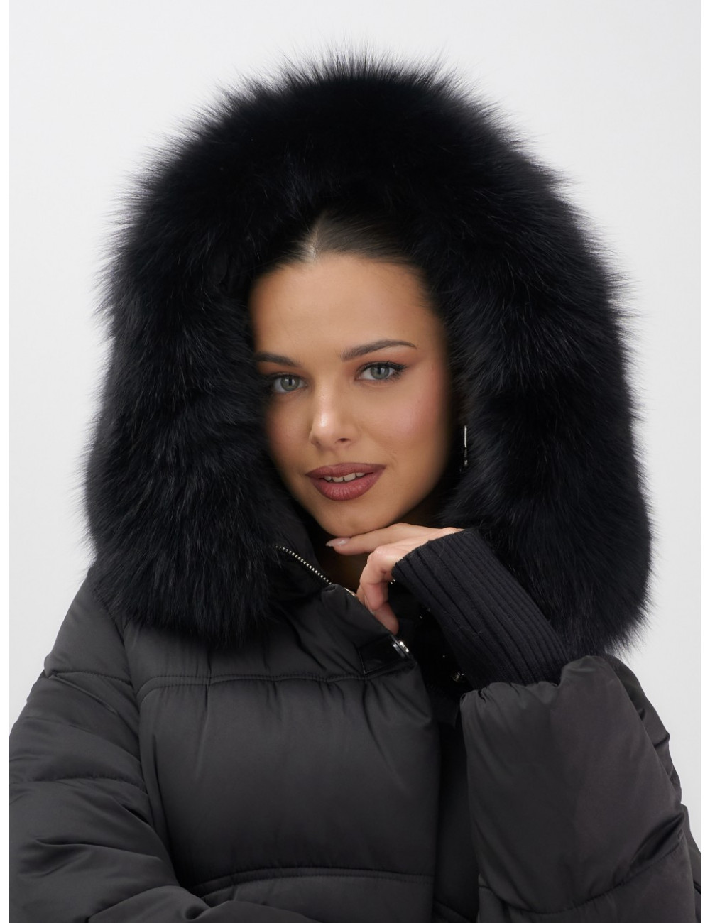 Доставка Женский зимний пуховик с мехом и капюшоном, чёрный. по Тюмени и Тюменской области СДЭК
