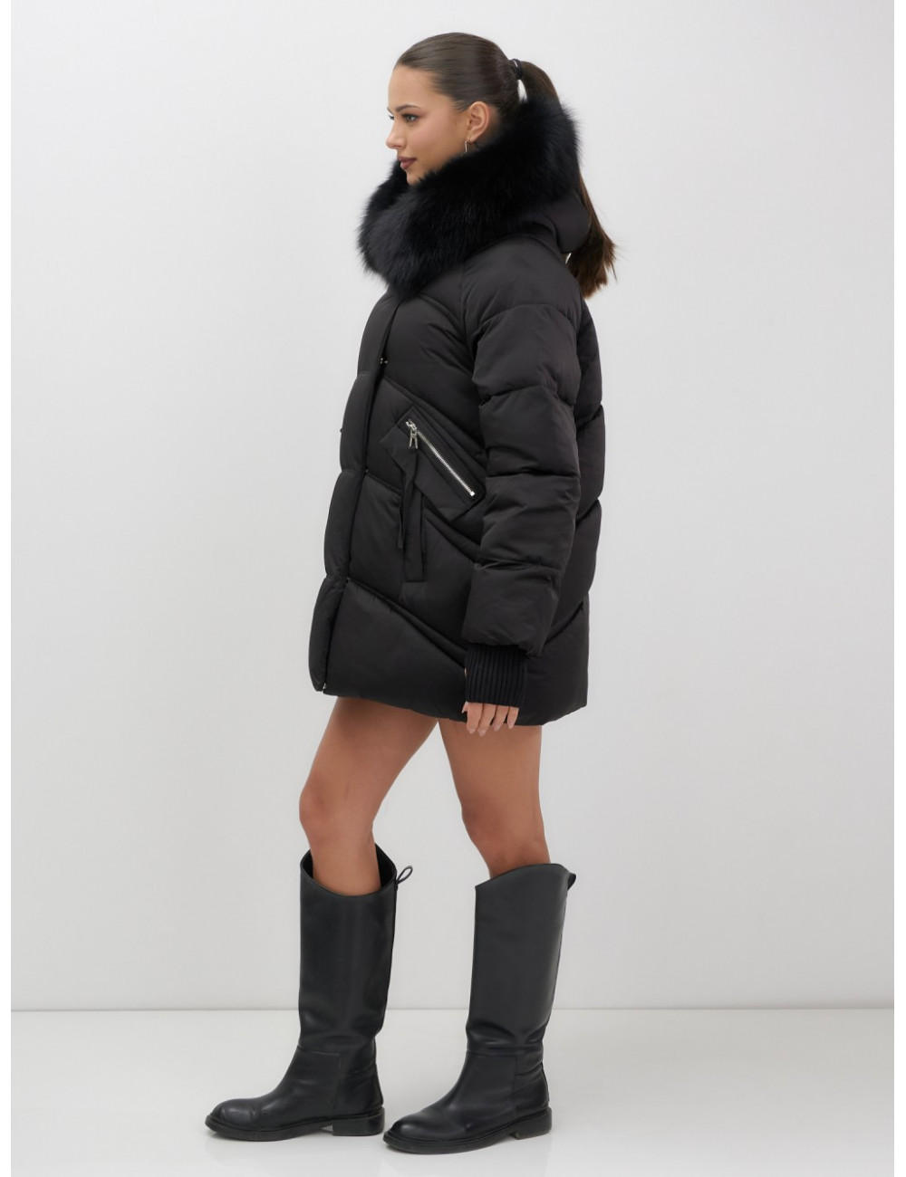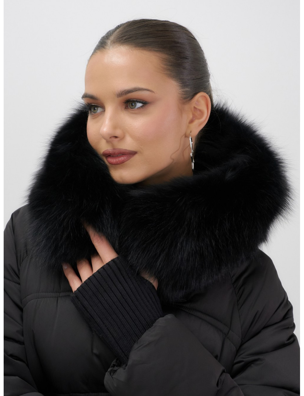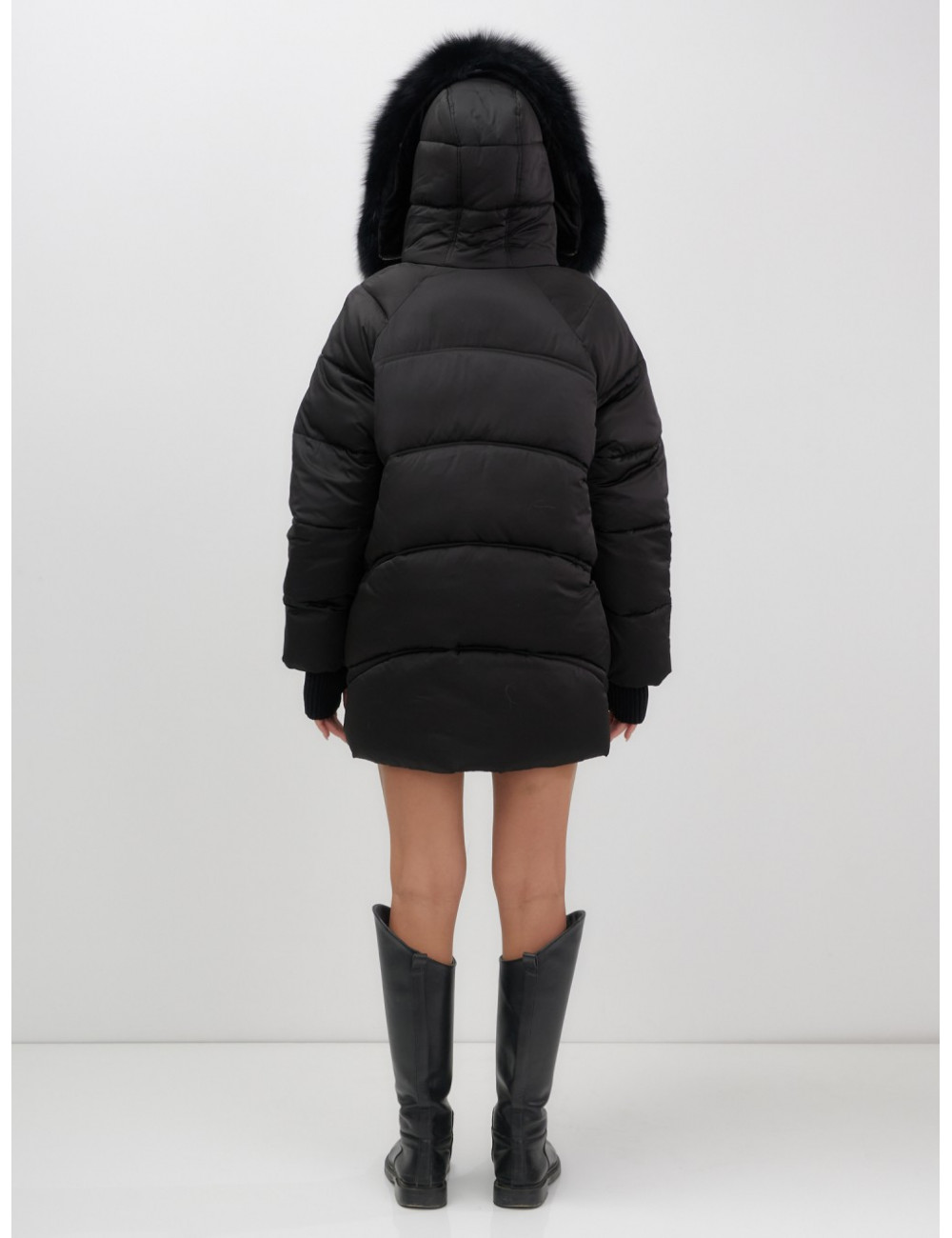 Доставка Женский зимний пуховик с мехом и капюшоном, чёрный. по Тюмени и Тюменской области СДЭК