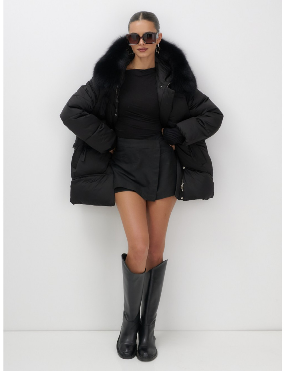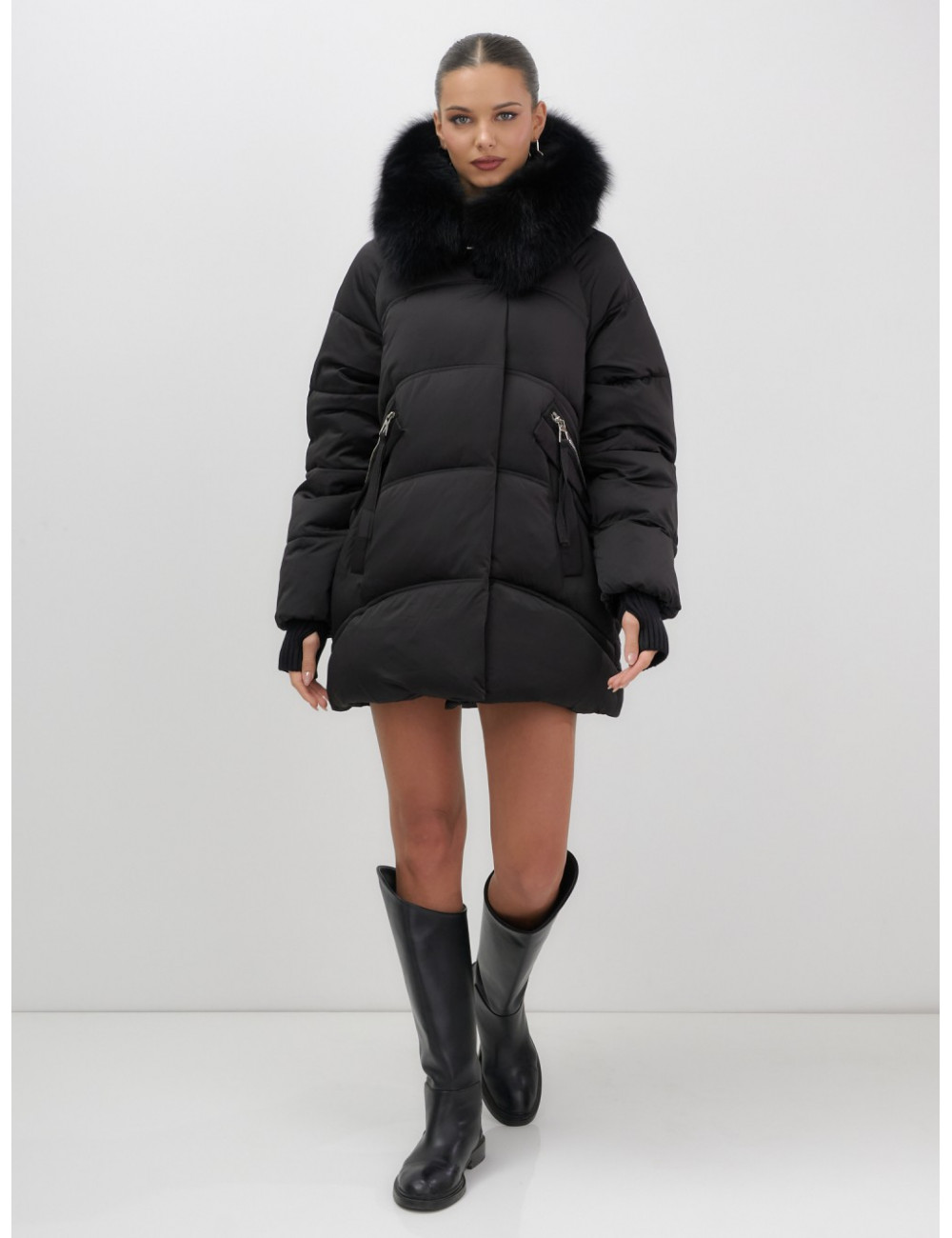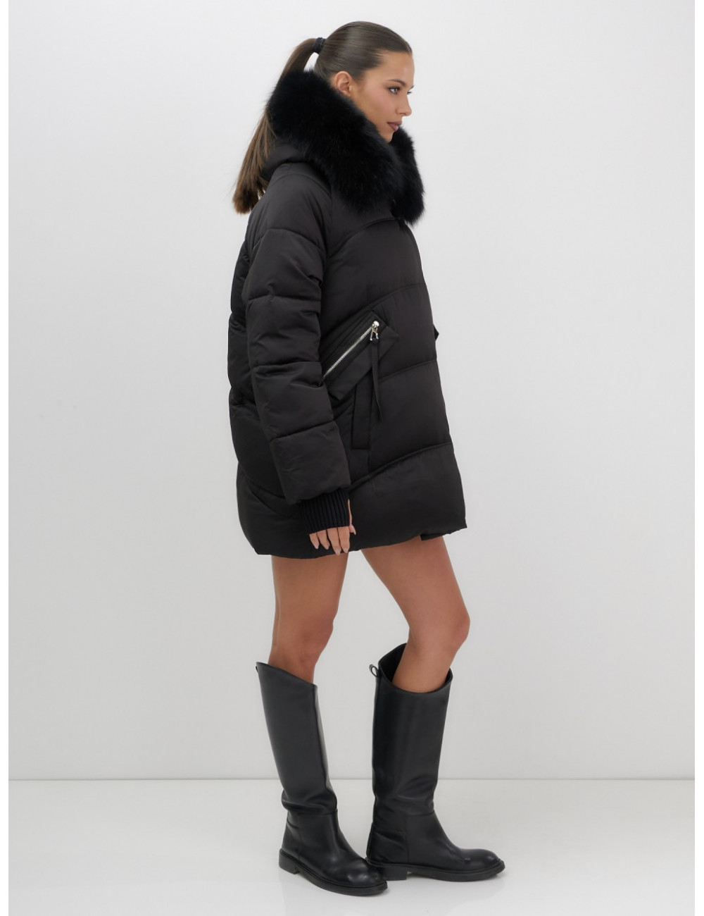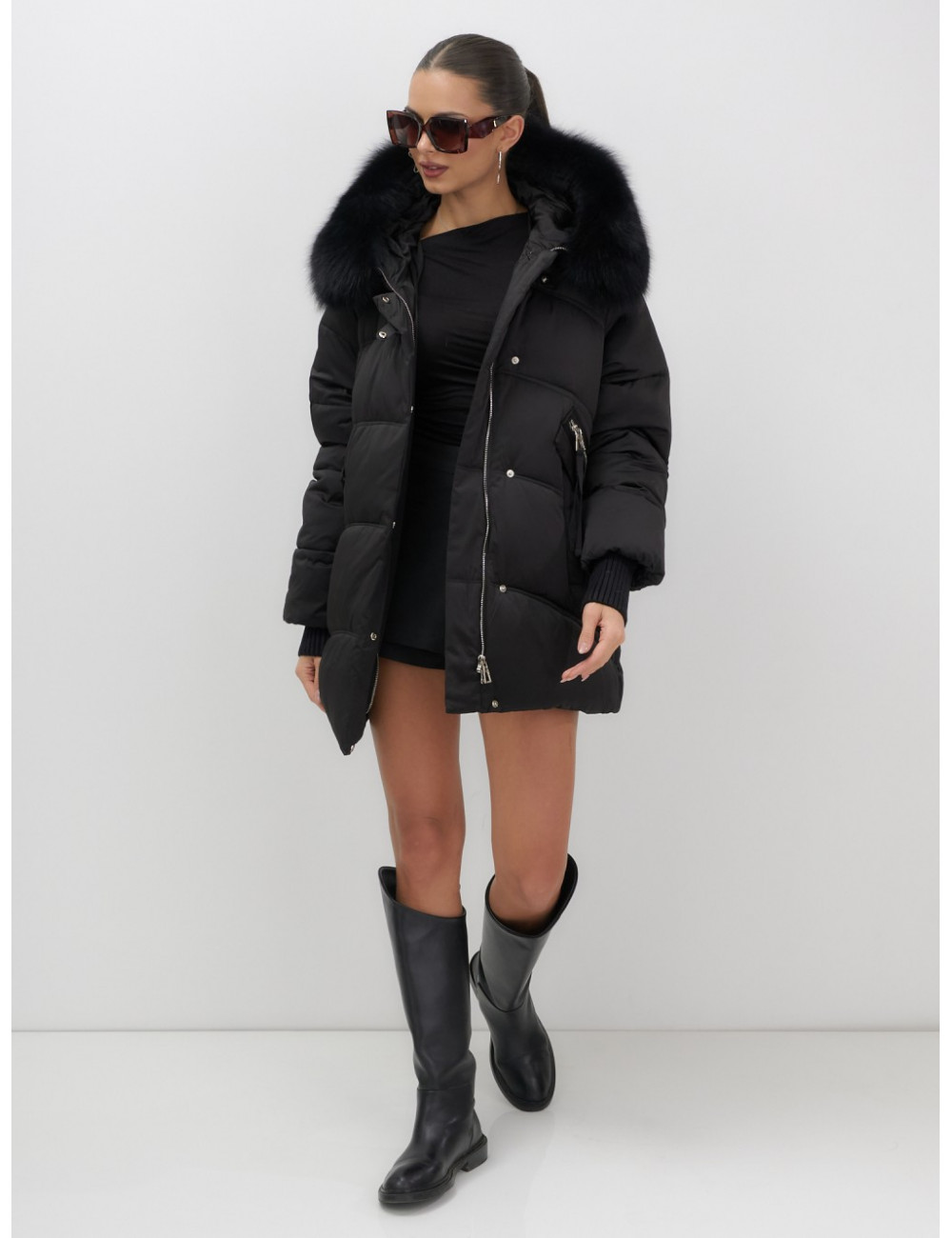 Доставка Женский зимний пуховик с мехом и капюшоном, чёрный. по Тюмени и Тюменской области СДЭК