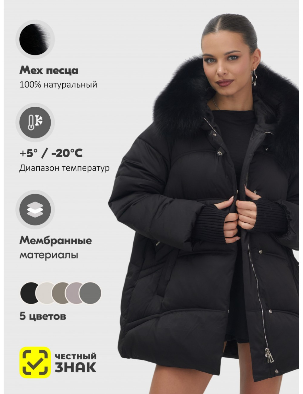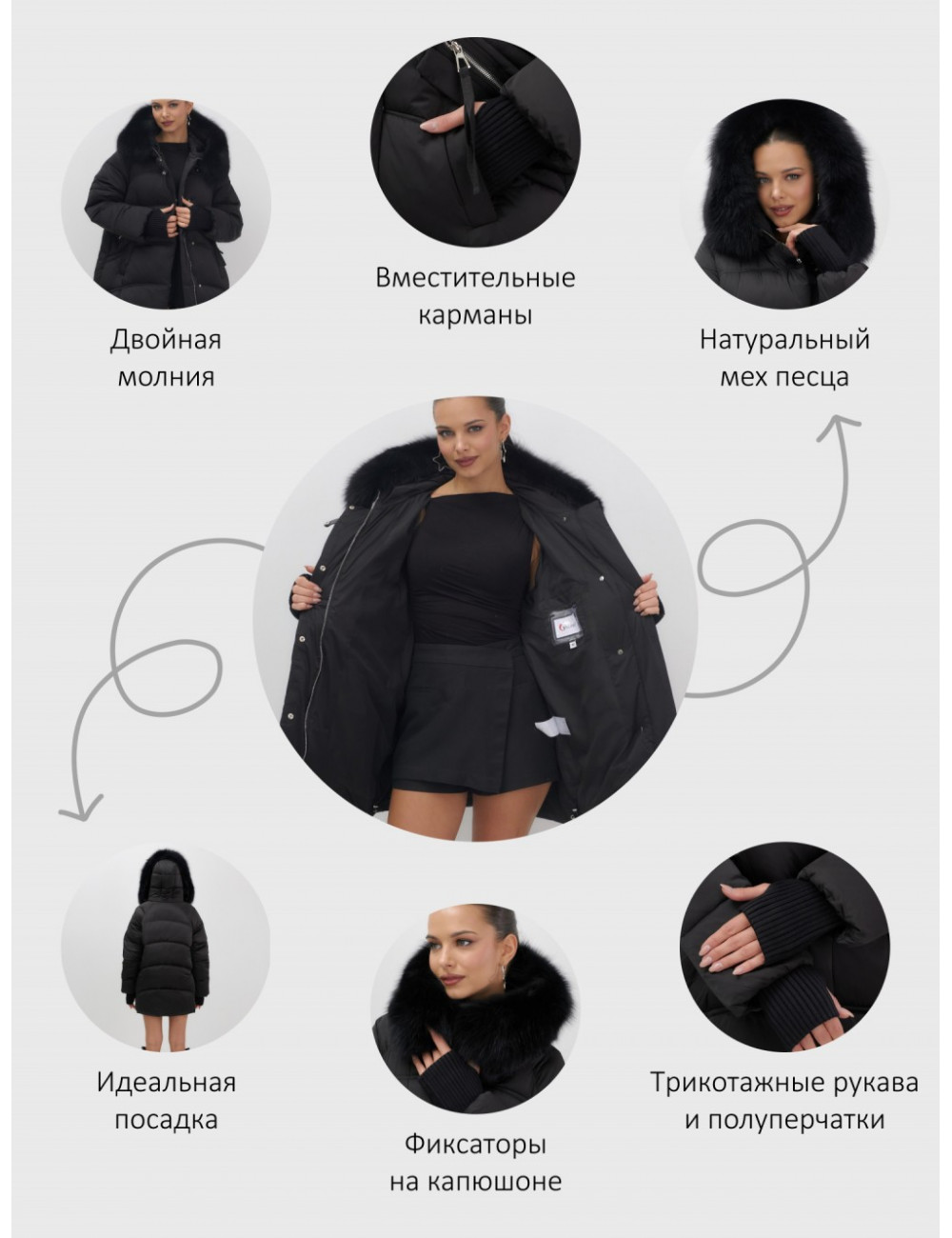 - Натуральная отделка: высококачественный мех песца придаёт образу роскошь и элегантность.
