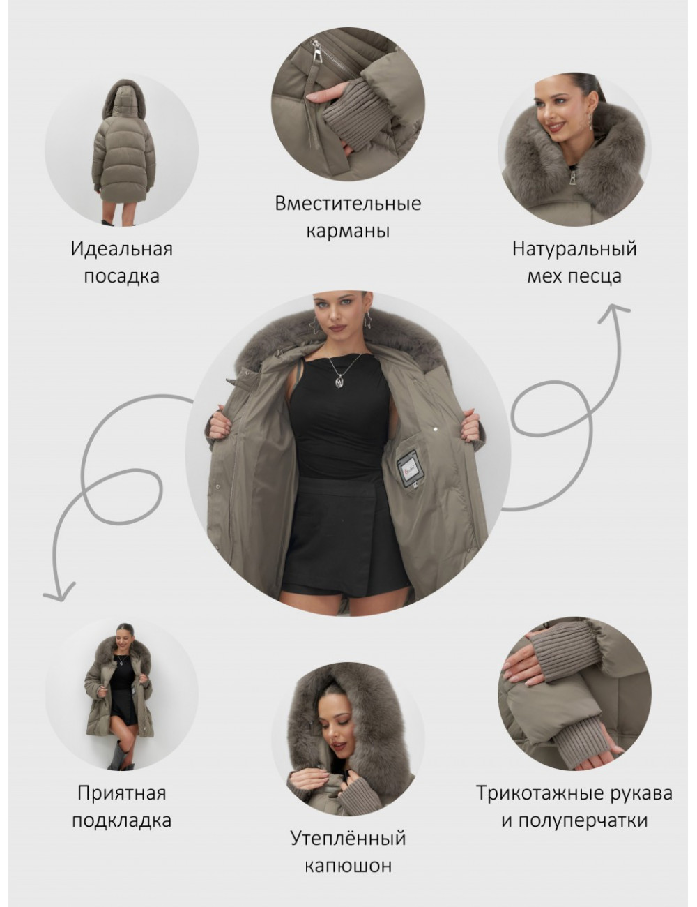 - Стиль. Элегантный дизайн и натуральные материалы делают пуховик идеальным выбором для любого образа.