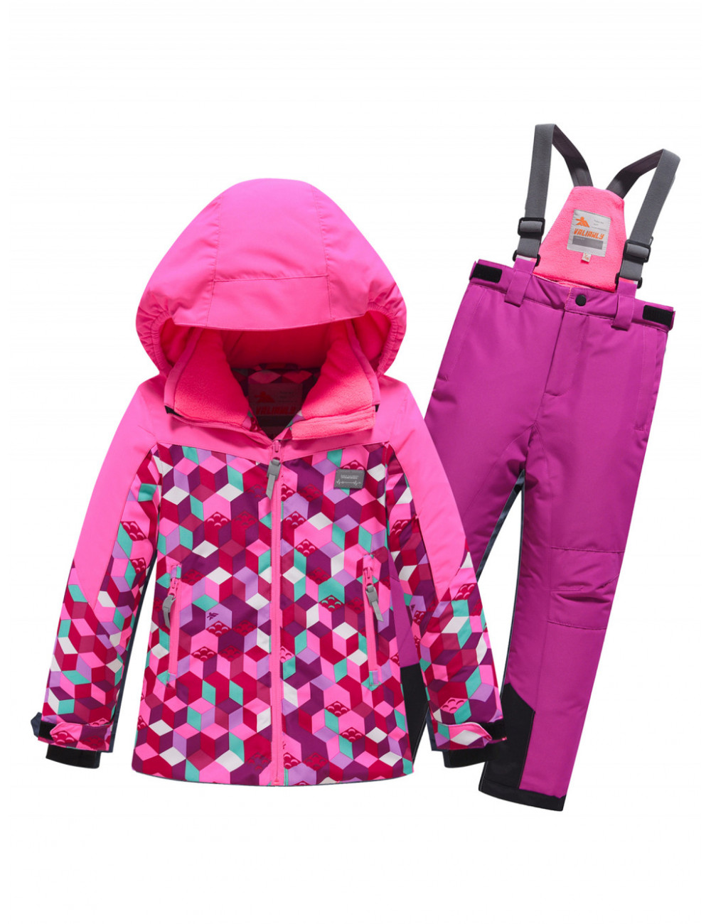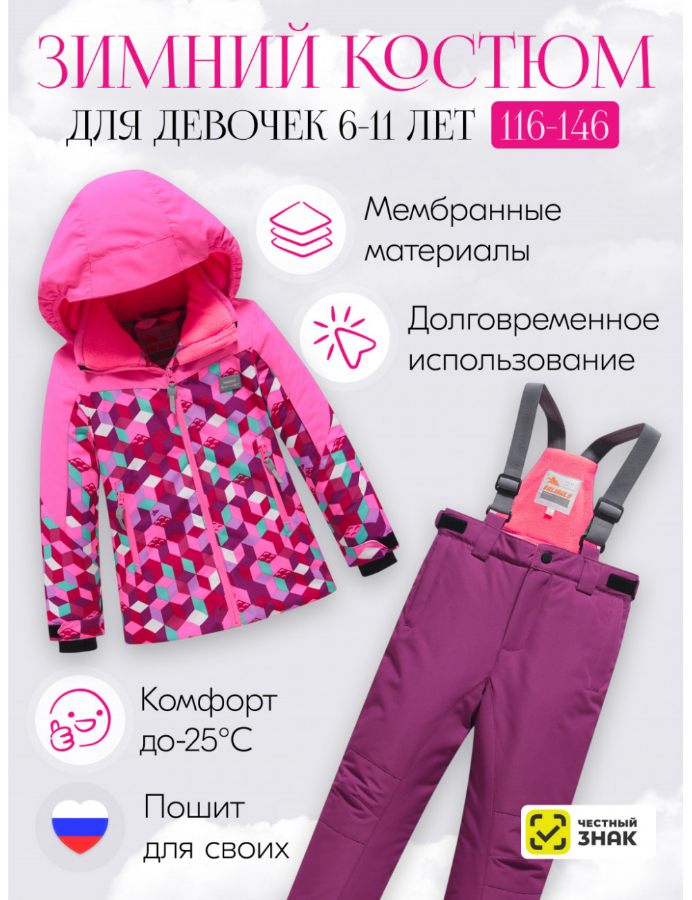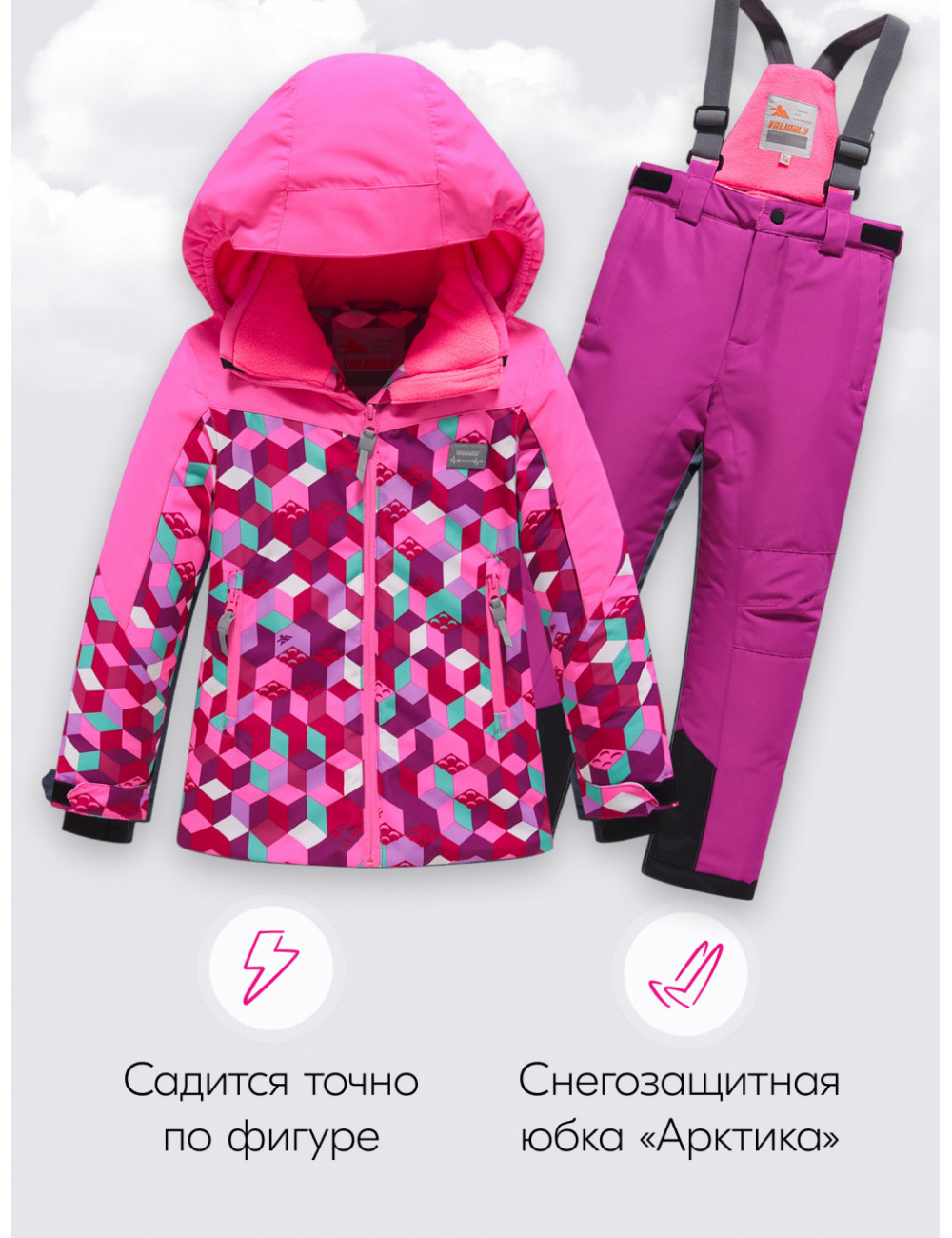 Стильный горнолыжный костюм для девочки с комбинированным принтом — отличный выбор для зимних приключений.