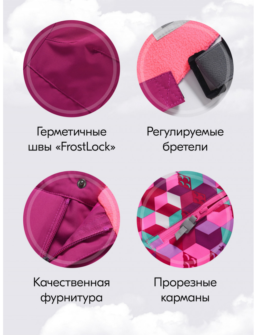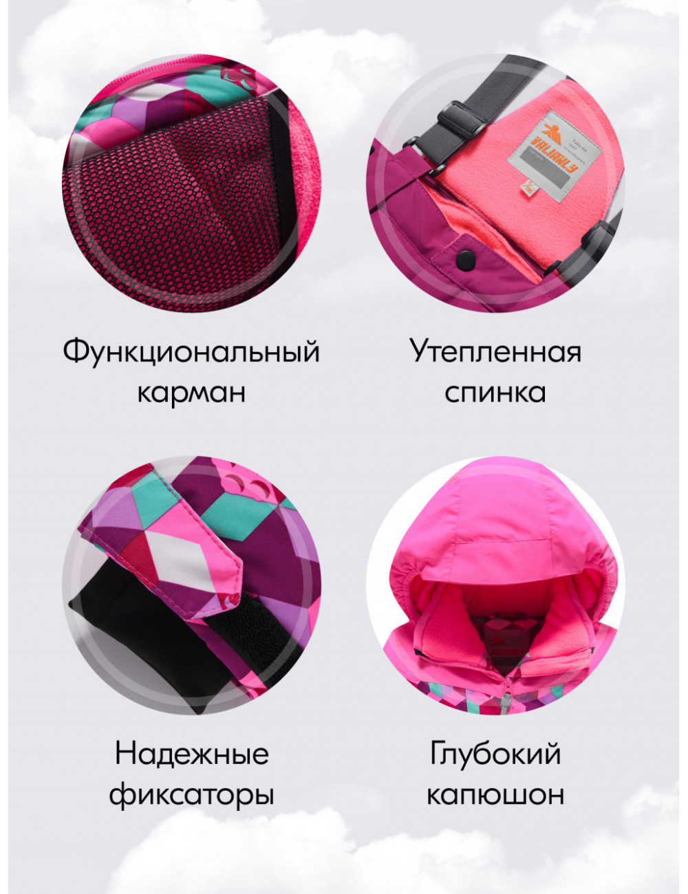 Костюм можно сочетать с тёплыми термобельём и аксессуарами для зимних видов спорта, такими как шапки, перчатки и шарфы из аналогичных материалов. Это создаст гармоничный и практичный образ для зимних приключений. Доставка по Москве и Московской области Горнолыжный костюм зимний для девочки розовый