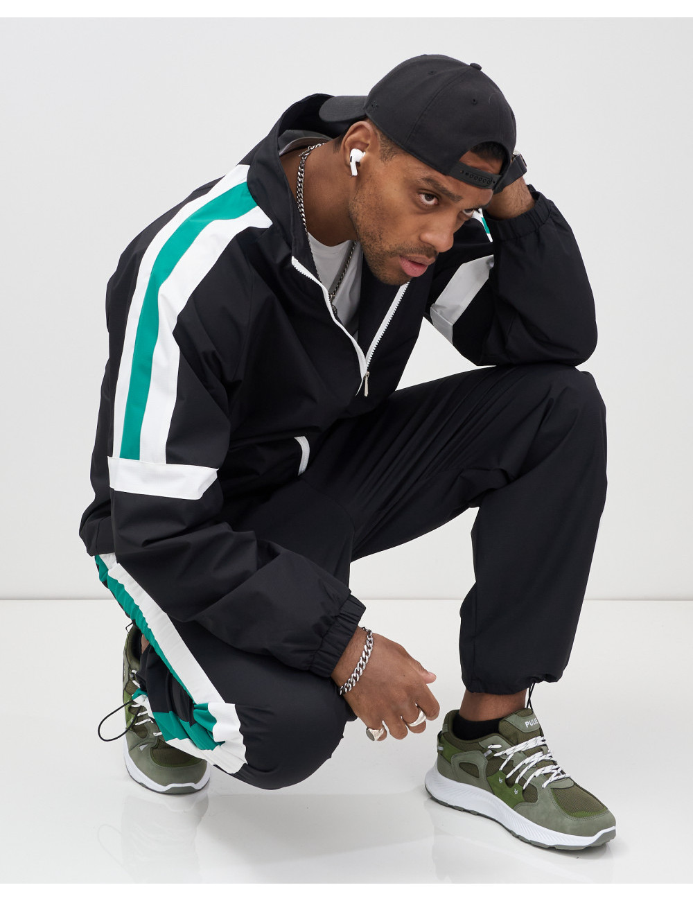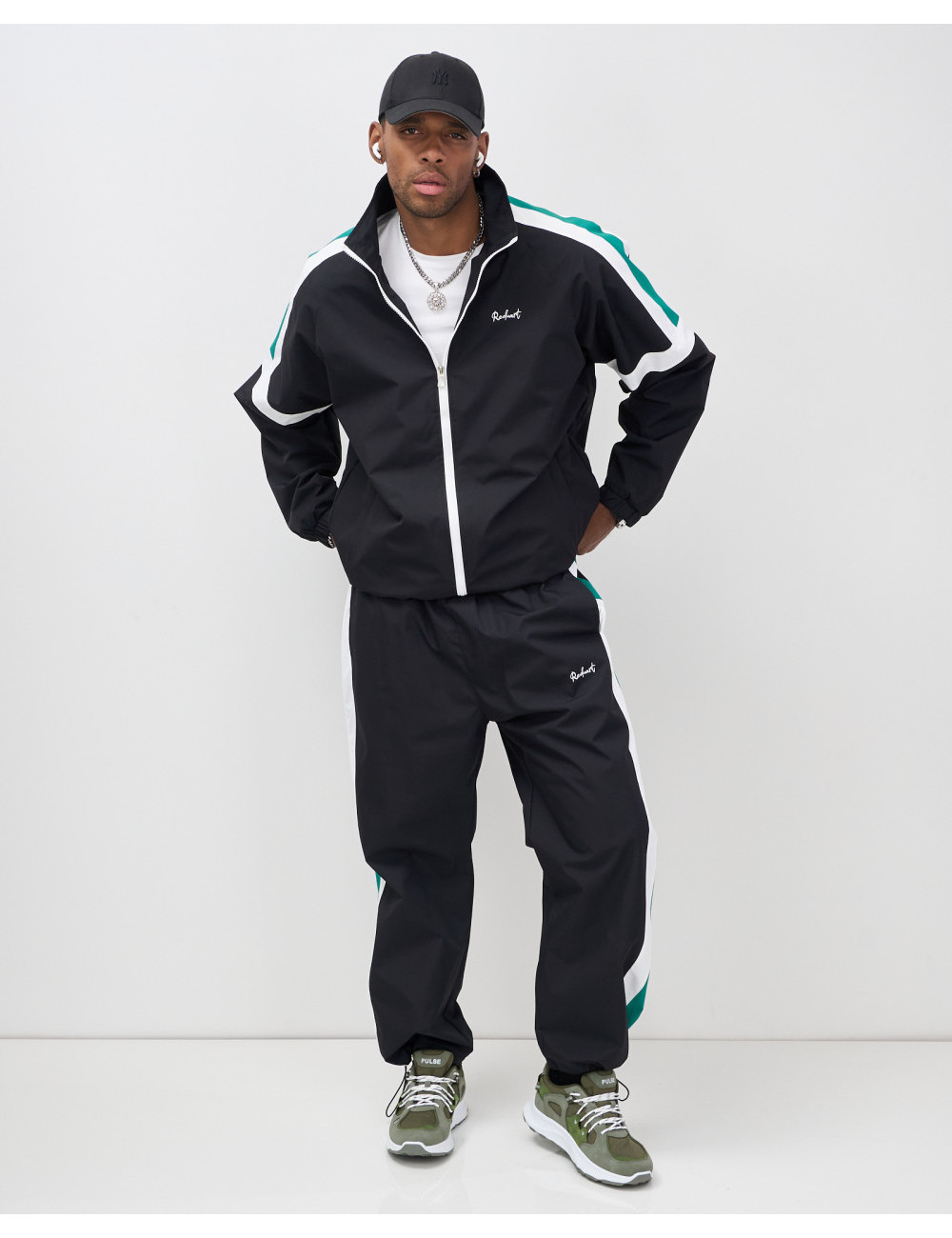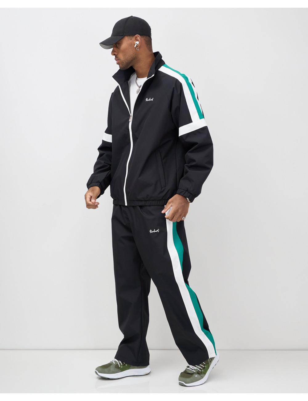 Модель включает в себя олимпийку с длинным рукавом и брюки с фиксатором. Свободный покрой и стояче-отложной вырез горловины придают вам современный вид, который идеально вписывается в уличную моду.