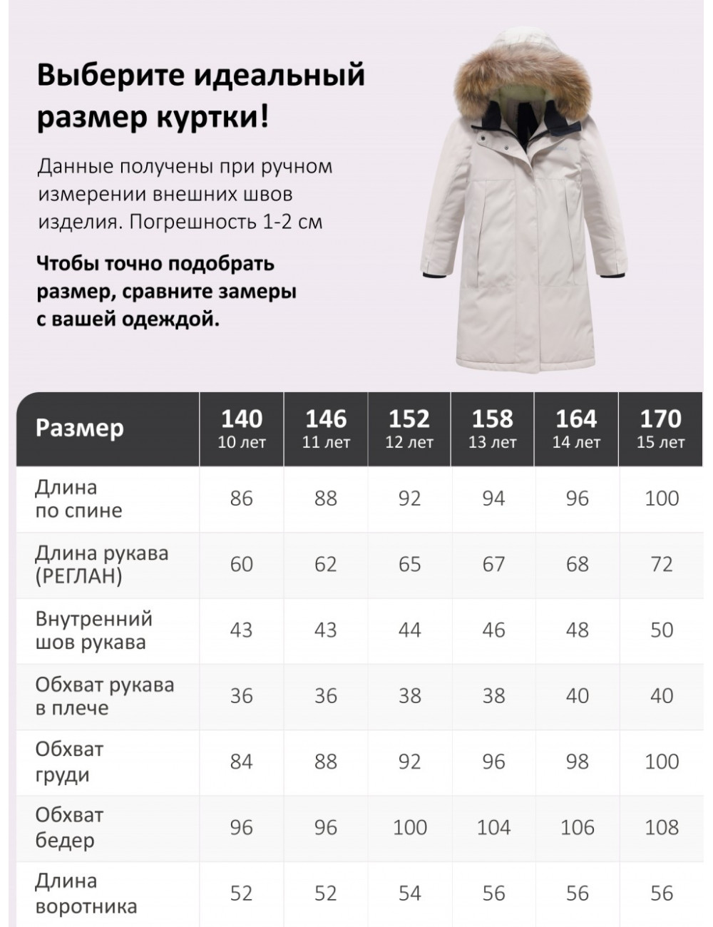 - Длина куртки — измеряется от верхней точки плеча до нижнего края куртки.