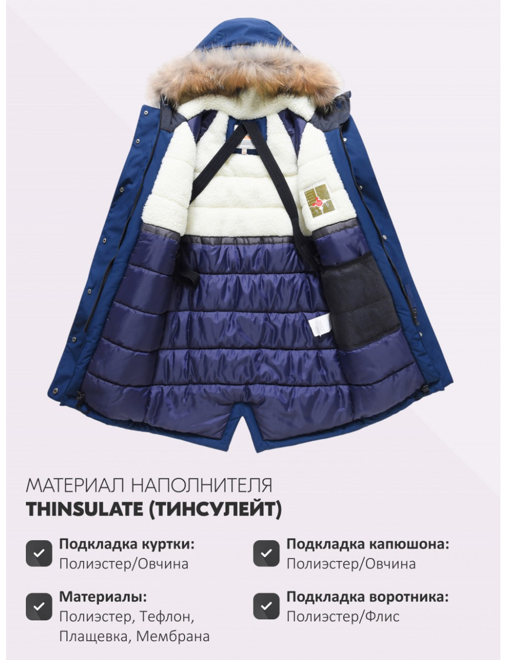 | Материал подкладки куртки | Полиэстер/Овчина |
