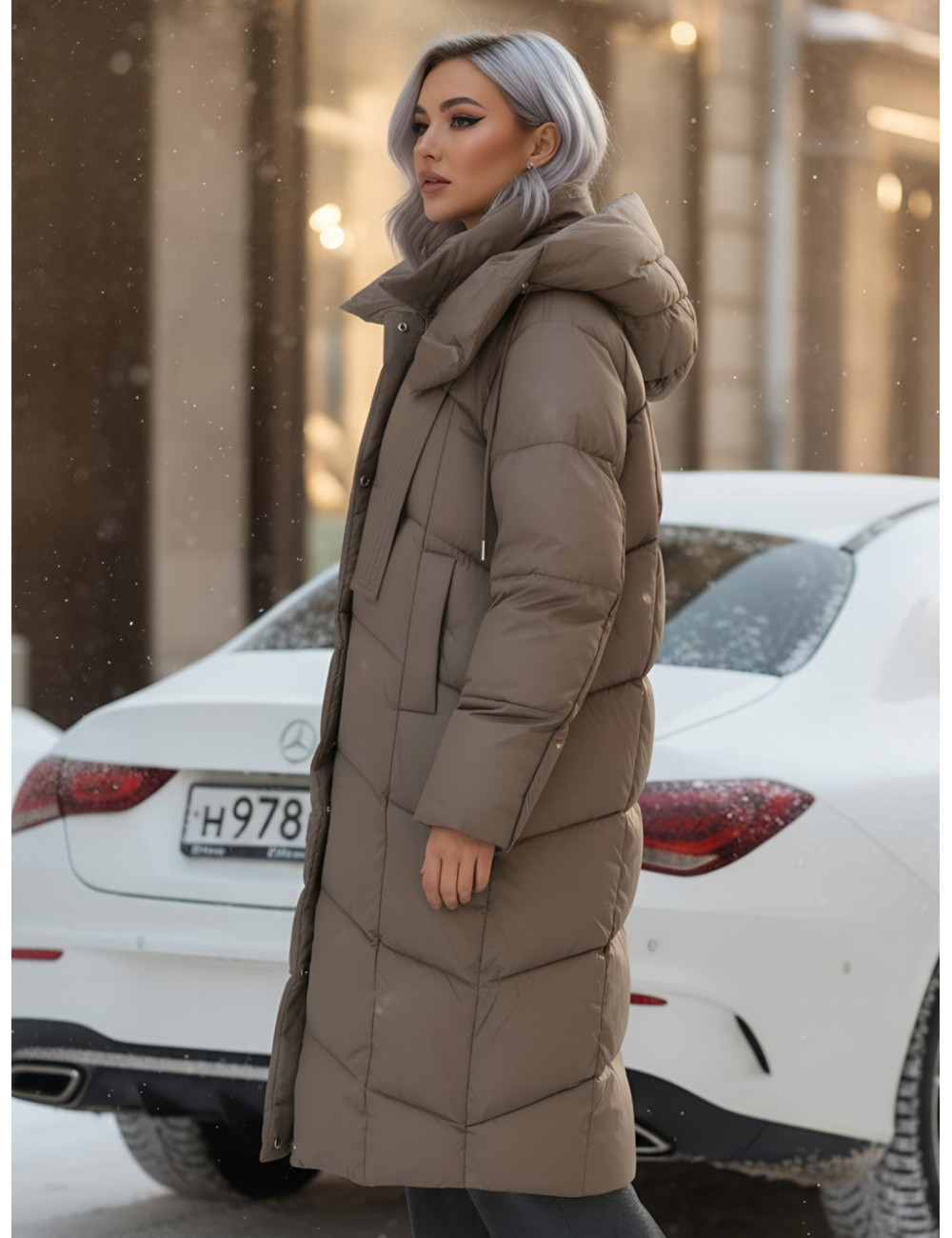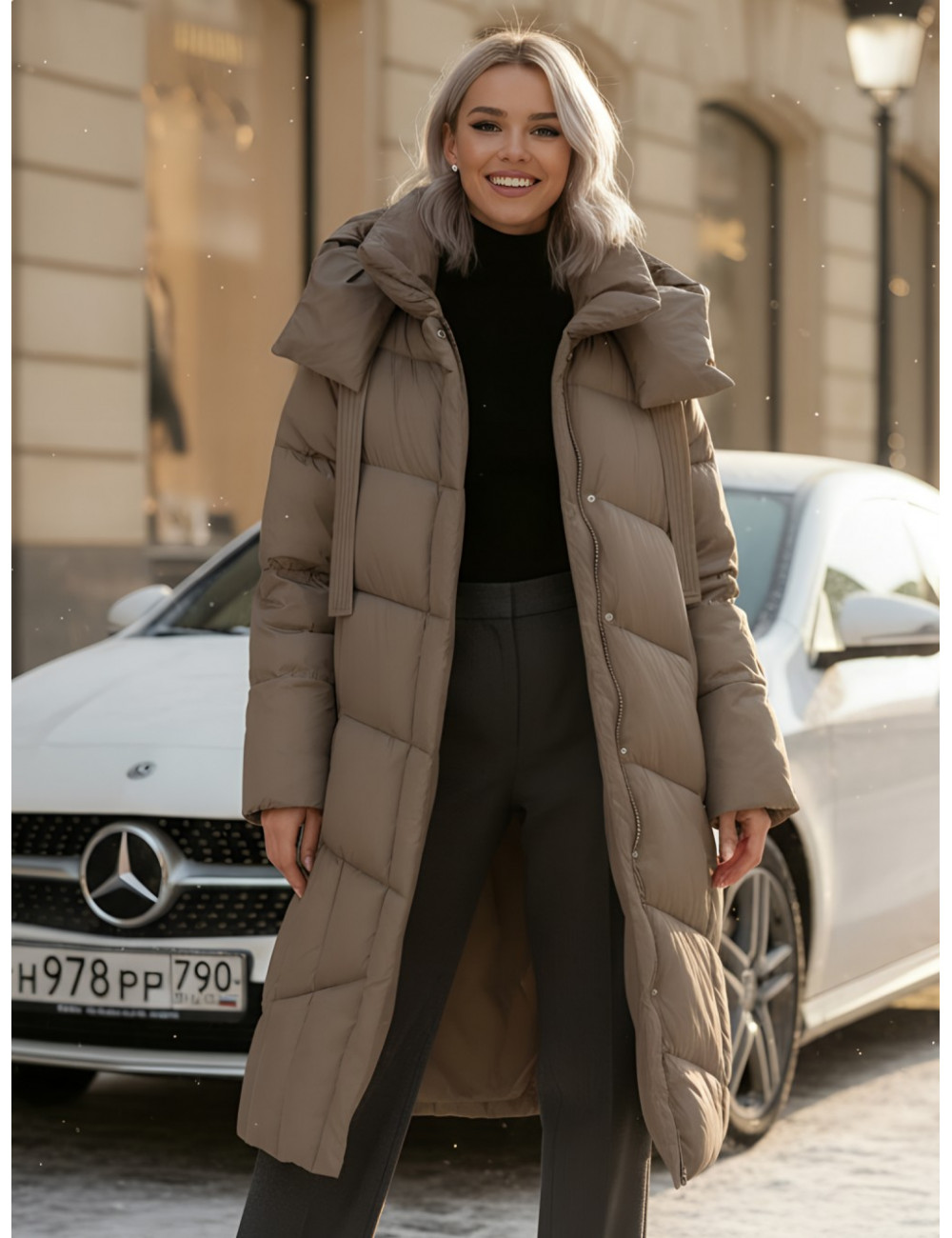 Пуховик от Ketsi доступен в модных цветах: тёмно-сером, чёрном и светло-коричневом. Это позволяет легко комбинировать его с вашим гардеробом. Не упустите шанс стать обладательницей этой тёплой и стильной модели из коллекции «Осень-зима 2025»! Закажите пуховик от Ketsi прямо сейчас и позвольте себе наслаждаться комфортом и стилем в любую погоду! Доставка Длинный пуховик женский утеплённый со светлым коричневым капюшоном по Тюмени и Тюменской области СДЭК