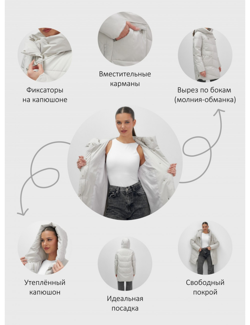 | Декоративные элементы | Капюшон, Карманы, Манжеты, Молния |