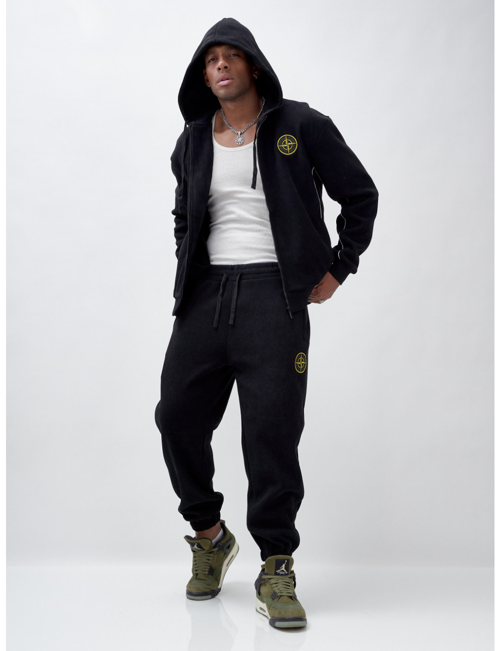 Доставка Мужской демисезонный спортивный костюм на флисе, чёрный, для спорта. по Тюмени и Тюменской области СДЭК