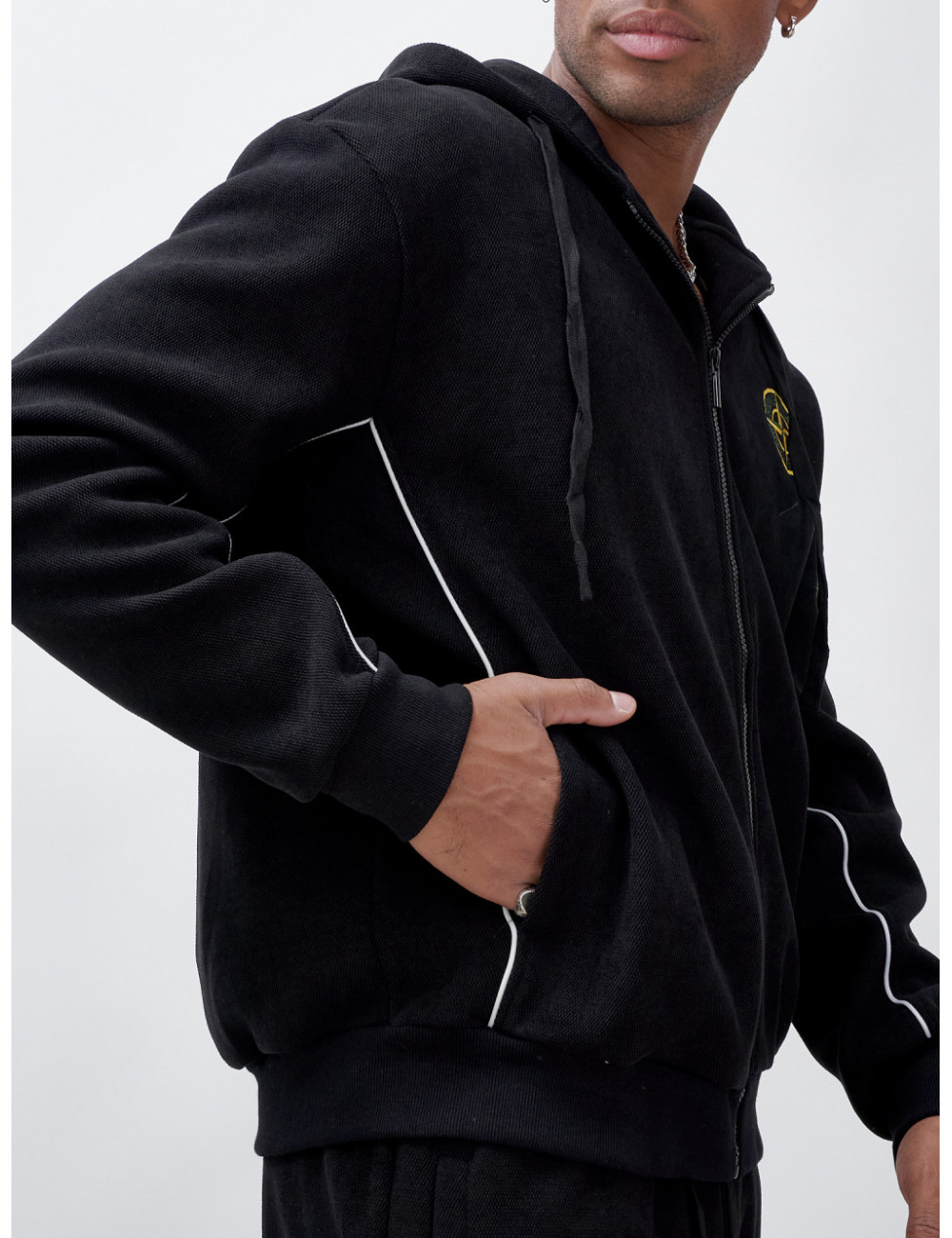 - Практичность и стиль. Боковые карманы на молнии обеспечивают безопасность ваших вещей, а минималистическая вышивка придаёт костюму особый стиль и элегантность.