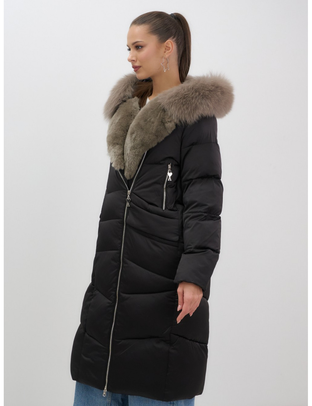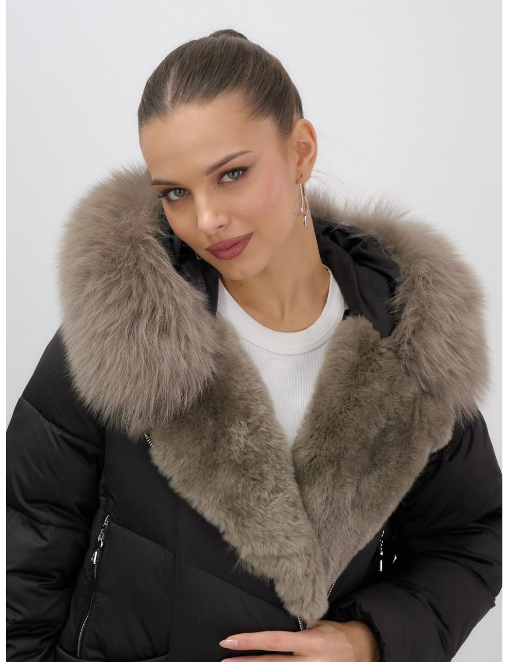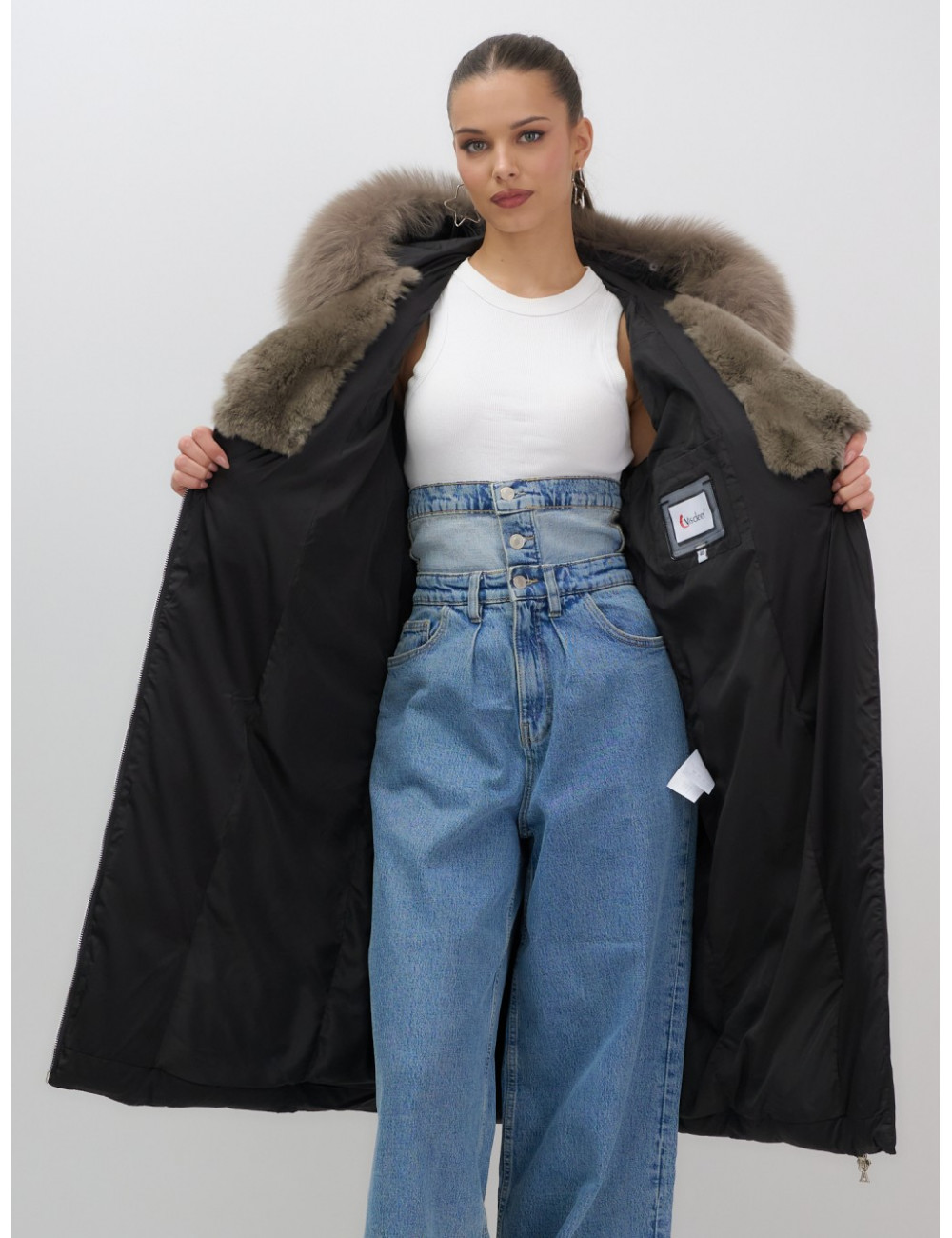 - Изысканный английский воротник из натурального меха кролика и роскошная съёмная опушка из песца.