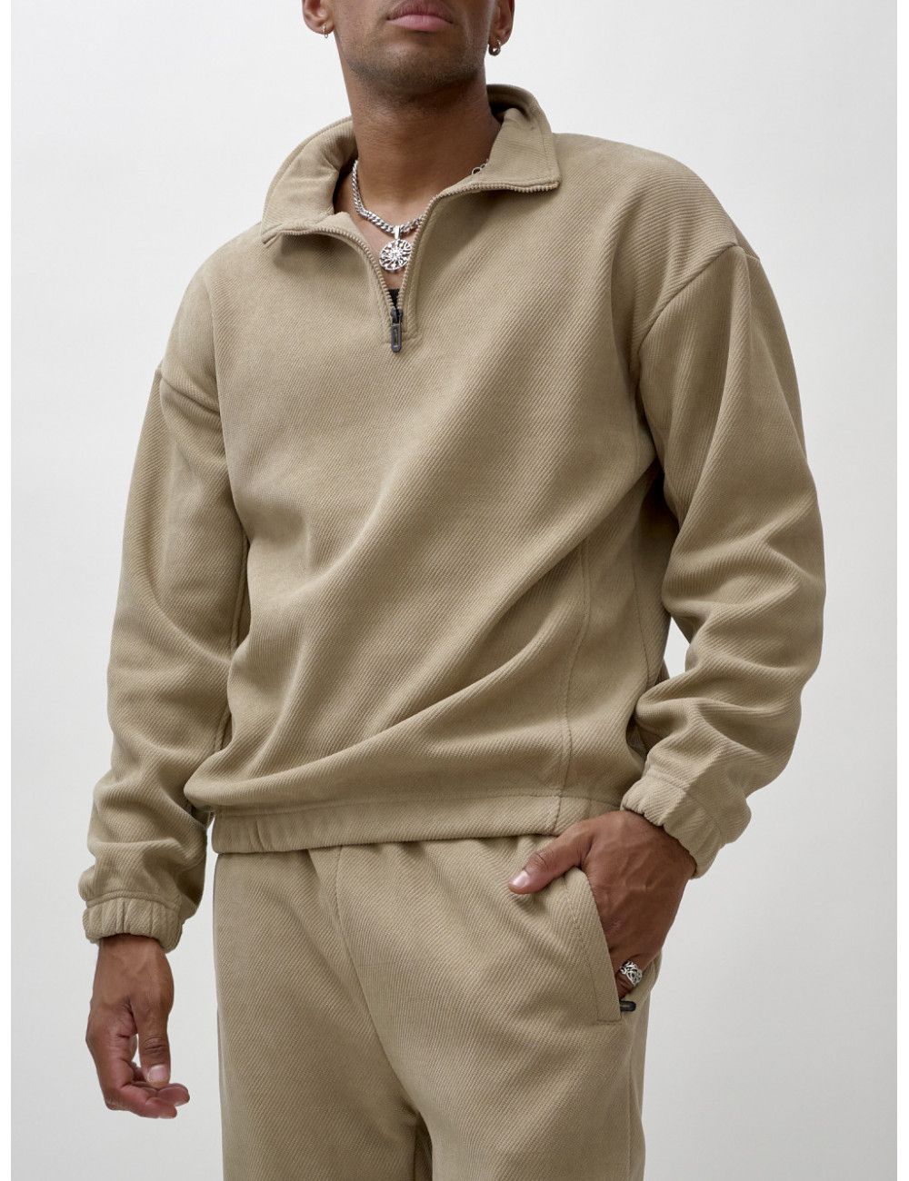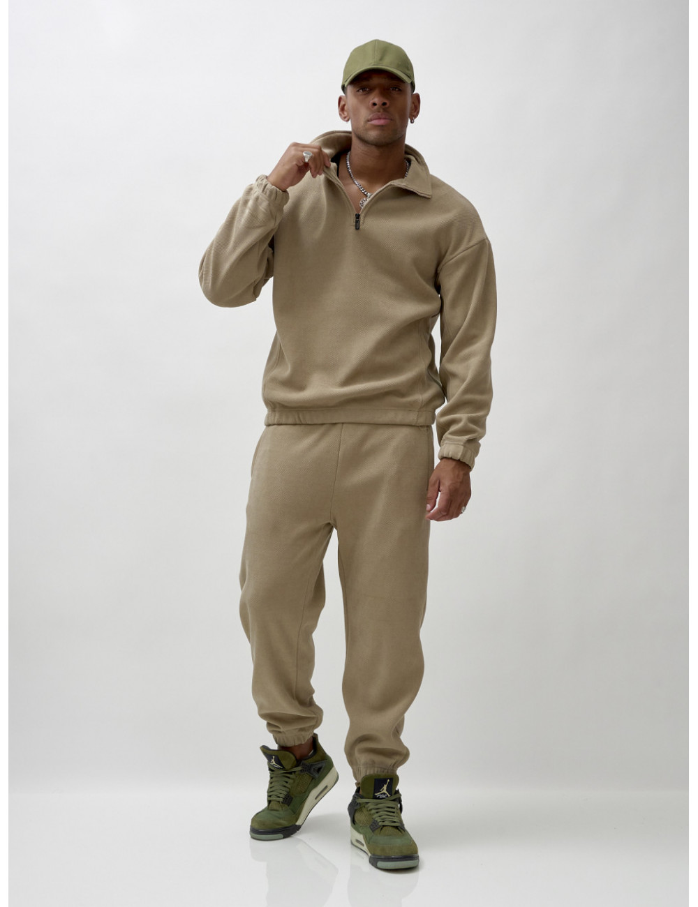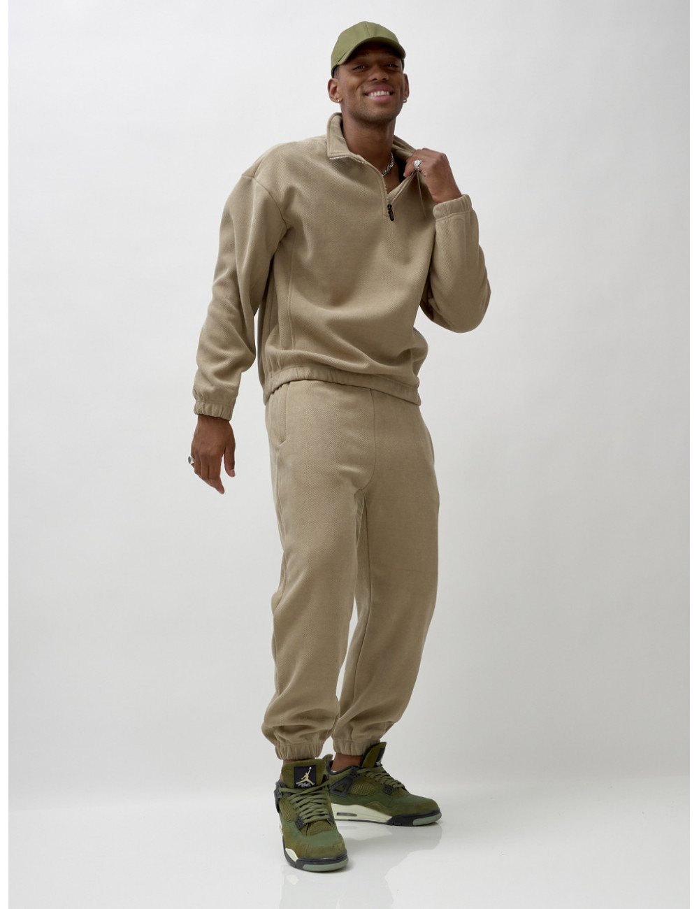 Доставка Мужской демисезонный спортивный костюм на флисе, бежевый, для спорта. по Тюмени и Тюменской области СДЭК