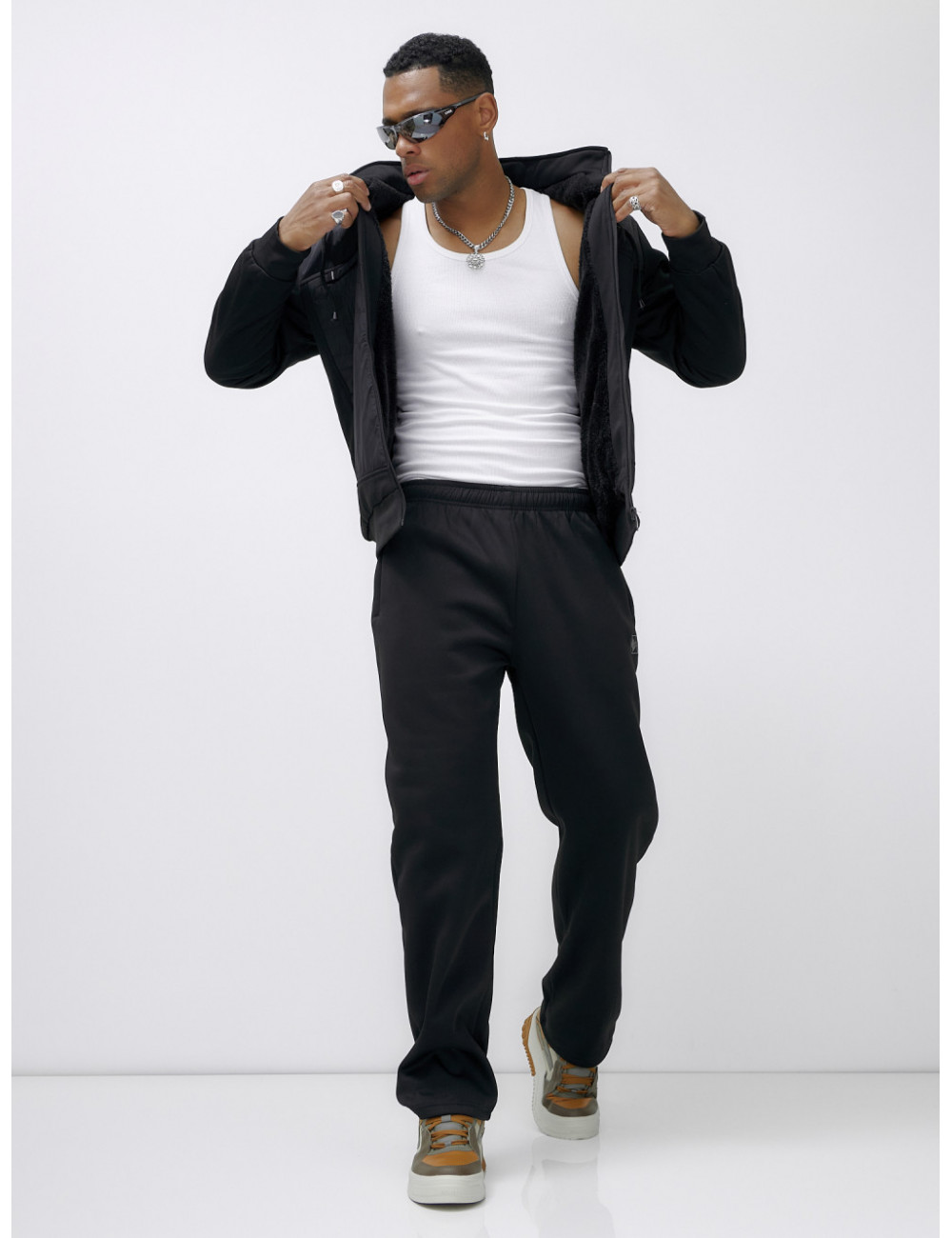Доставка Мужской зимний спортивный костюм с начёсом, чёрный, для активного отдыха по Тюмени и Тюменской области СДЭК