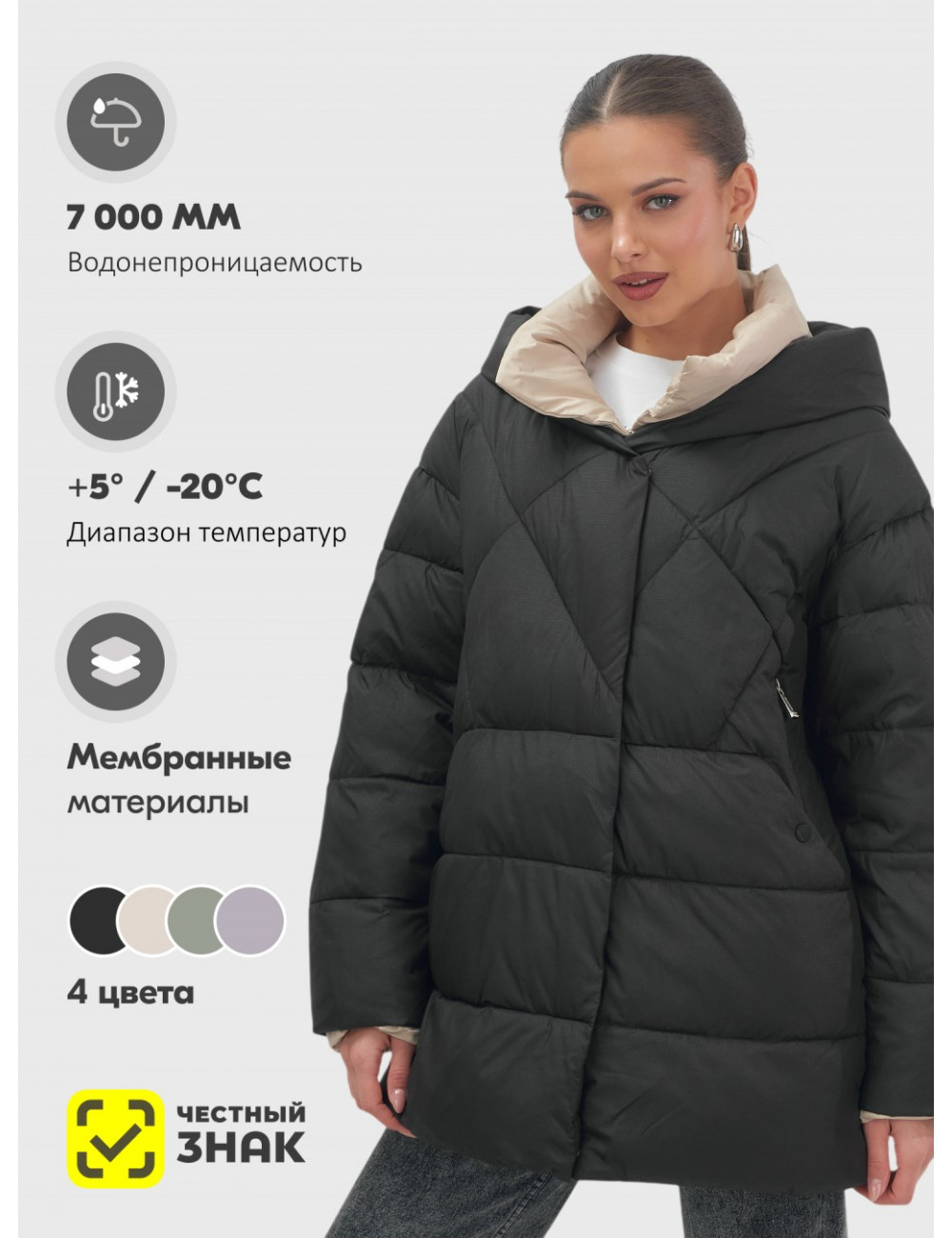 | Особенности модели | быстросохнущая, ветрозащита, водоотталкивающий материал, гипоаллергенный материал, дышащий материал, корректирующий эффект |