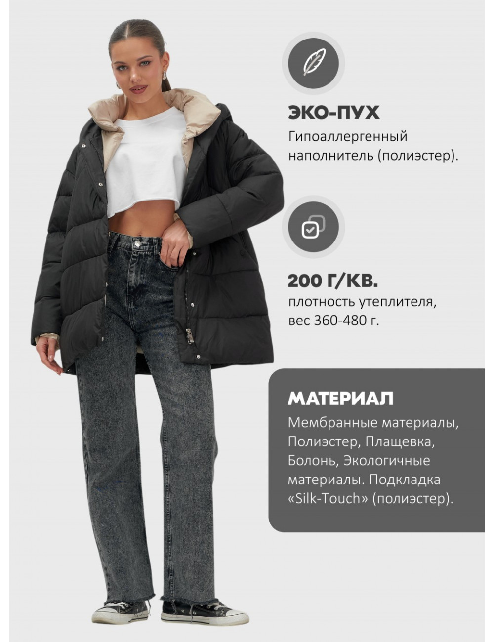 | Декоративные элементы | Воротник, Капюшон, Карманы, Молния |