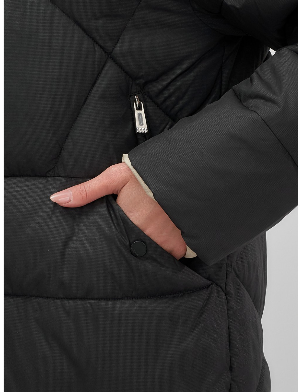 Доставка Пуховик женский зимний с капюшоном большого размера, чёрный. по Тюмени и Тюменской области СДЭК