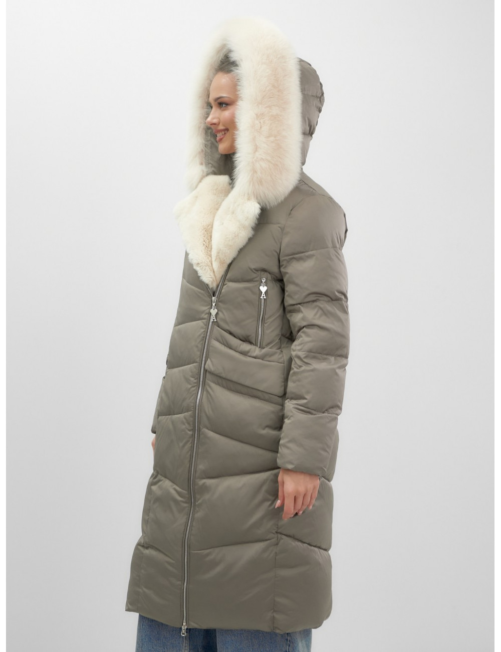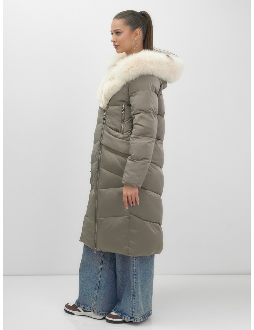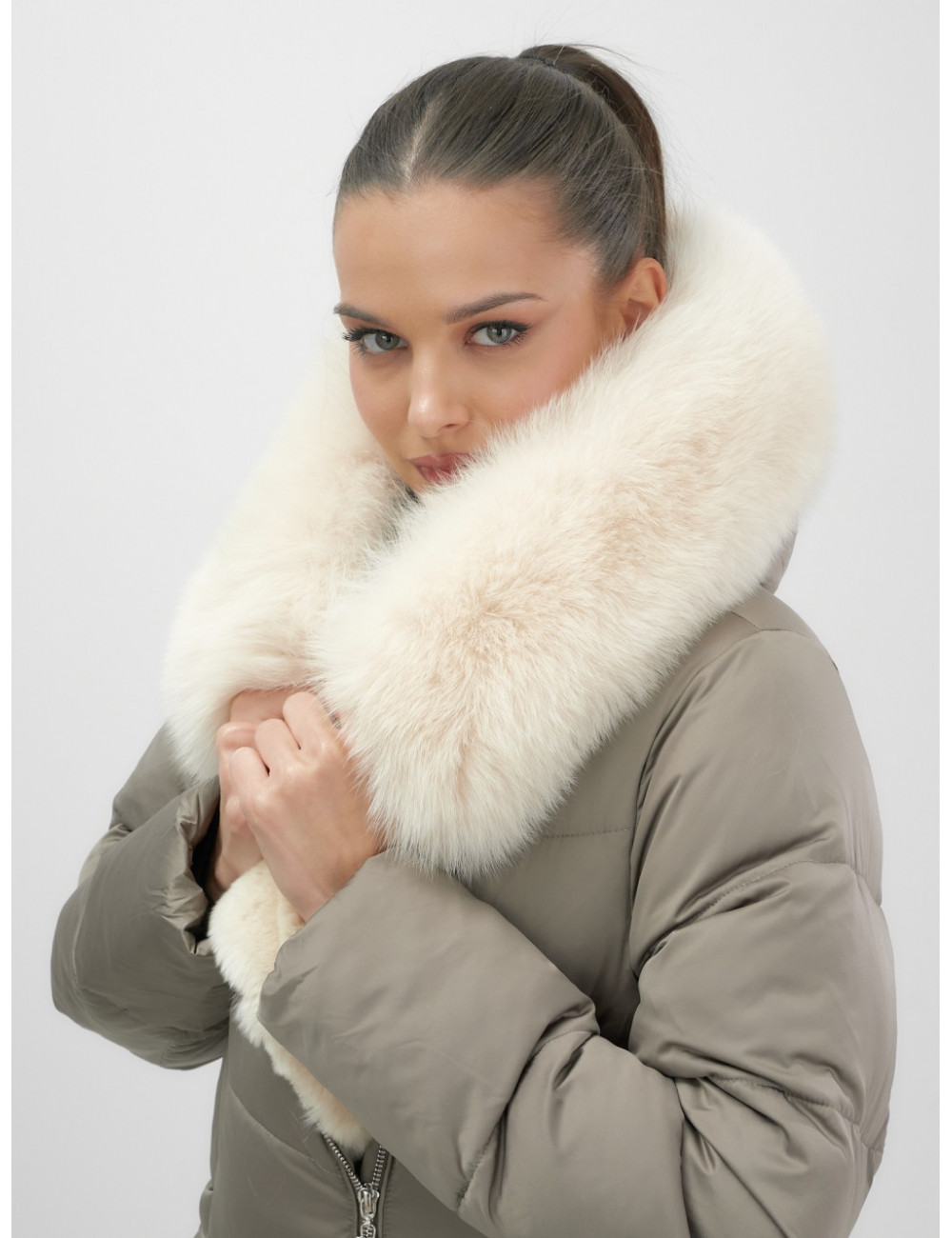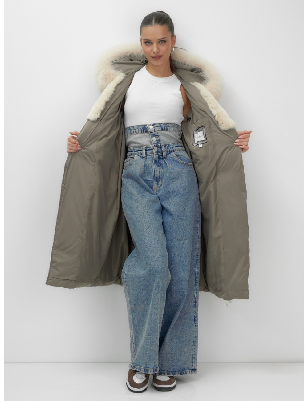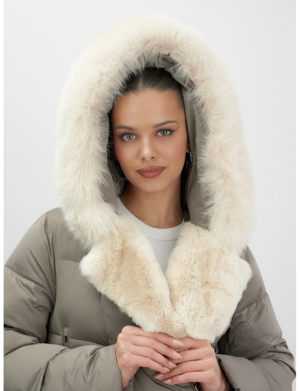 - Изысканный английский воротник из натурального меха кролика и роскошная съёмная опушка из песца создают неповторимый силуэт.