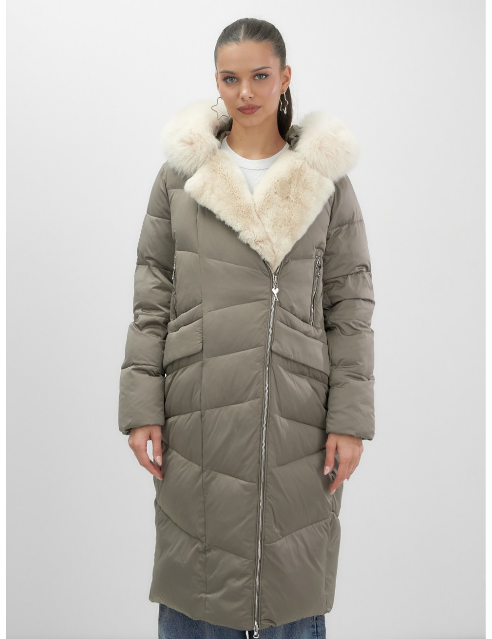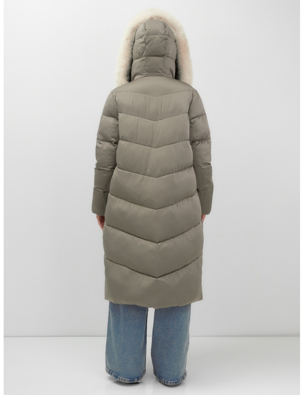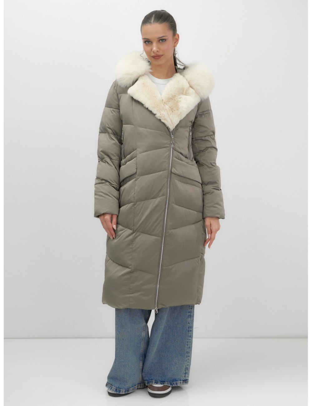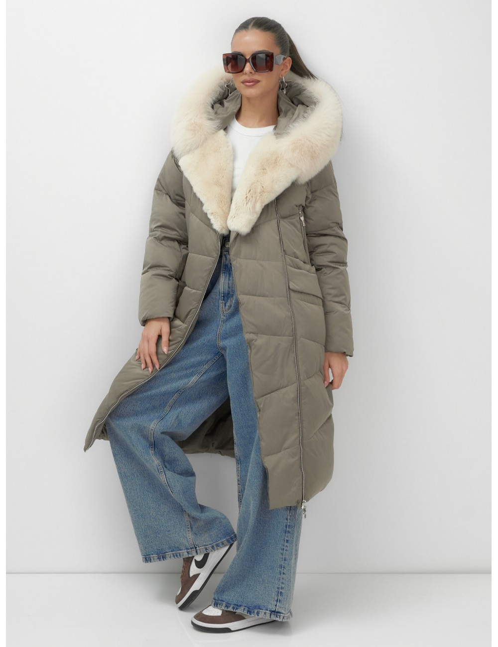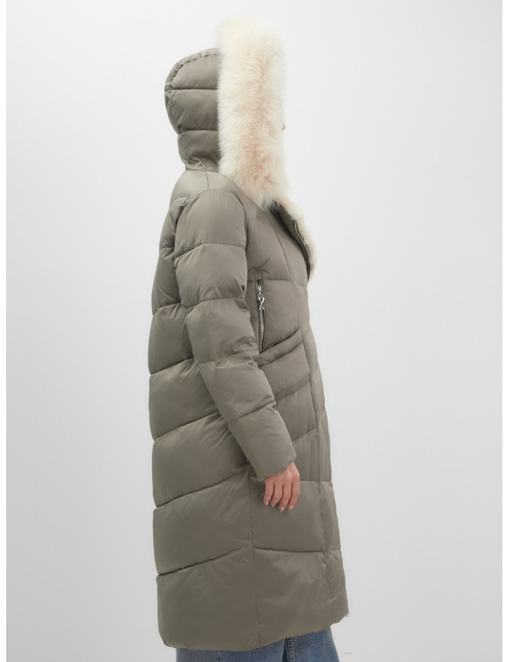 - Изысканный английский воротник из натурального меха кролика и роскошная съёмная опушка из песца создают неповторимый силуэт.