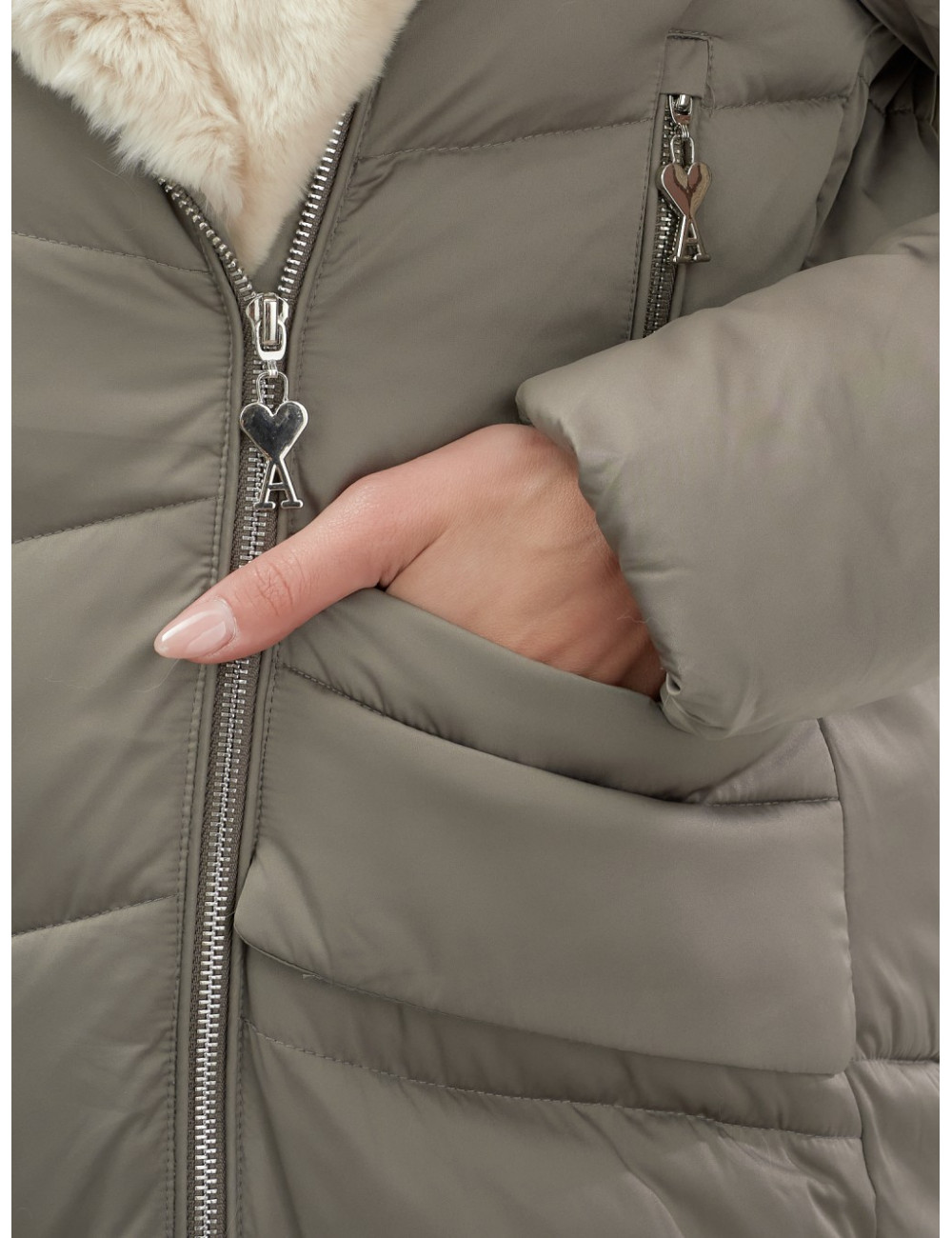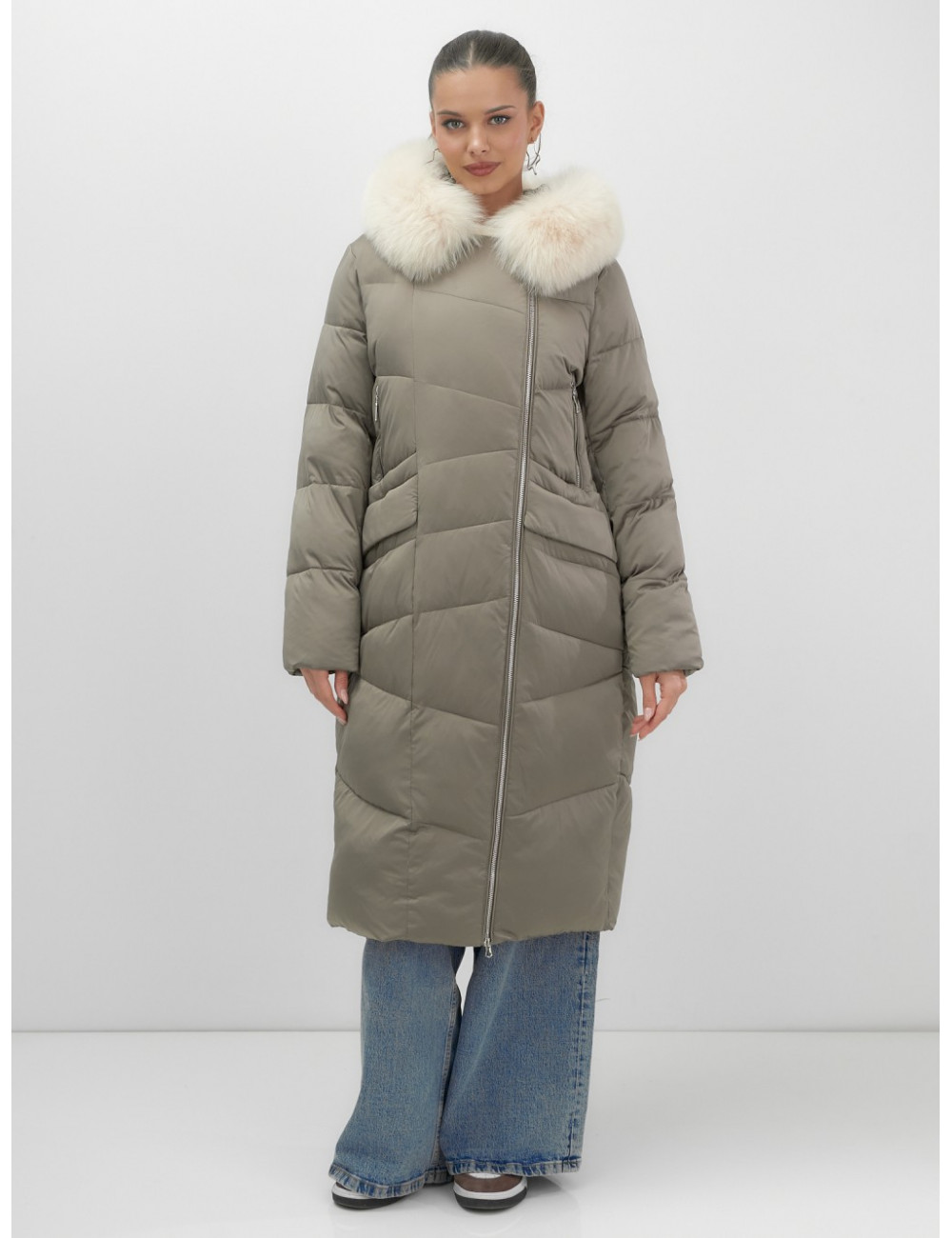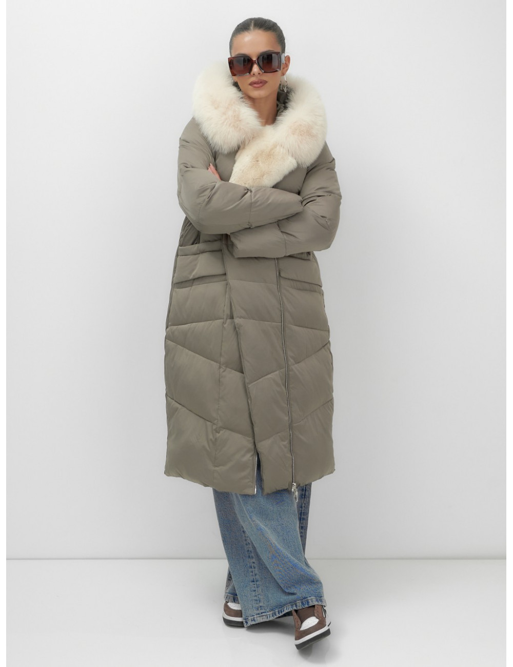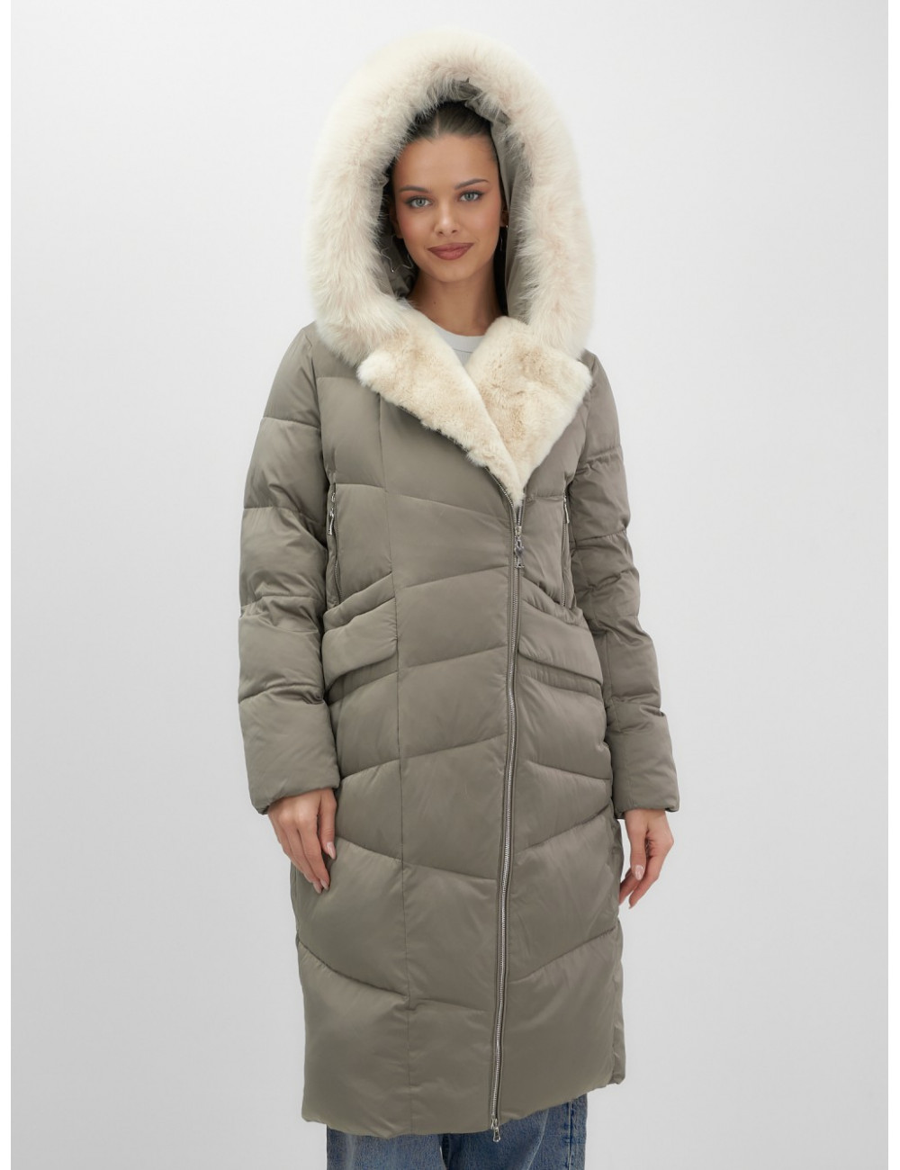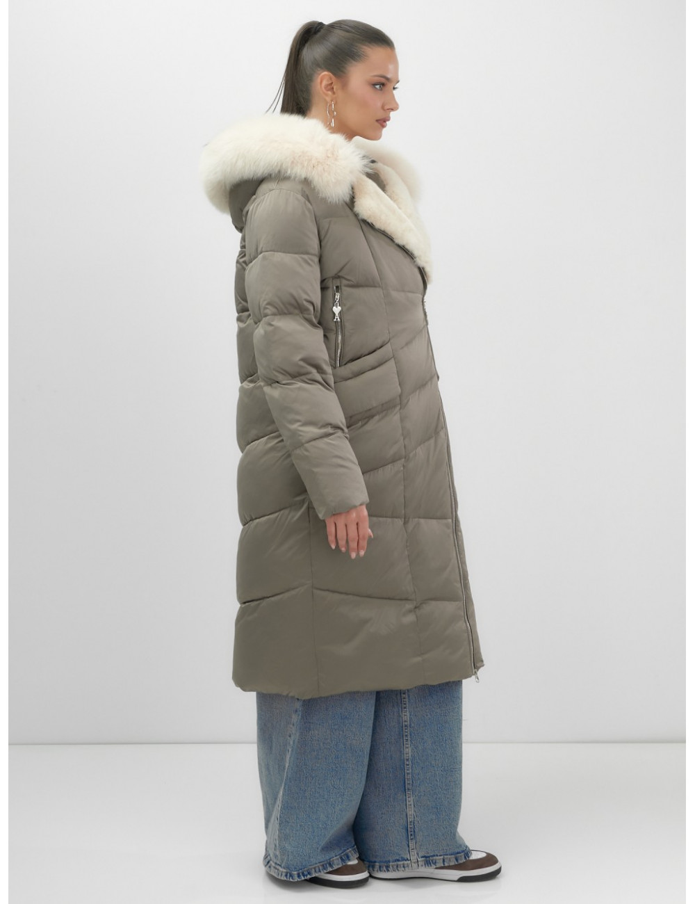 - Изысканный английский воротник из натурального меха кролика и роскошная съёмная опушка из песца создают неповторимый силуэт.