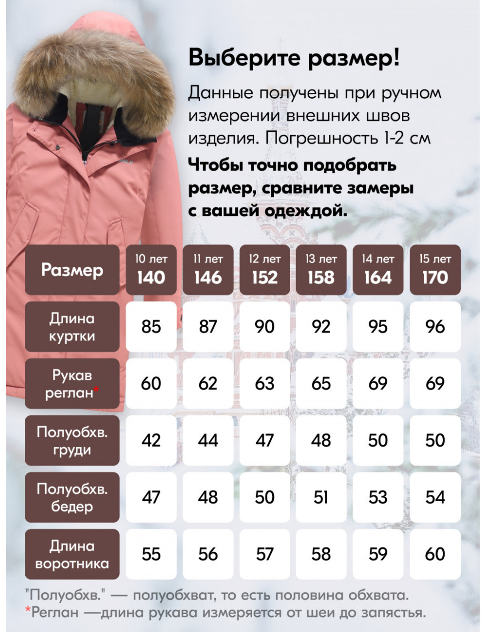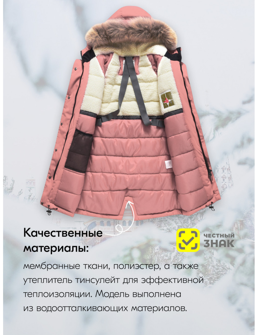 | Декоративные элементы | Мех, Пояс/ремень, Светоотражающие элементы, Съемная опушка |