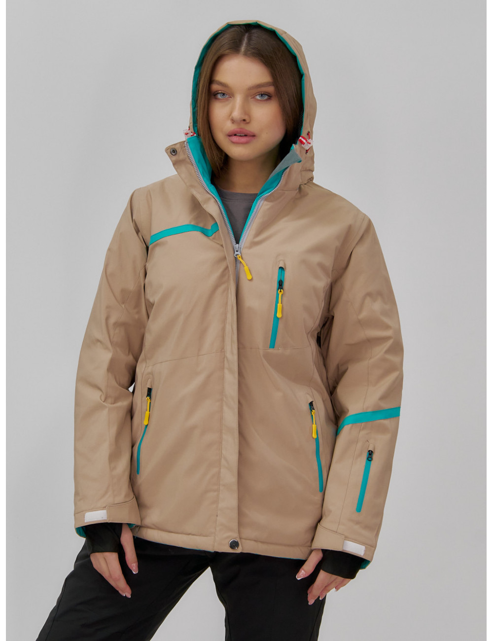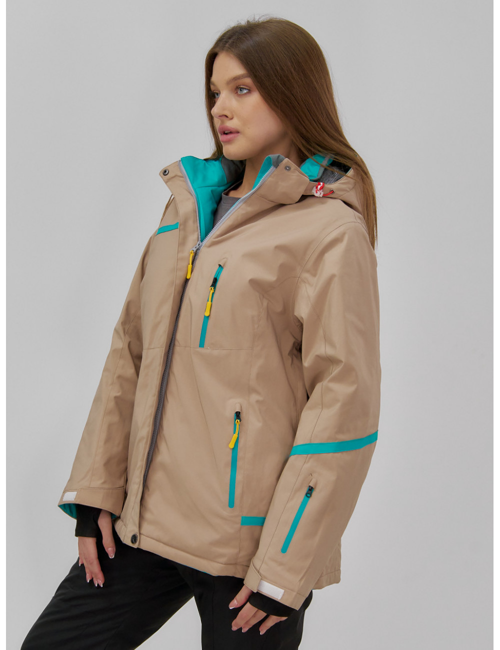 Эта куртка станет вашим идеальным спутником в любых зимних приключениях: на горнолыжных склонах, во время прогулок по заснеженному лесу или при катании на снегоходе. Она отлично сочетается с брюками для зимних видов спорта и термобельём, обеспечивая максимальный комфорт и защиту от холода. Доставка по Москве и Московской области Женская горнолыжная куртка большого размера бежевого оттенка, зимняя.