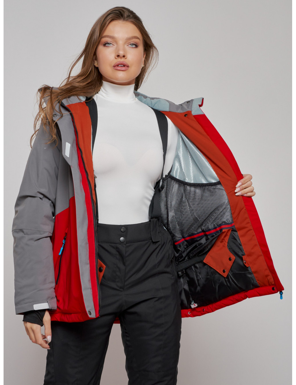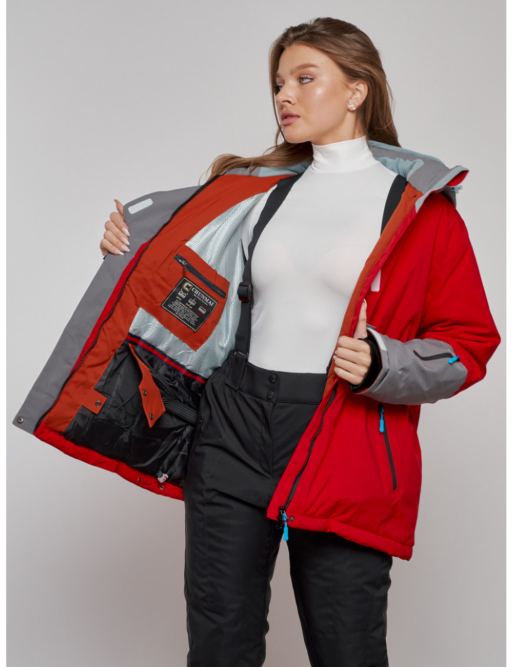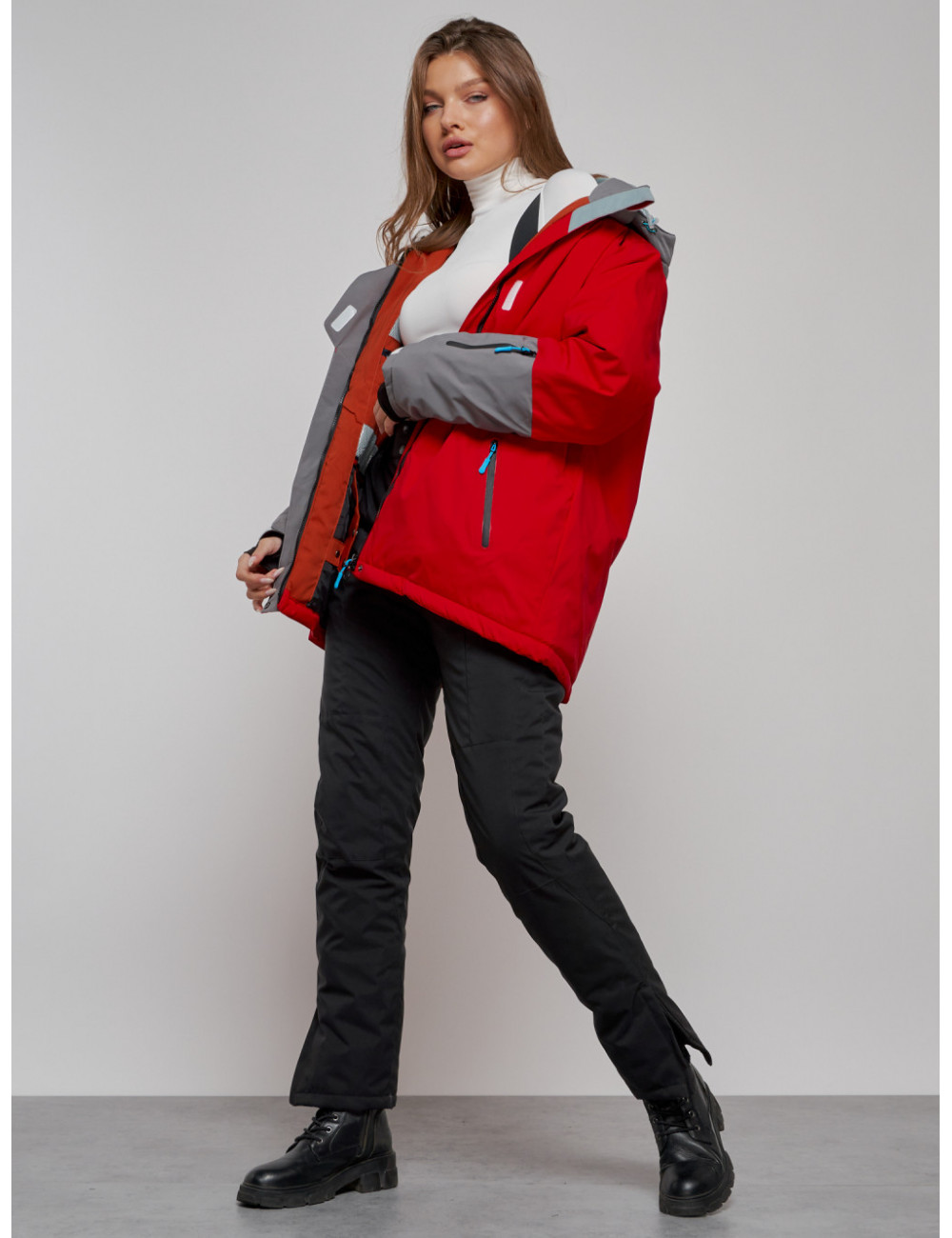 Наслаждайтесь зимними приключениями с комфортом и уверенностью! Доставка по Москве и Московской области Женская горнолыжная куртка большого размера, красная.