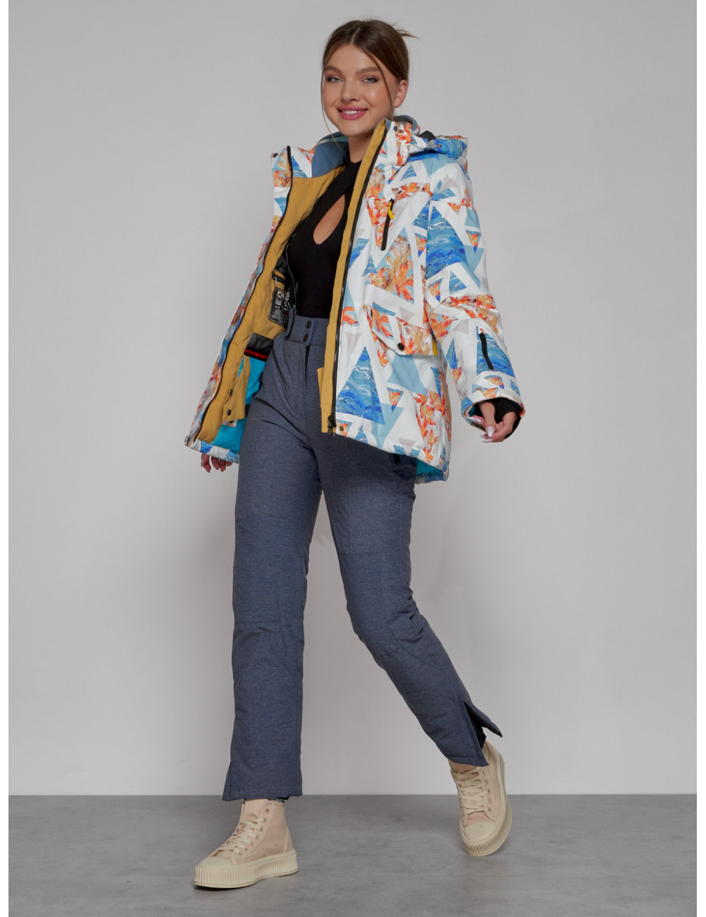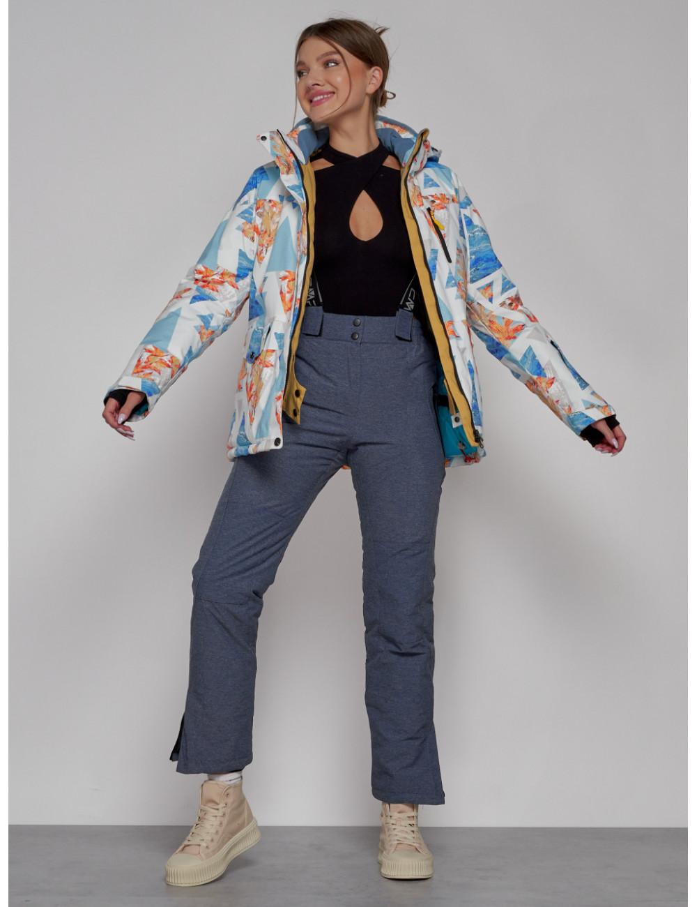 Вид застежкиДвойная молния/Кнопки/Клапан | Вид одеждыГорнолыжная/Свободная/Утепленная модель | Вид принтаЦветочный |