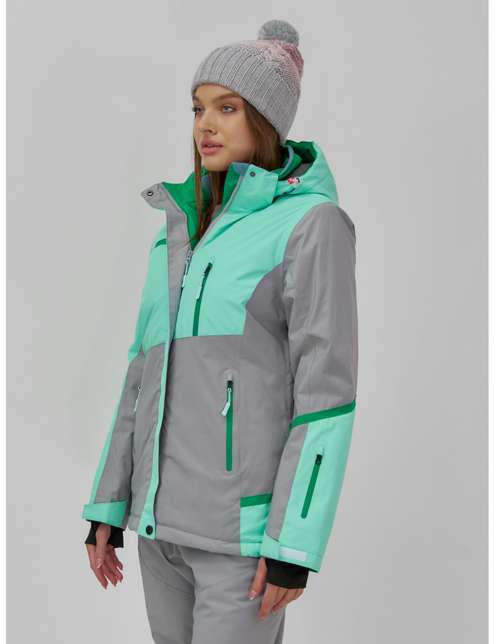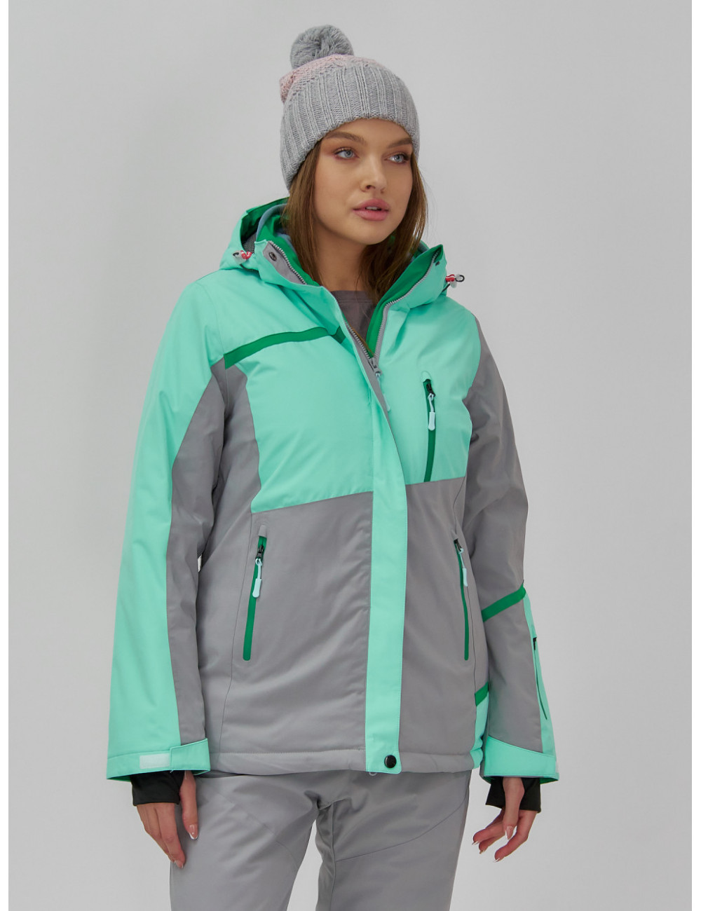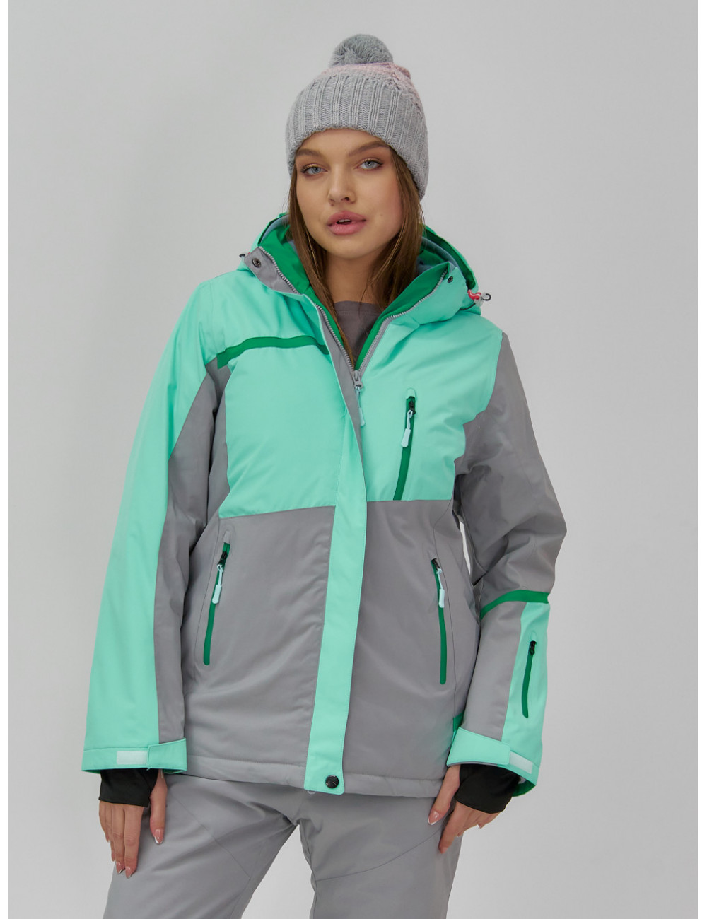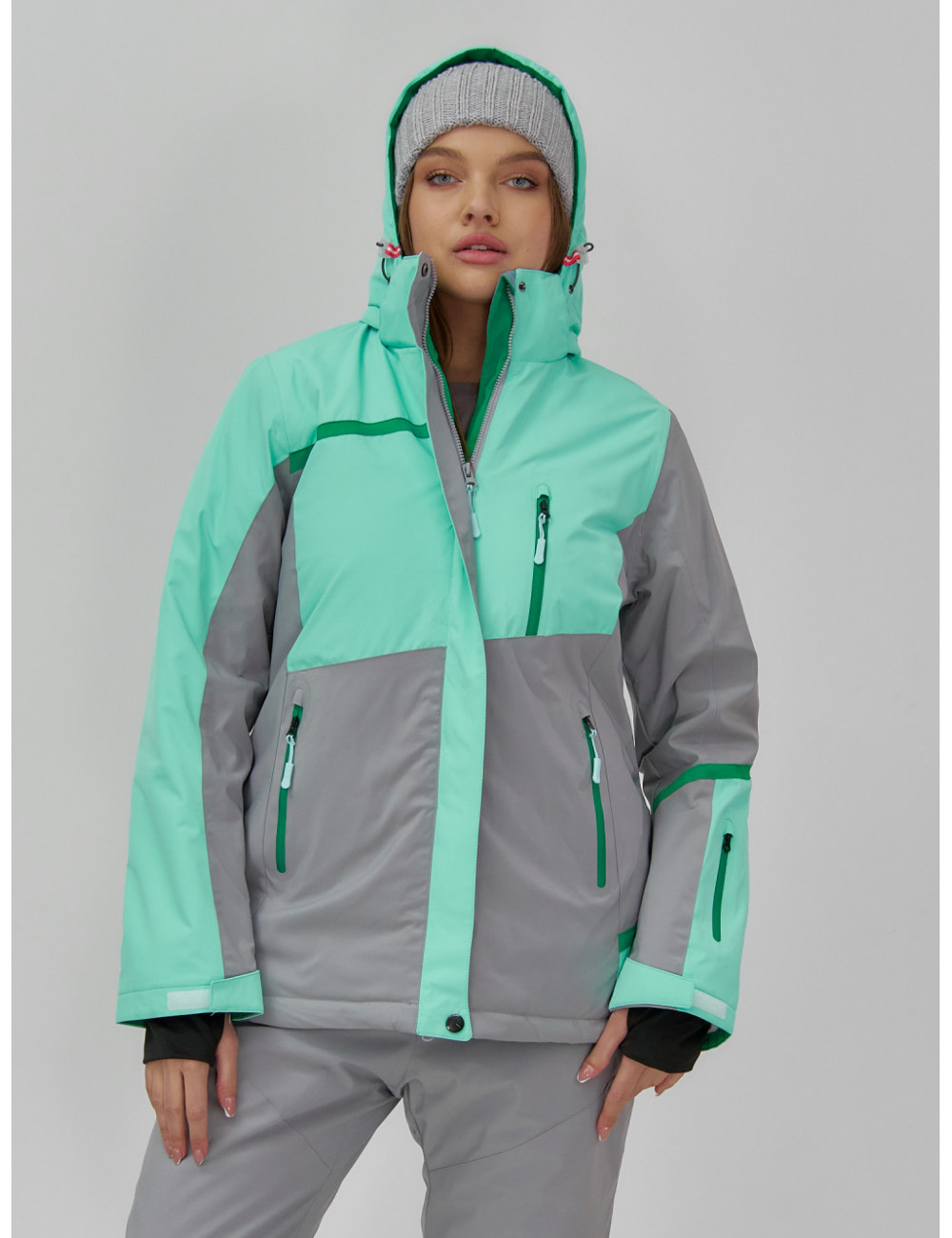 Дарим бесплатную доставку на заказы от 5000 рублей. Женская горнолыжная куртка с ярким принтом Доставка Горнолыжная женская куртка для зимы бирюзового цвета по Тюмени и Тюменской области СДЭК