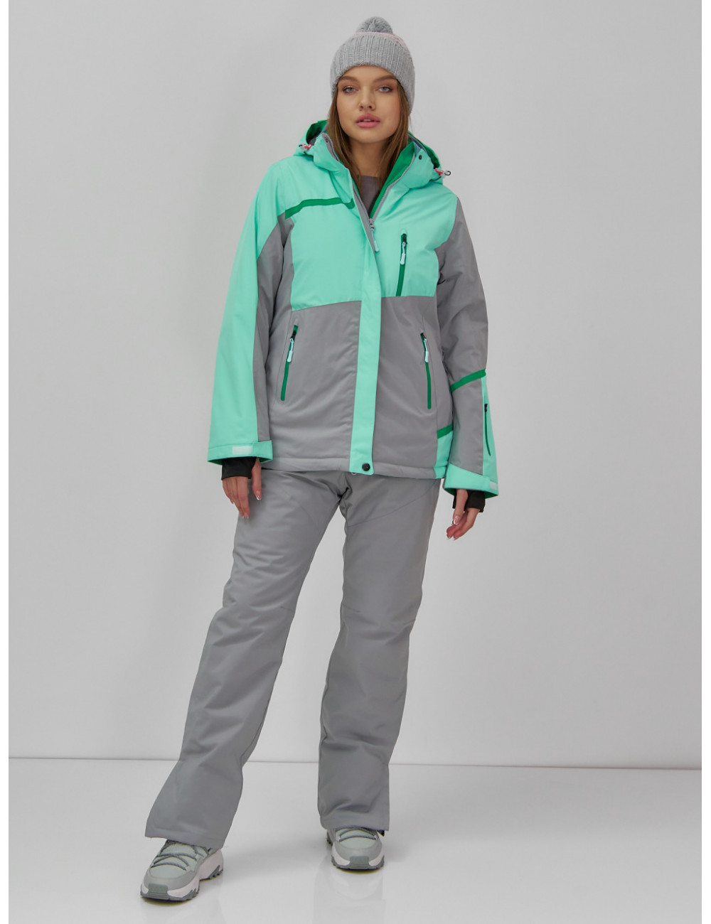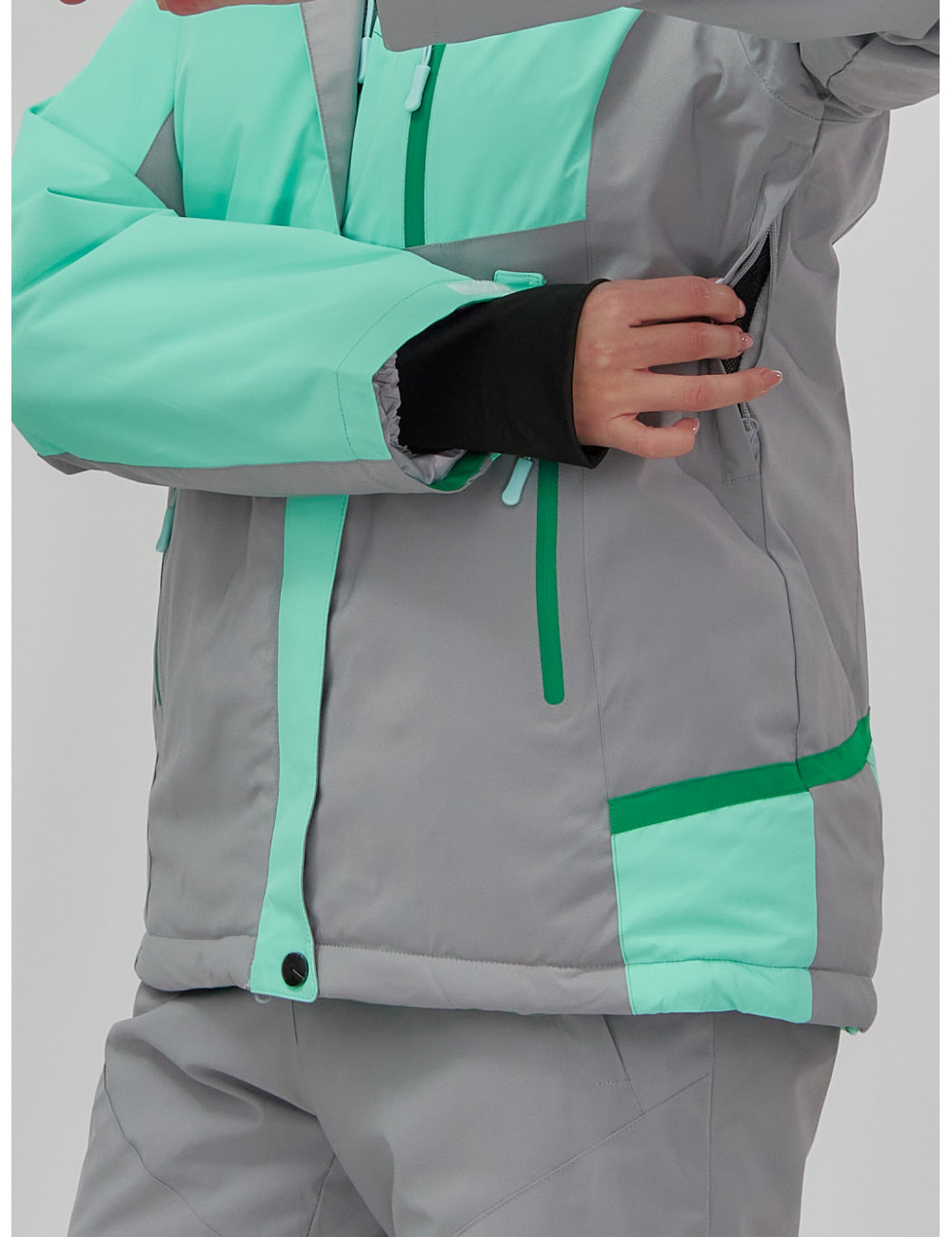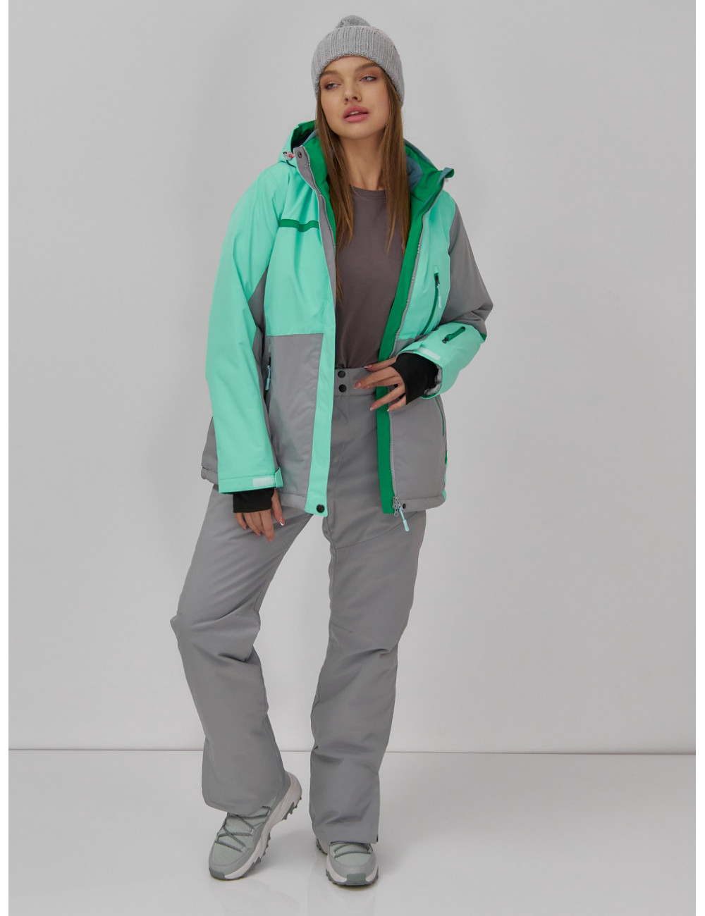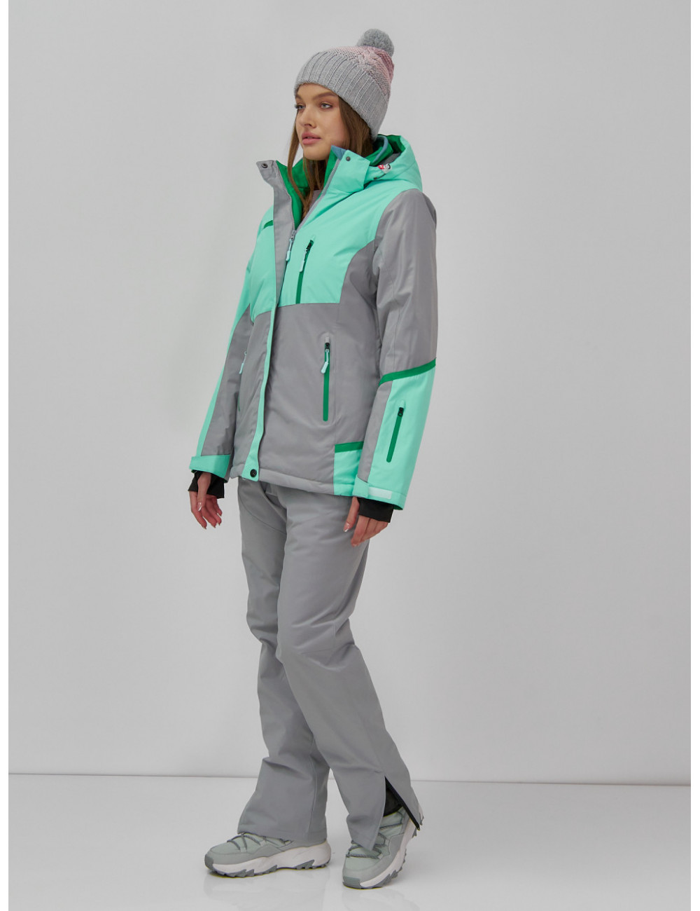 Дарим бесплатную доставку на заказы от 5000 рублей. Женская горнолыжная куртка с ярким принтом Доставка Горнолыжная женская куртка для зимы бирюзового цвета по Тюмени и Тюменской области СДЭК