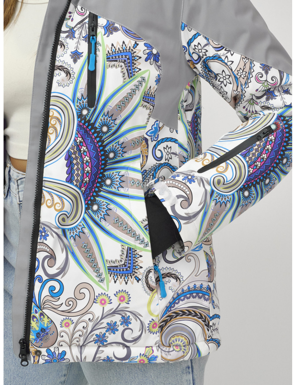 Выбирая куртку от Ketsi, вы получаете не только качественную одежду, но и уверенность в каждом движении. Присоединяйтесь к тем, кто уже оценил преимущества нашей продукции. Доставка Женская горнолыжная куртка, принт на светло-серыом, зима. по Тюмени и Тюменской области СДЭК