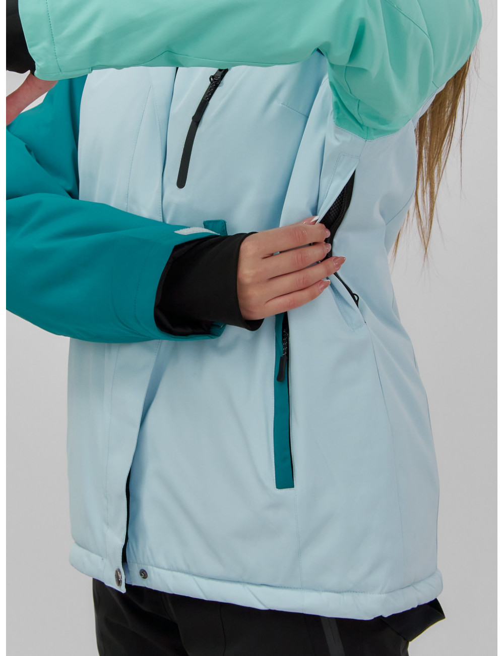 В куртке предусмотрены боковые карманы на молнии и внутренний карман для очков и ски-пасса.